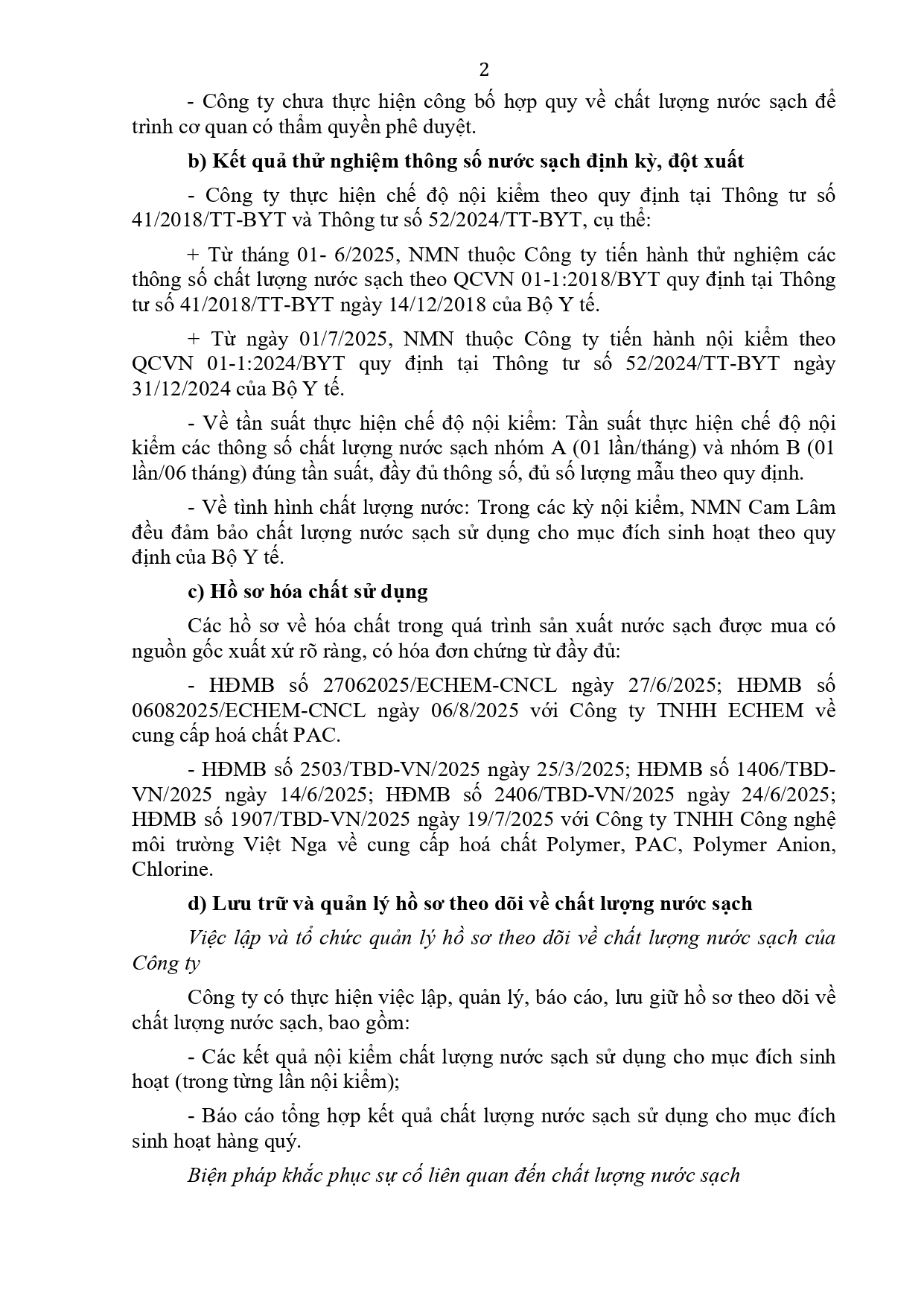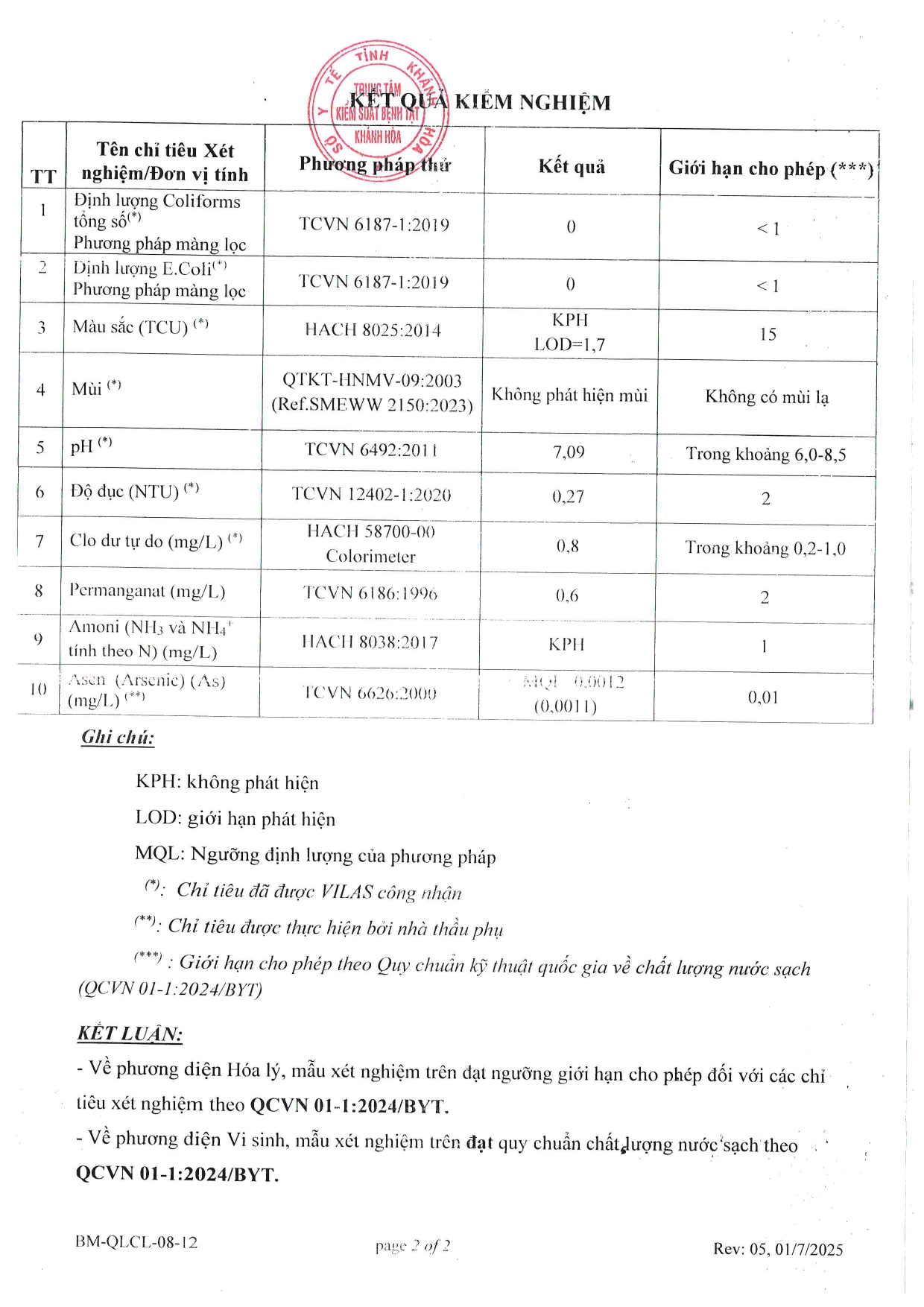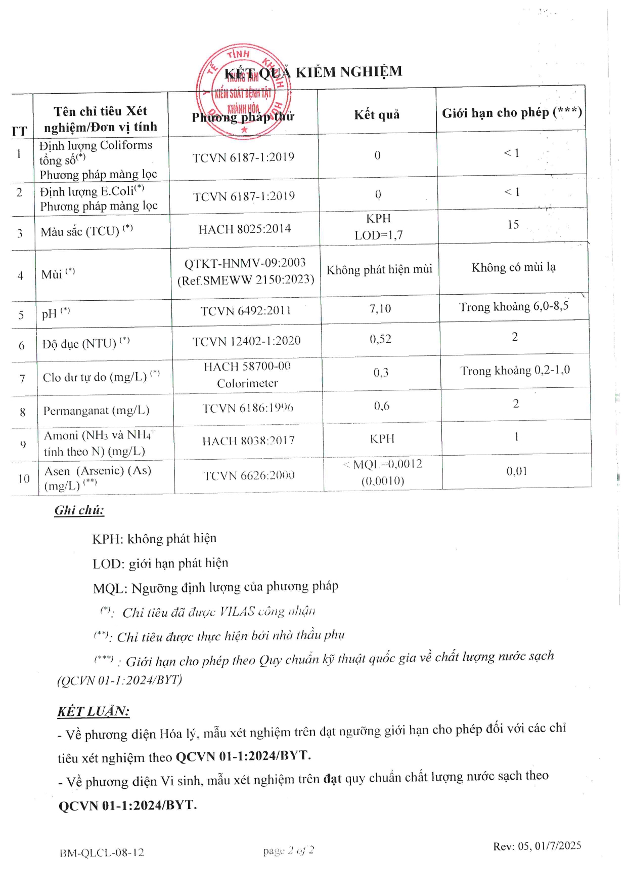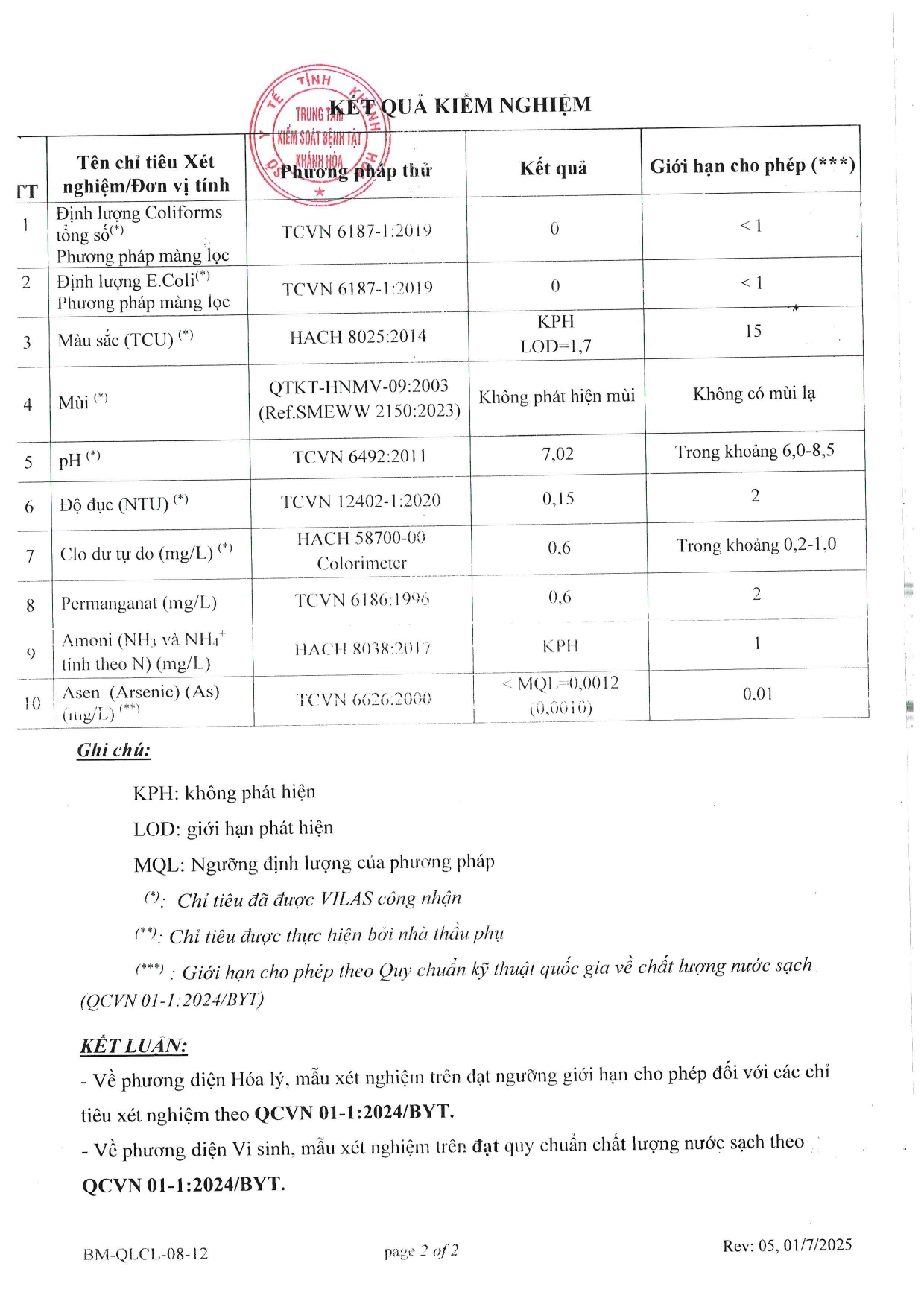 V/v trả lời kết quả kiểm tra, giám sát ngoại kiểm chất lượng nước sạch sử dụng cho mục đích sinh hoạt năm 2025