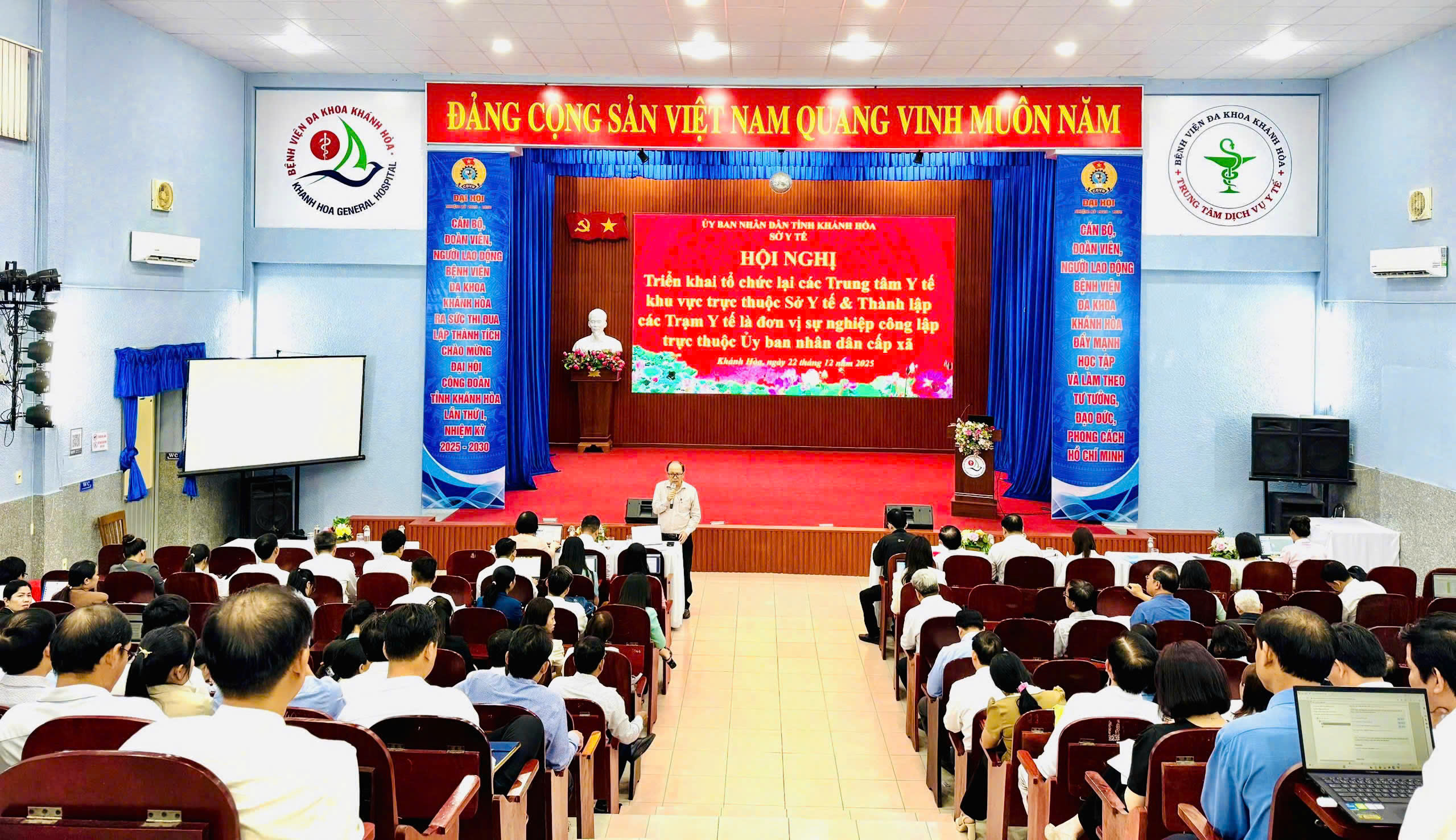 Ngày 22/12/2025, Sở Y tế tỉnh Khánh Hòa tổ chức cuộc họp triển khai Đề án tổ chức lại Trung tâm Y tế khu vực thành Bệnh viện Đa khoa khu vực trực thuộc Sở Y tế và Trạm Y tế cấp xã trực thuộc UBND cấp xã quản lý trên địa bàn tỉnh. Cuộc họp do BSCKII. Lê Văn Khoa – Giám đốc Sở Y tế chủ trì, với sự tham dự của đại diện các sở, ngành liên quan và lãnh đạo các đơn vị y tế cơ sở.