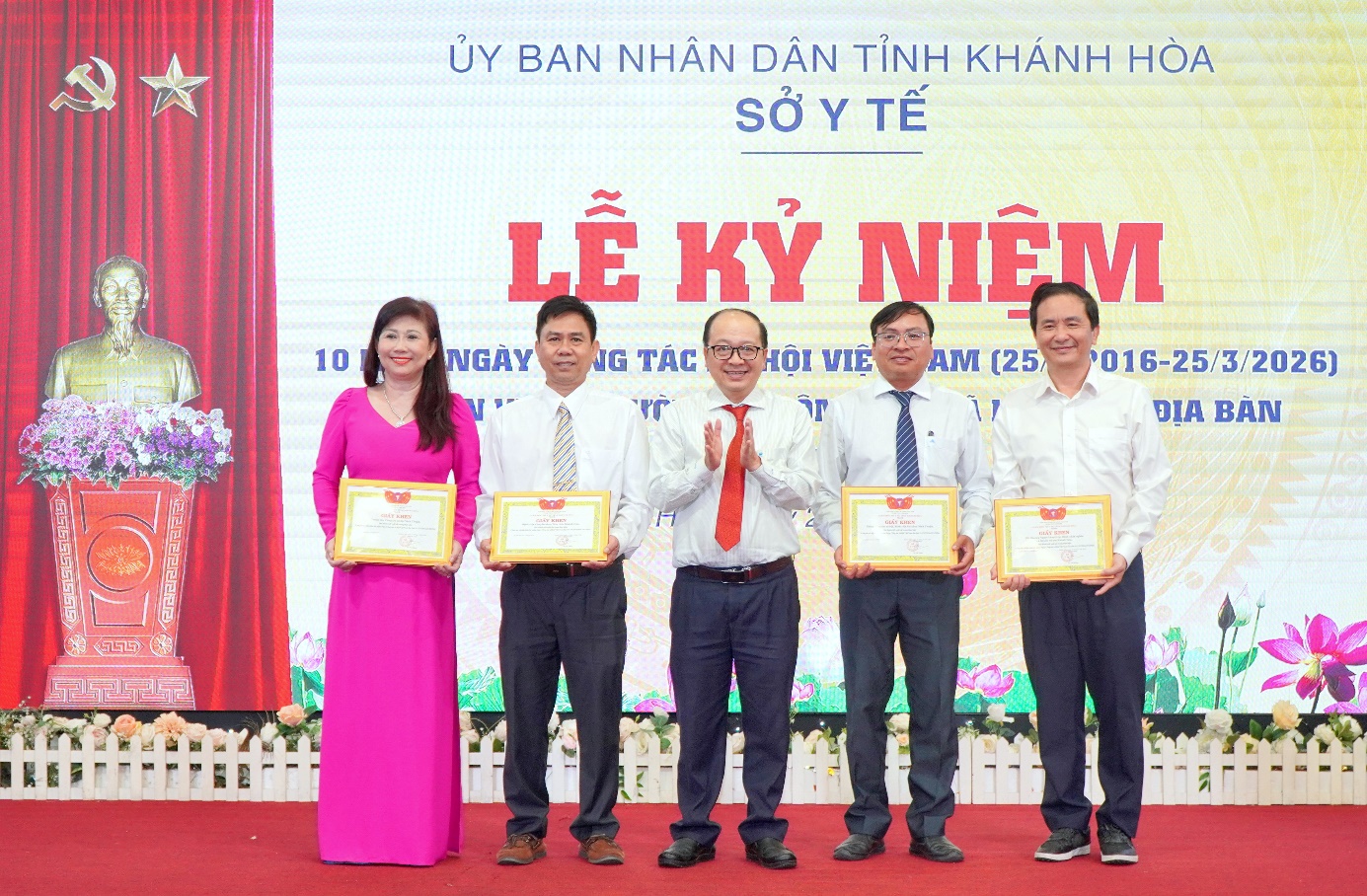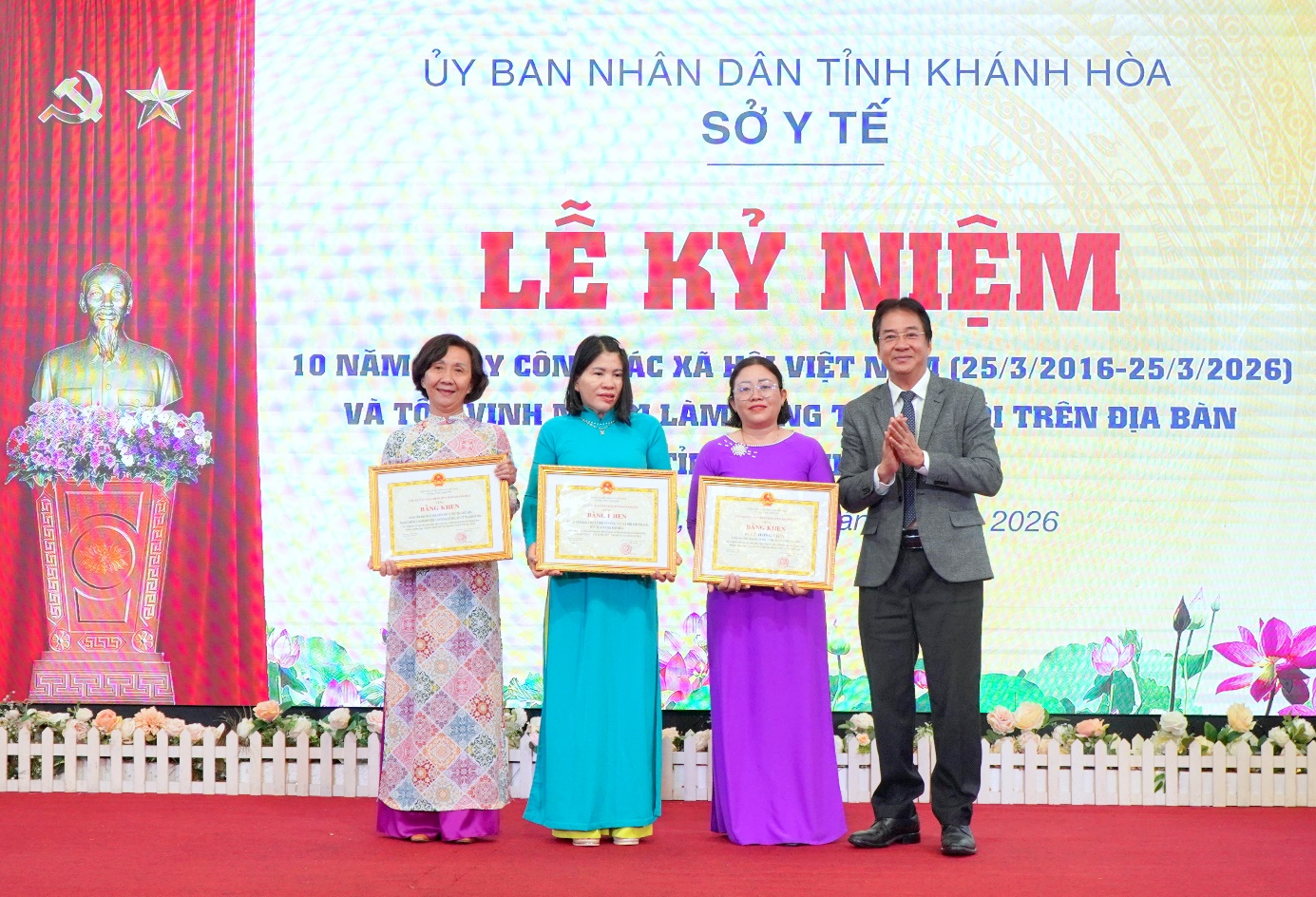 Sáng ngày 24/3/2026, Sở Y tế tỉnh Khánh Hòa tổ chức Lễ kỷ niệm 10 năm Ngày Công tác xã hội Việt Nam (25/3/2016-25/3/2026) và tôn vinh người làm công tác xã hội (CTXH) trên địa bàn tỉnh. Tham dự buổi lễ có đồng chí: Nguyễn Long Biên - Ủy viên Ban Thường vụ Tỉnh ủy, Phó Chủ tịch Thường trực UBND tỉnh; lãnh đạo các sở, ban, ngành, cơ sở trợ giúp xã hội và những người làm công tác xã hội trên địa bàn tỉnh.