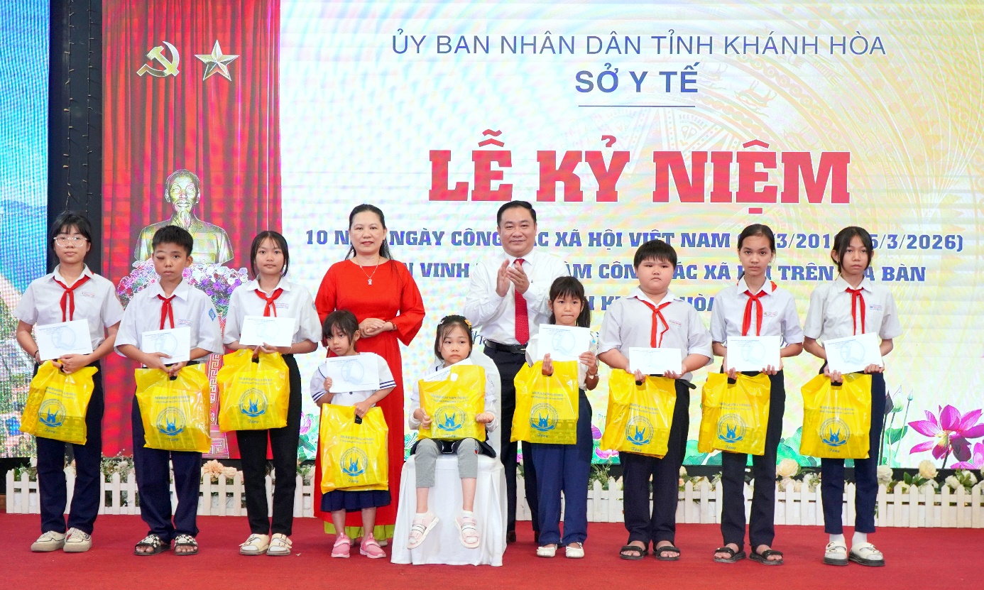Nhân dịp này, Chủ tịch UBND tỉnh tặng Bằng khen cho 02 tập thể và 01 cá nhân có thành tích xuất sắc trong thực hiện công tác xã hội. Sở Y tế tỉnh Khánh Hòa cũng tặng giấy khen cho 04 tập thể tiêu biểu. Đồng thời, 20 học sinh vượt khó học tập tốt trên địa bàn tỉnh được nhận hỗ trợ, mỗi suất trị giá 1 triệu đồng và 1 phần quà tặng từ Quỹ Bảo trợ trẻ em tỉnh.
