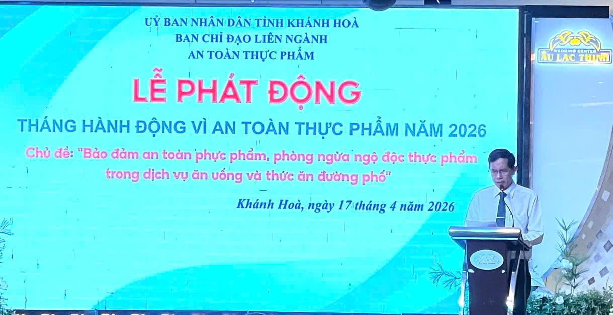 Sáng ngày 17/4, Sở Y tế tỉnh Khánh Hòa tổ chức lễ phát động Tháng hành động vì an toàn thực phẩm (ATTP) năm 2026 với chủ đề: “Chung tay bảo đảm an toàn thực phẩm trong dịch vụ ăn uống, thức ăn đường phố, chợ đêm và khu ẩm thực tập trung”, nhằm nâng cao nhận thức, trách nhiệm và sự tham gia của toàn xã hội trong công tác bảo đảm an toàn thực phẩm.