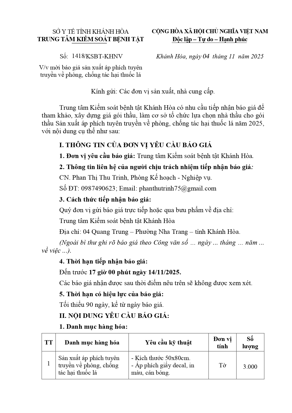 Mời chào giá thuê xe vận chuyển viên chức, người lao động đi công tác các huyện, thị xã, thành phố tỉnh Khánh Hòa