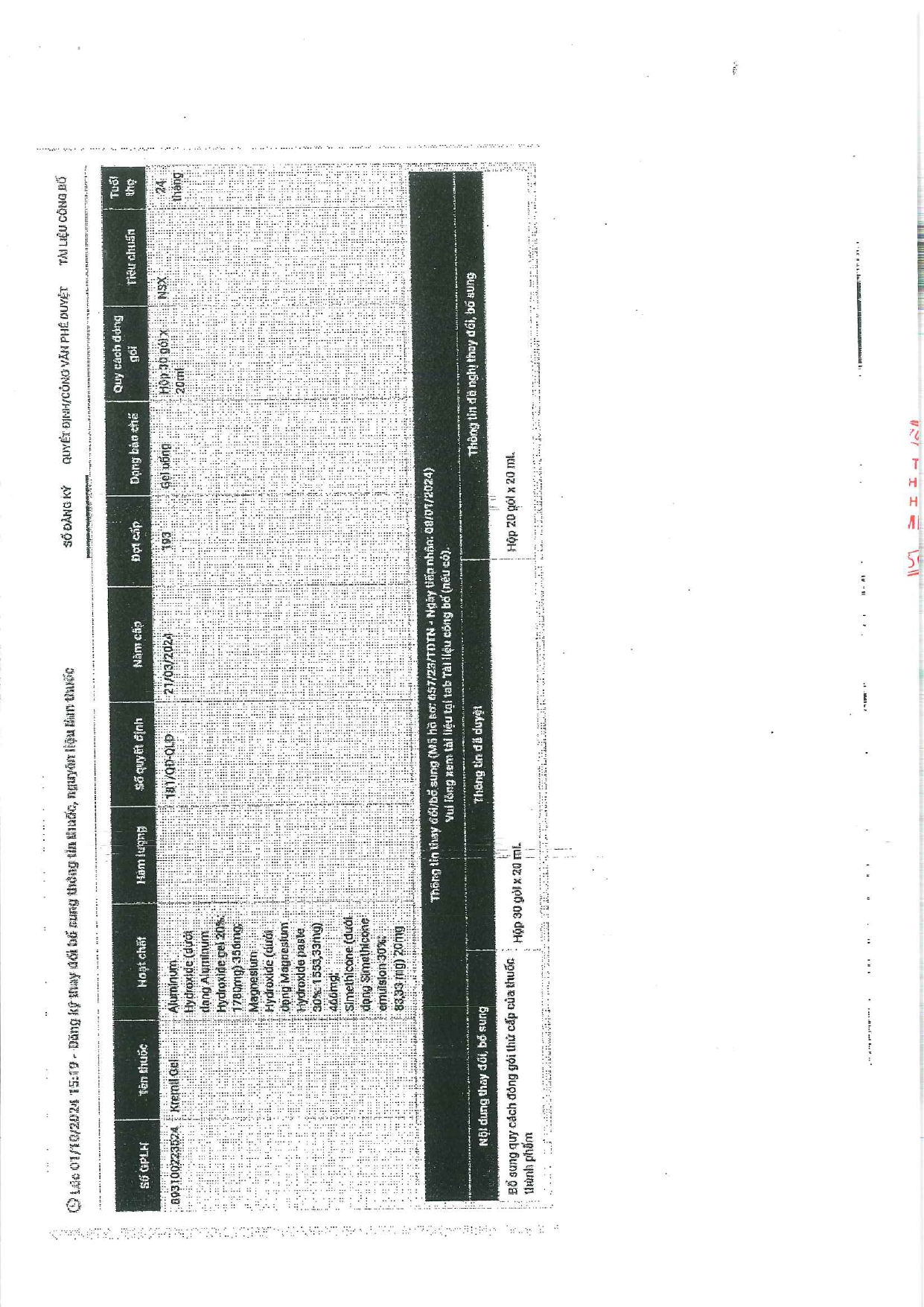 V/v cập nhật Quy cách đóng gói mặt hàng trúng thầu sản phẩm Kremil Gel.