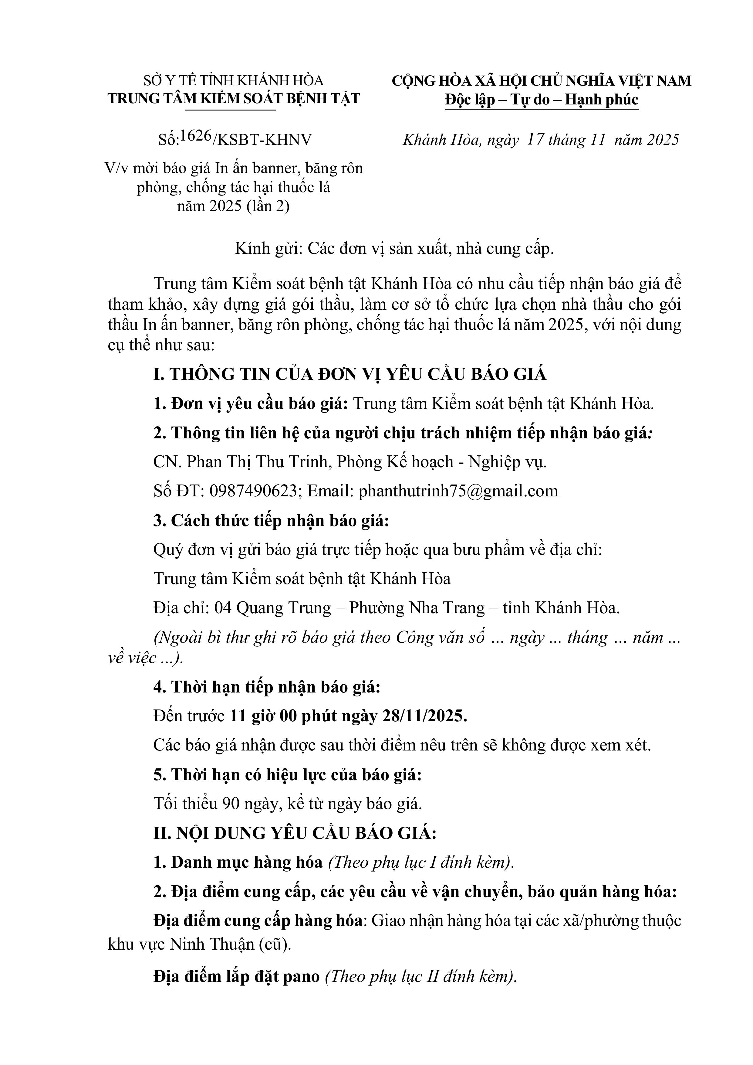 Mời chào giá thuê xe vận chuyển viên chức, người lao động đi công tác các huyện, thị xã, thành phố tỉnh Khánh Hòa