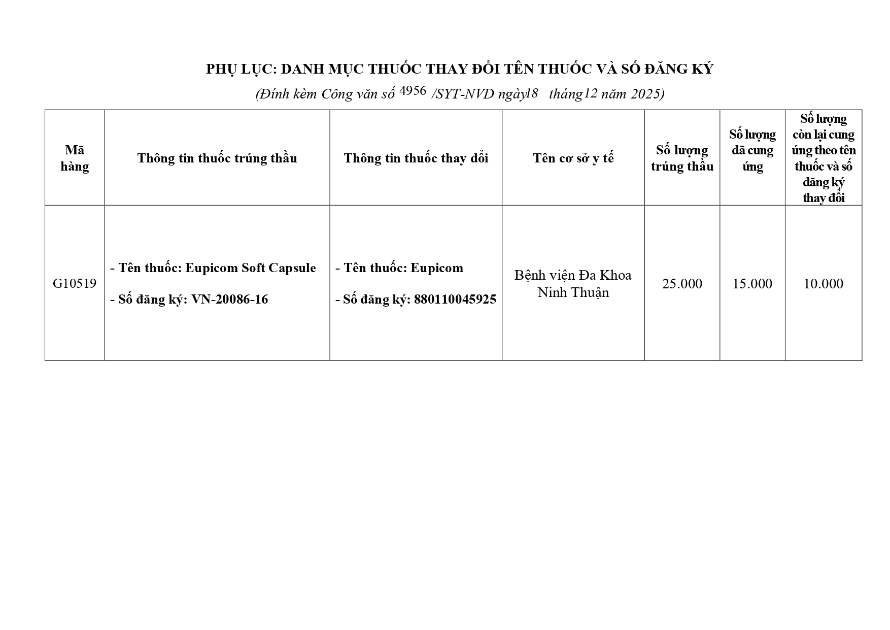 Quyết định Về việc điều chỉnh một số nội dung của Quyết định số 754/QĐ-SYT ngày 15/10/2025 của Sở Y tế về việc phê duyệt kết quả lựa chọn nhà thầu qua mạng gói số 1: Gói thầu thuốc Generic thuộc kế hoạch lựa chọn nhà thầu cung cấp thuốc: Mua sắm tập trung thuốc cấp địa phương tỉnh Khánh Hòa năm 2025-2027