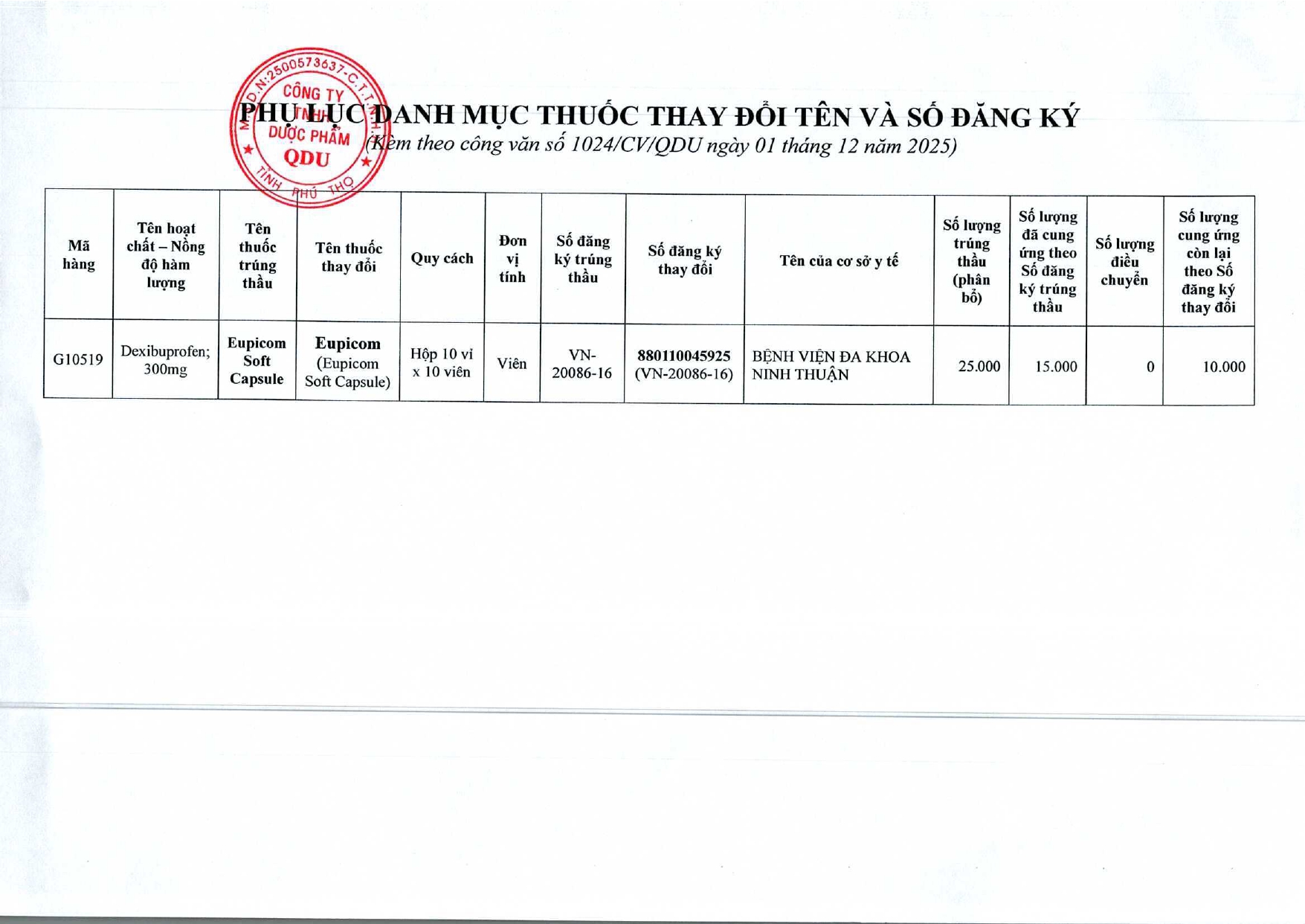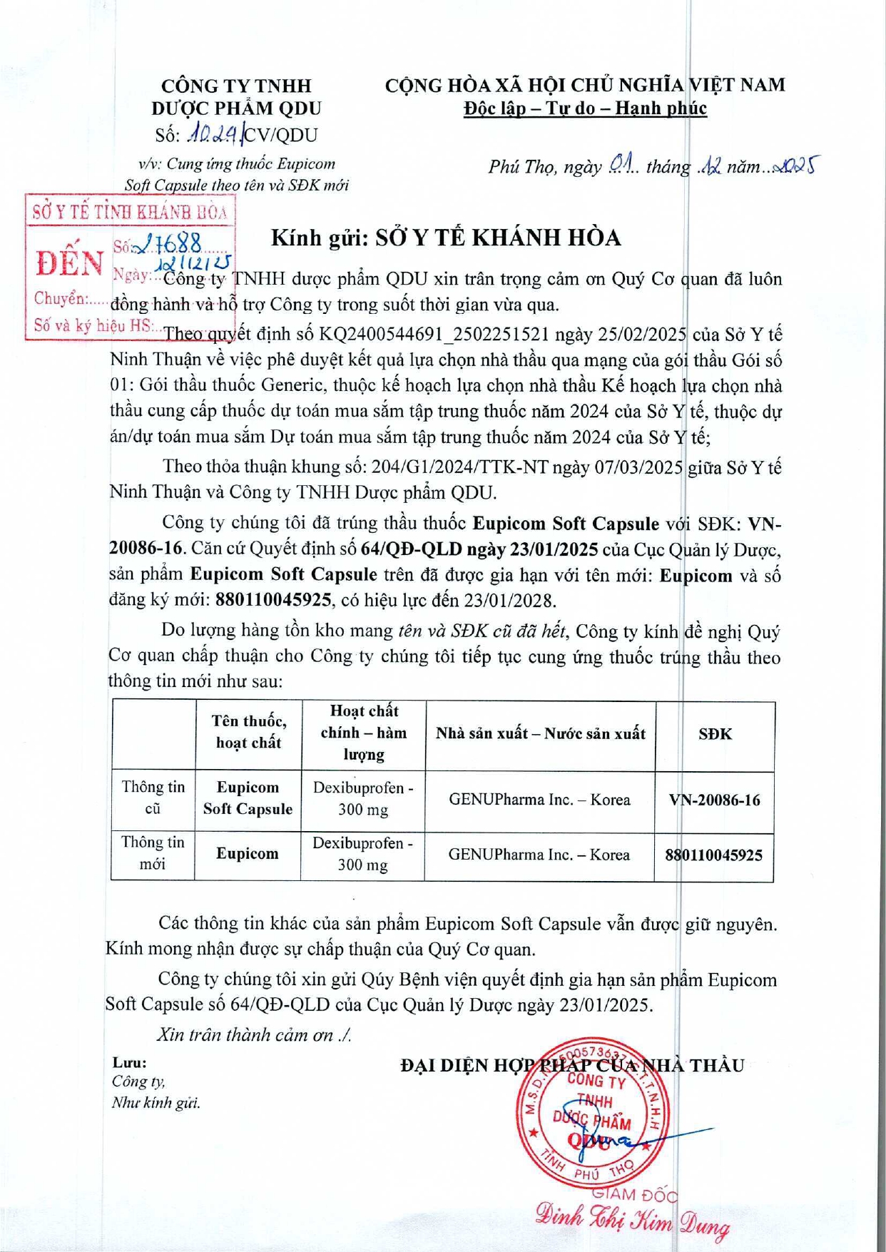 Quyết định Về việc điều chỉnh một số nội dung của Quyết định số 754/QĐ-SYT ngày 15/10/2025 của Sở Y tế về việc phê duyệt kết quả lựa chọn nhà thầu qua mạng gói số 1: Gói thầu thuốc Generic thuộc kế hoạch lựa chọn nhà thầu cung cấp thuốc: Mua sắm tập trung thuốc cấp địa phương tỉnh Khánh Hòa năm 2025-2027 (lần 2)