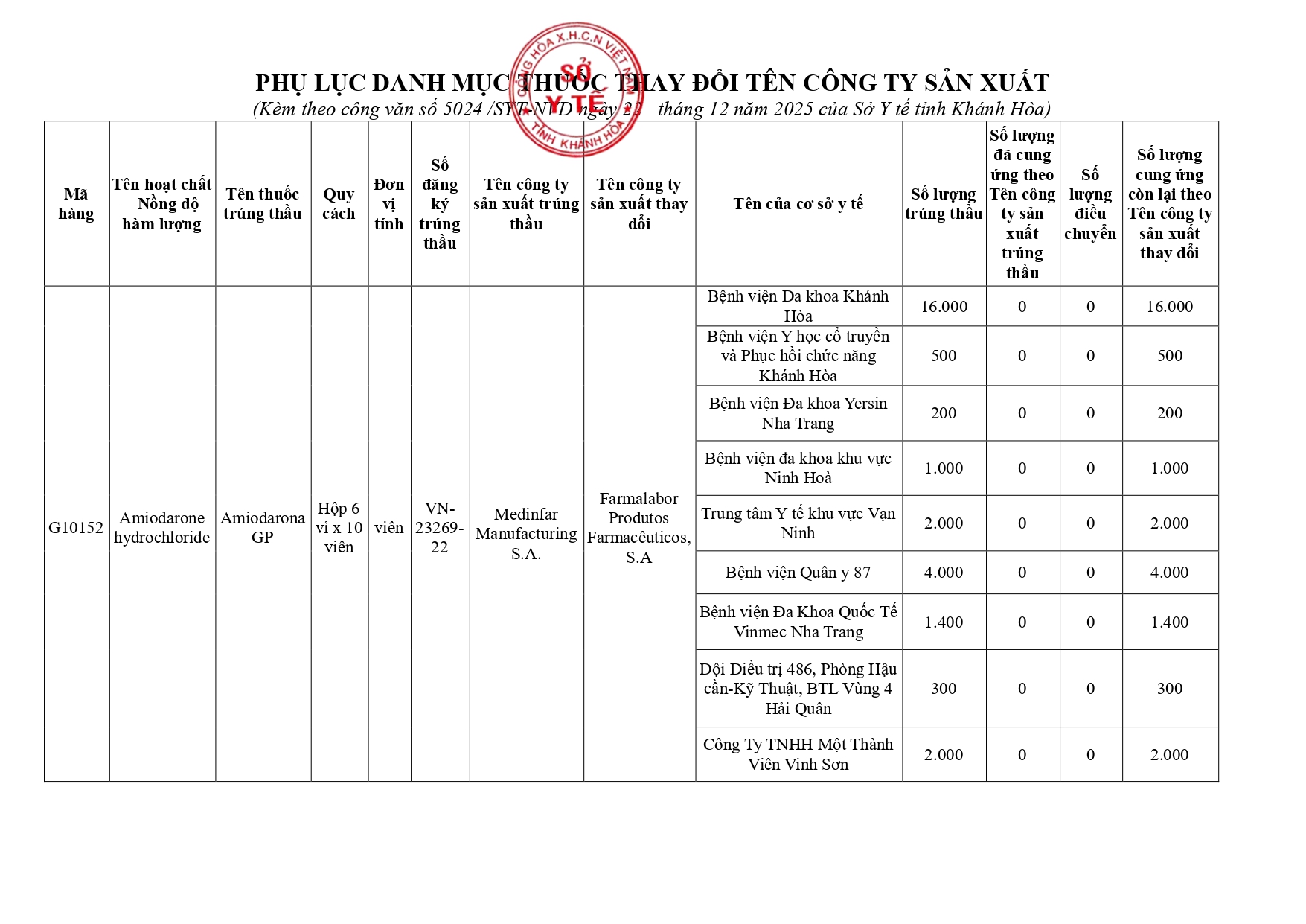 Quyết định Về việc điều chỉnh một số nội dung của Quyết định số 754/QĐ-SYT ngày 15/10/2025 của Sở Y tế về việc phê duyệt kết quả lựa chọn nhà thầu qua mạng gói số 1: Gói thầu thuốc Generic thuộc kế hoạch lựa chọn nhà thầu cung cấp thuốc: Mua sắm tập trung thuốc cấp địa phương tỉnh Khánh Hòa năm 2025-2027