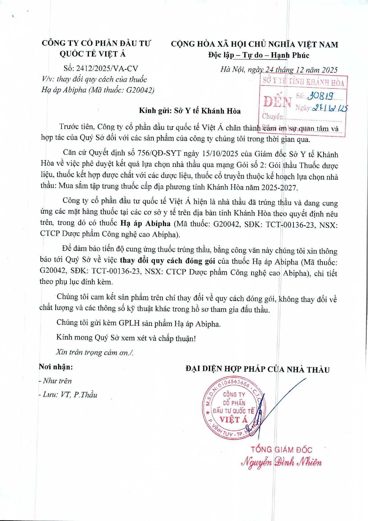 Quyết định Về việc điều chỉnh một số nội dung của Quyết định số 754/QĐ-SYT ngày 15/10/2025 của Sở Y tế về việc phê duyệt kết quả lựa chọn nhà thầu qua mạng gói số 1: Gói thầu thuốc Generic thuộc kế hoạch lựa chọn nhà thầu cung cấp thuốc: Mua sắm tập trung thuốc cấp địa phương tỉnh Khánh Hòa năm 2025-2027 (lần 2)