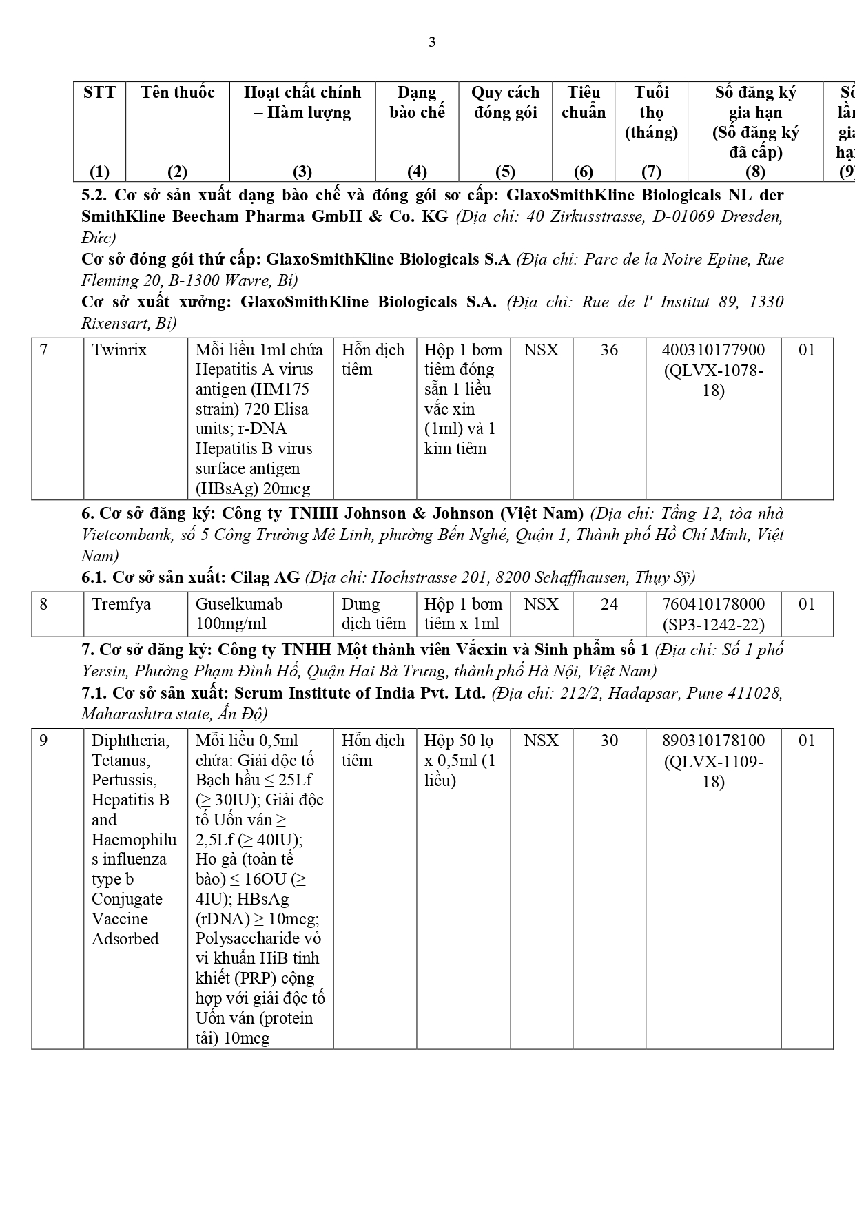 V/v thay đổi số đăng ký của mặt hàng trúng thầu