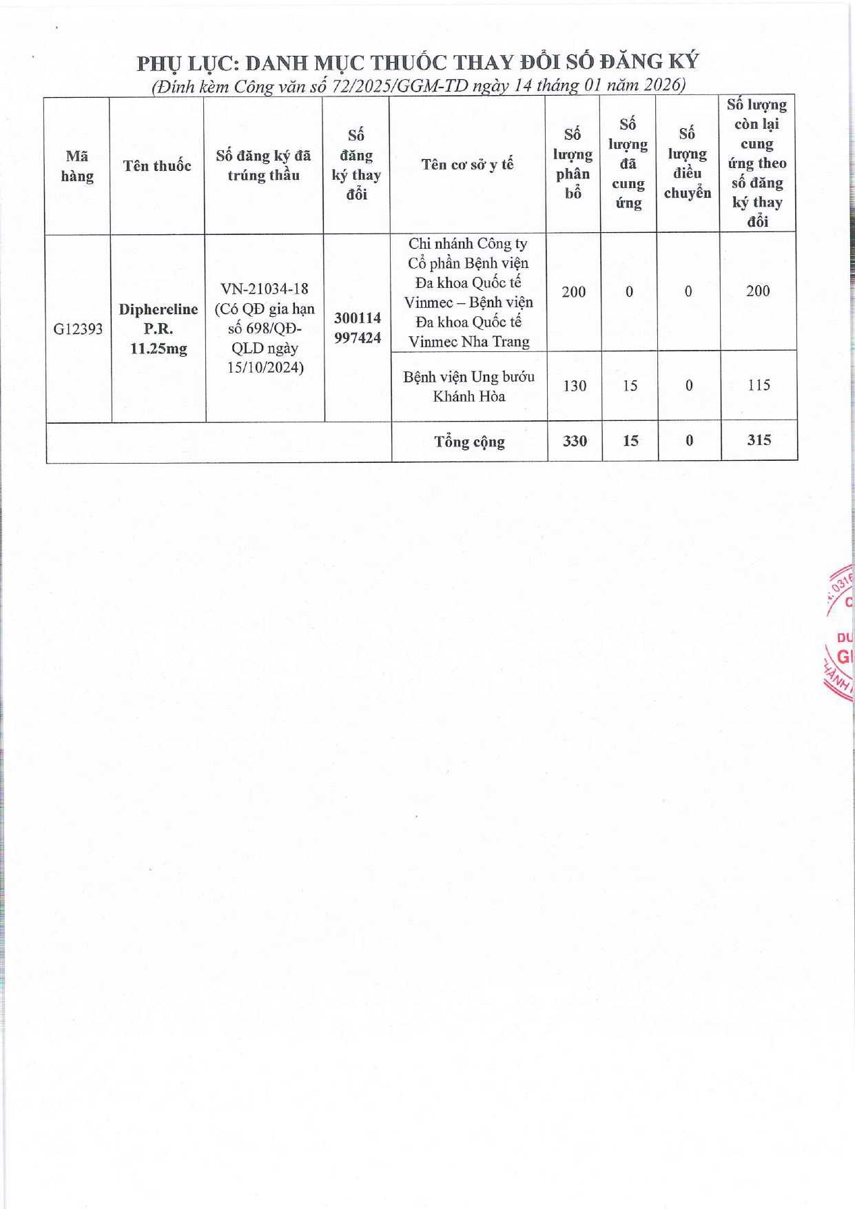 Quyết định Về việc điều chỉnh một số nội dung của Quyết định số 754/QĐ-SYT ngày 15/10/2025 của Sở Y tế về việc phê duyệt kết quả lựa chọn nhà thầu qua mạng gói số 1: Gói thầu thuốc Generic thuộc kế hoạch lựa chọn nhà thầu cung cấp thuốc: Mua sắm tập trung thuốc cấp địa phương tỉnh Khánh Hòa năm 2025-2027 (lần 2)