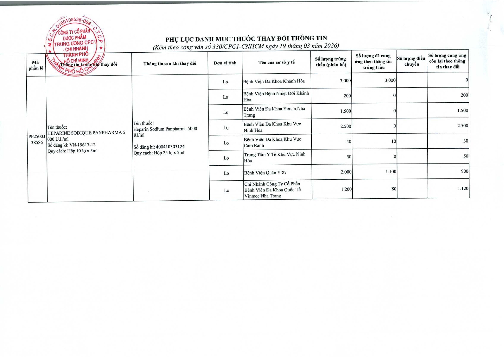 Quyết định Về việc điều chỉnh một số nội dung của Quyết định số 754/QĐ-SYT ngày 15/10/2025 của Sở Y tế về việc phê duyệt kết quả lựa chọn nhà thầu qua mạng gói số 1: Gói thầu thuốc Generic thuộc kế hoạch lựa chọn nhà thầu cung cấp thuốc: Mua sắm tập trung thuốc cấp địa phương tỉnh Khánh Hòa năm 2025-2027 (lần 2)