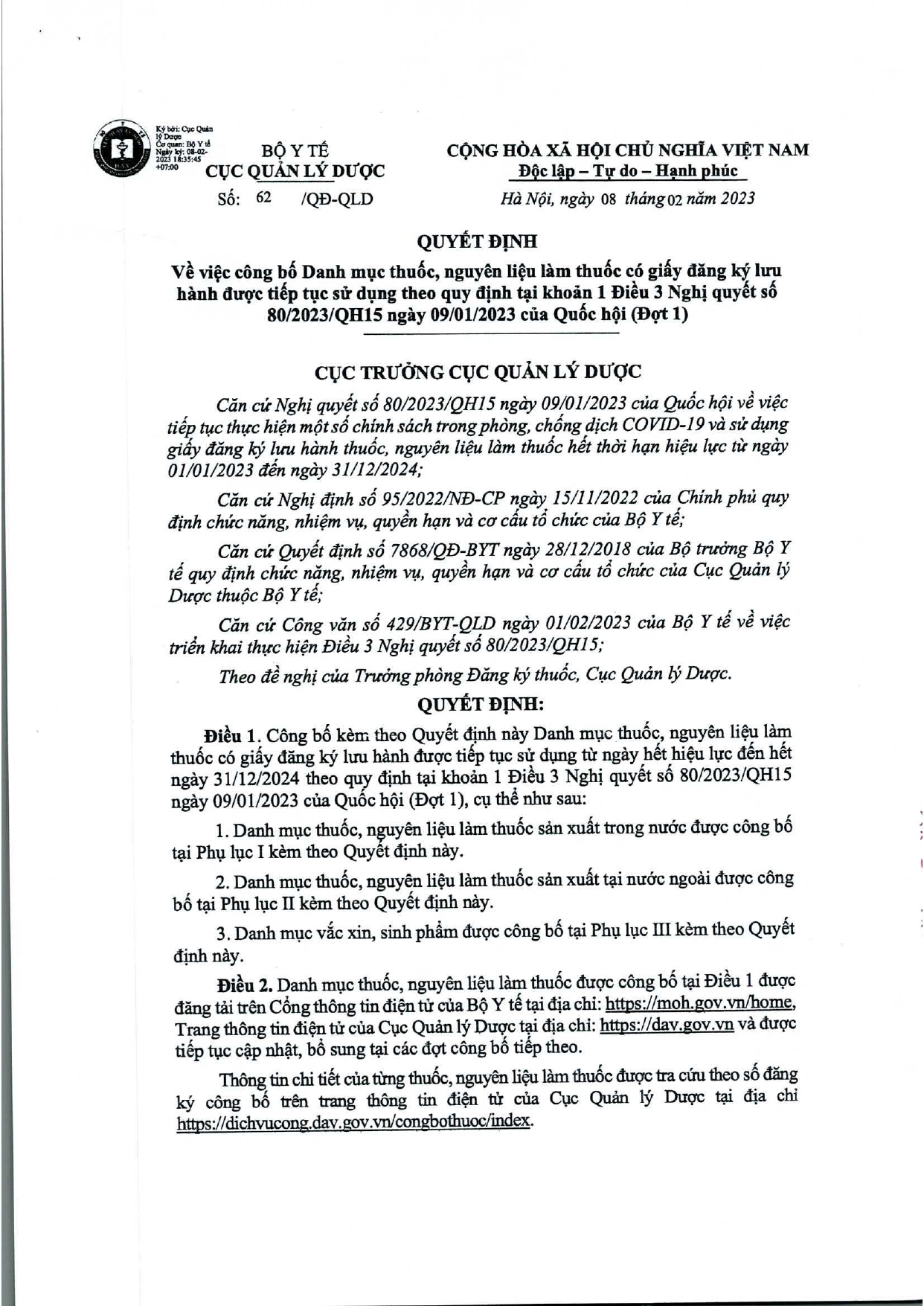 Quyết định Về việc thu hồi số công bố tiêu chuẩn áp dụng của thiết bị y tế thuộc loại A, B