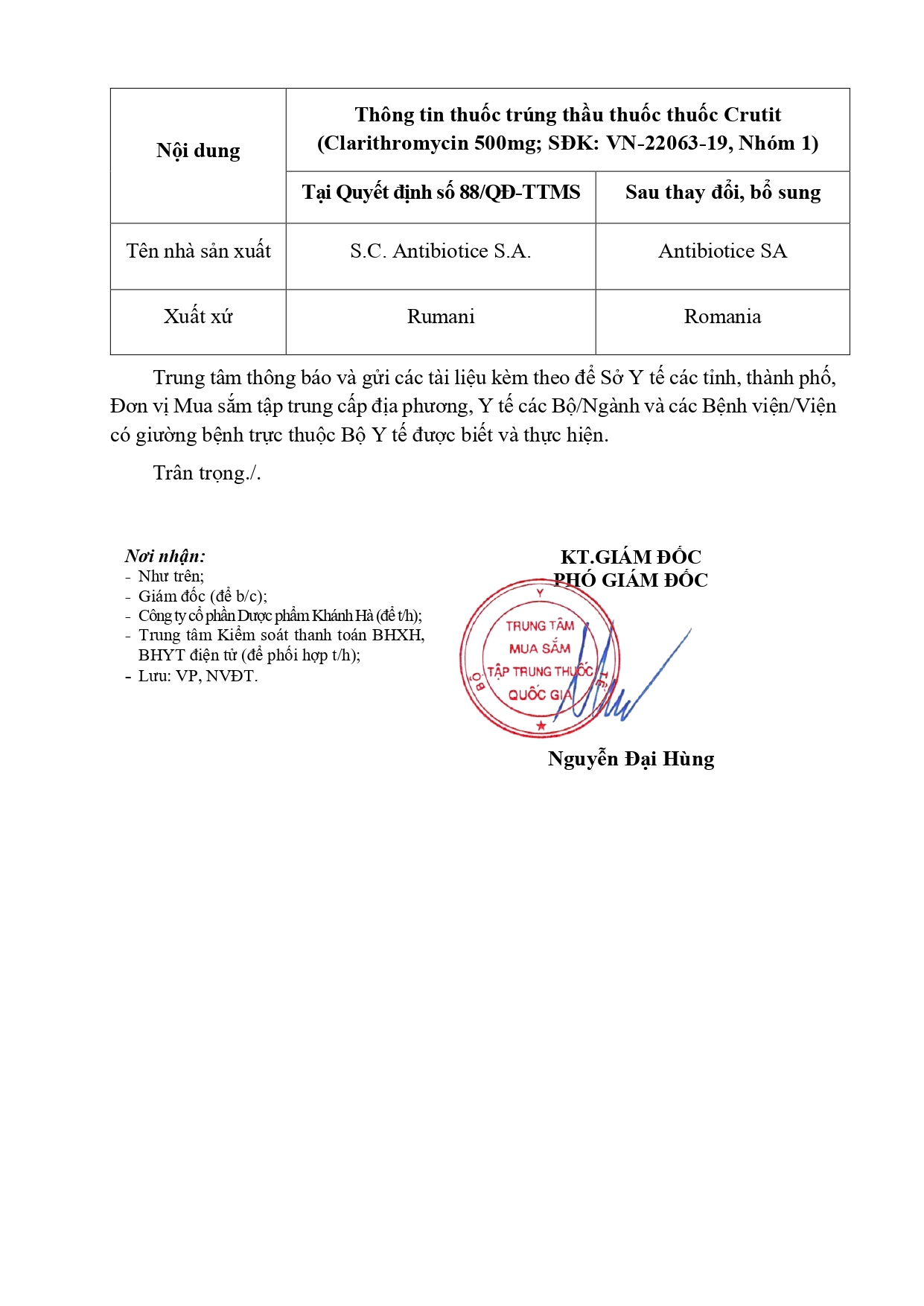 Quyết định Về việc điều chỉnh một số nội dung của Quyết định số 754/QĐ-SYT ngày 15/10/2025 của Sở Y tế về việc phê duyệt kết quả lựa chọn nhà thầu qua mạng gói số 1: Gói thầu thuốc Generic thuộc kế hoạch lựa chọn nhà thầu cung cấp thuốc: Mua sắm tập trung thuốc cấp địa phương tỉnh Khánh Hòa năm 2025-2027