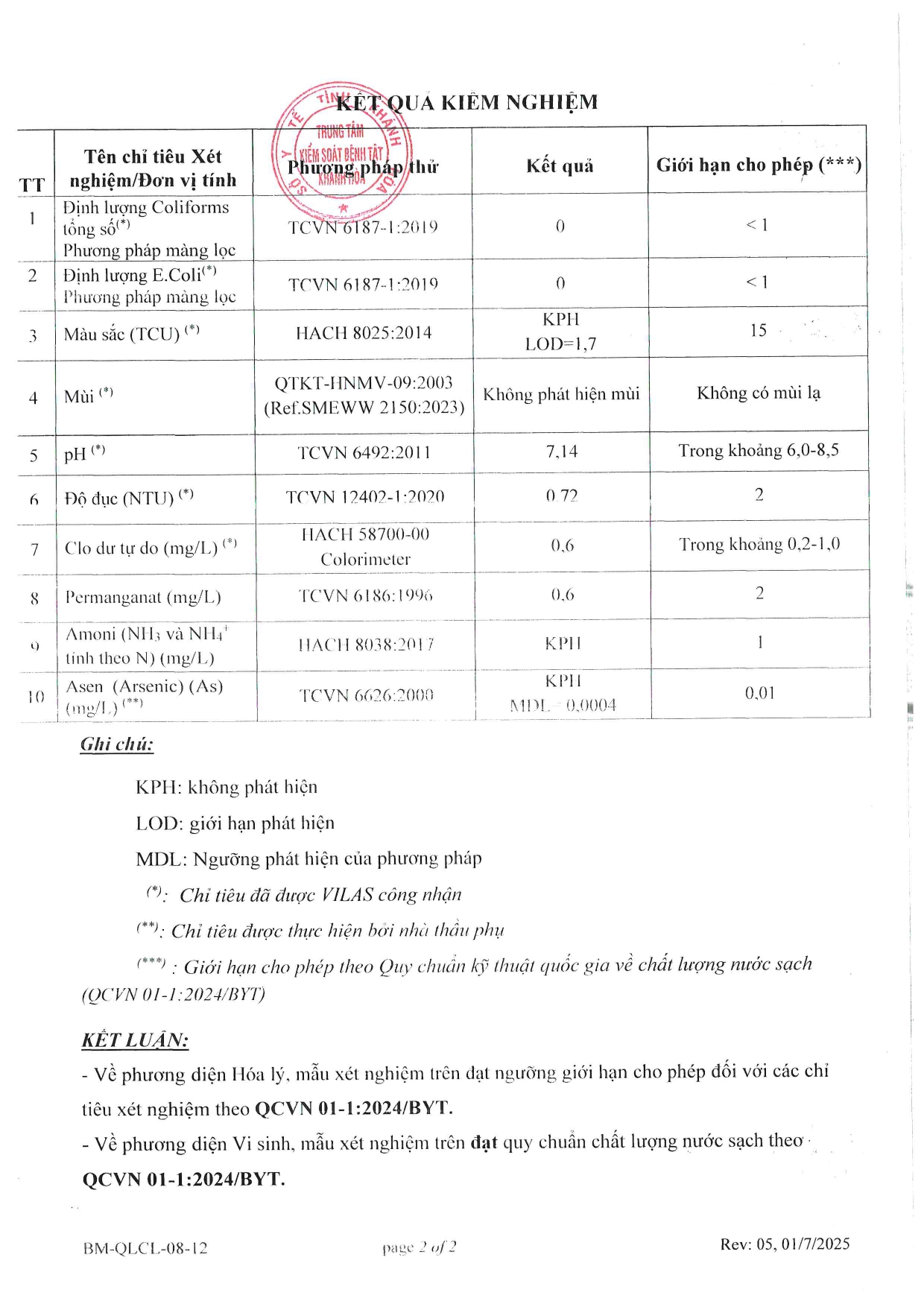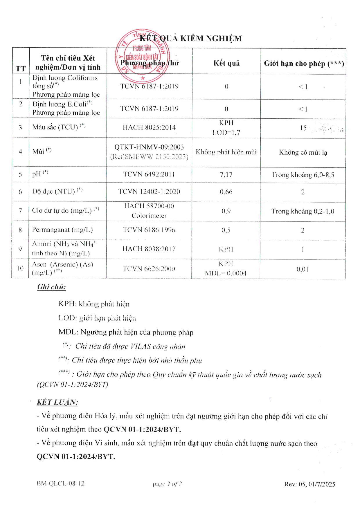 V/v trả lời kết quả kiểm tra, giám sát ngoại kiểm chất lượng nước sạch sử dụng cho mục đích sinh hoạt năm 2025