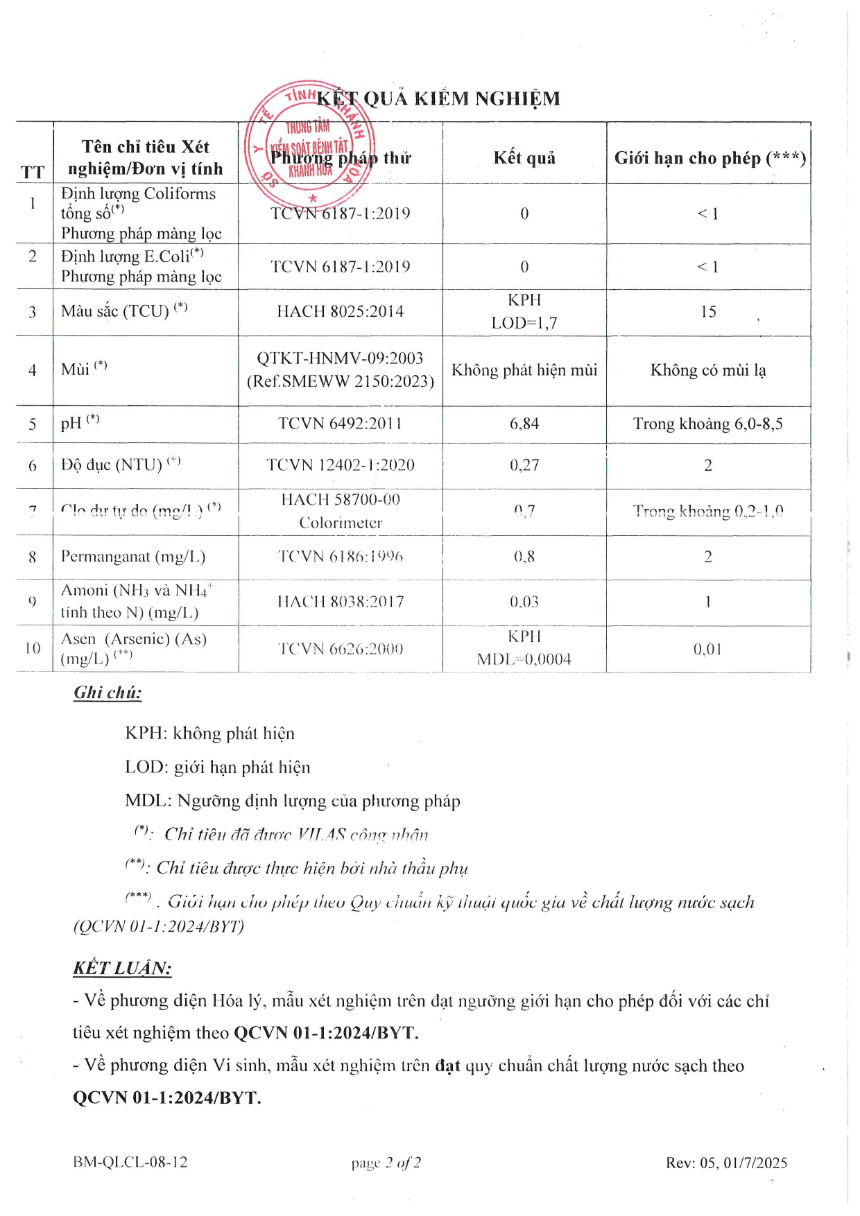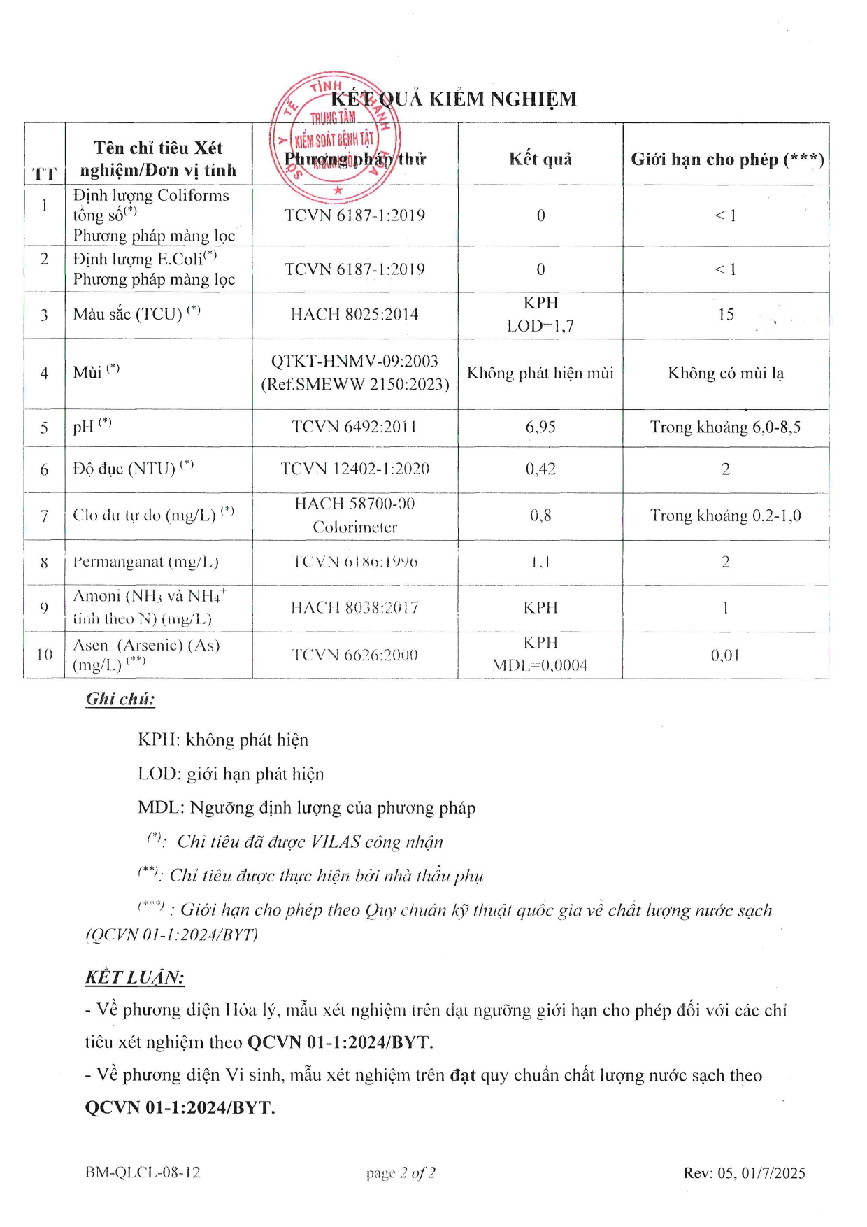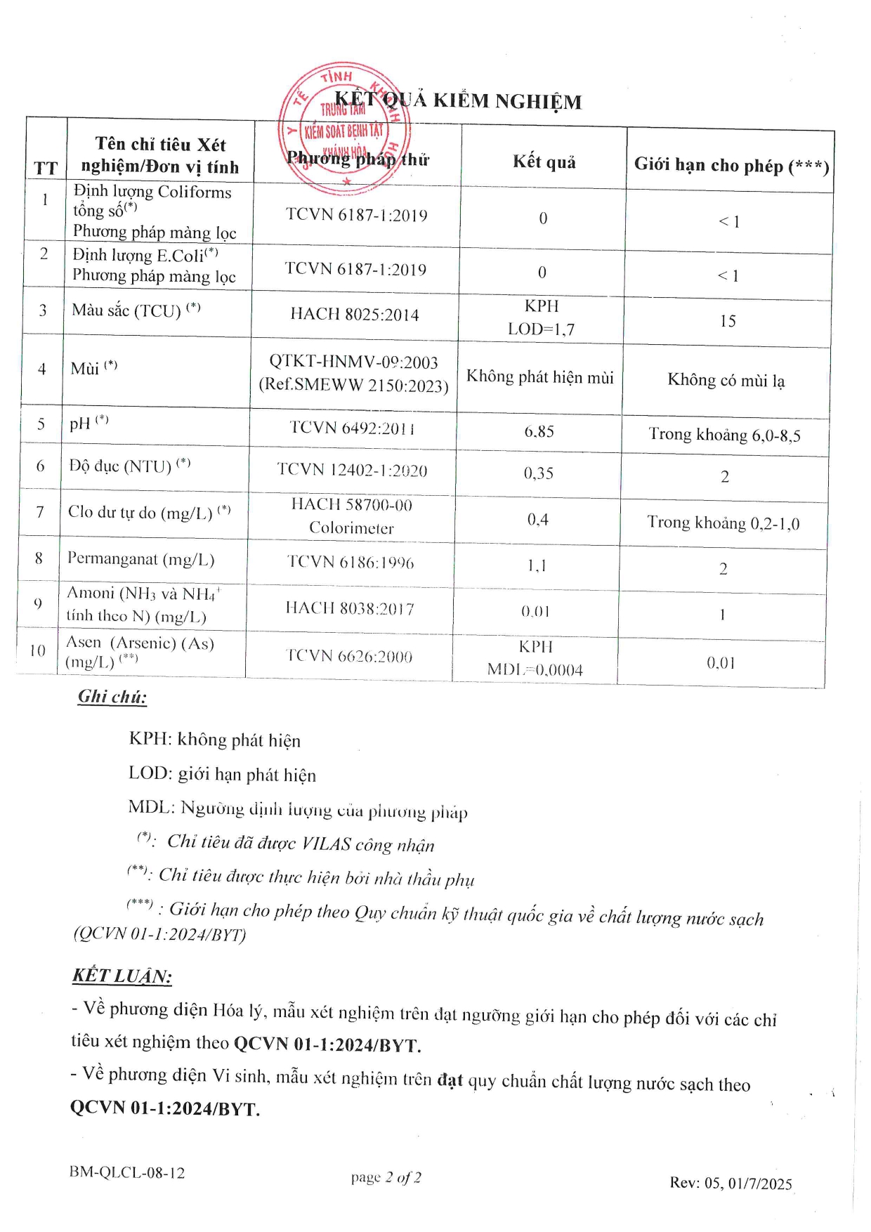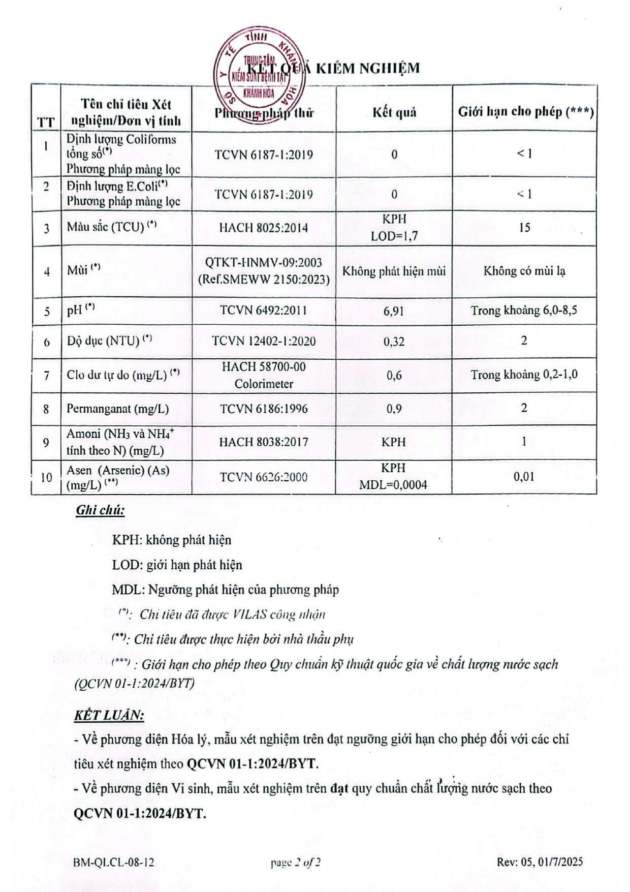 V/v trả lời kết quả kiểm tra, giám sát ngoại kiểm chất lượng nước sạch sử dụng cho mục đích sinh hoạt năm 2025