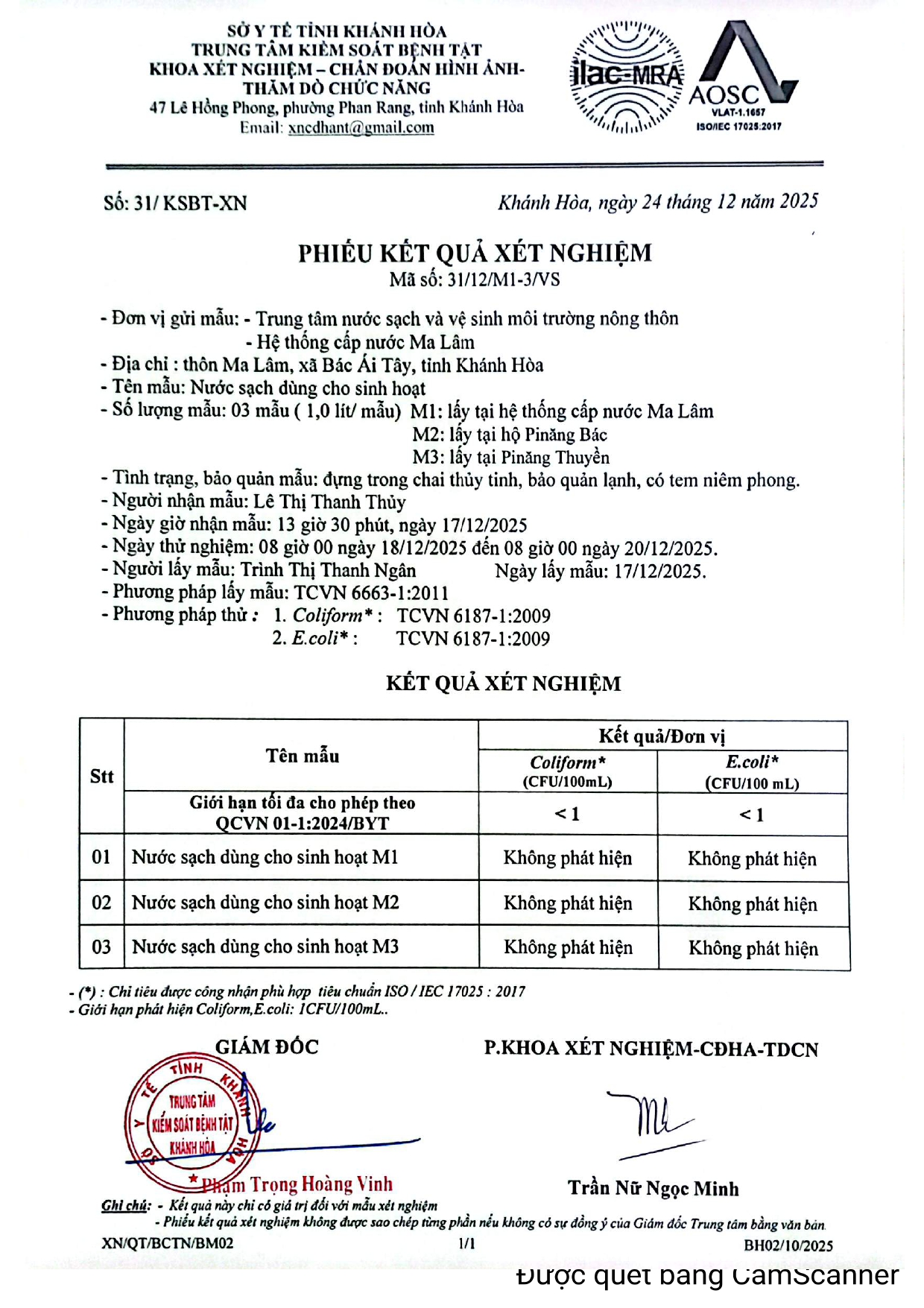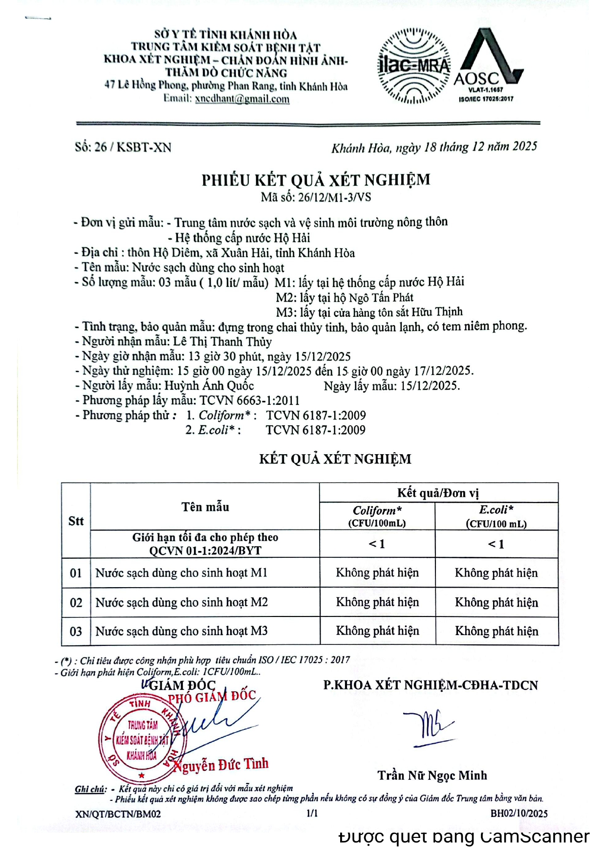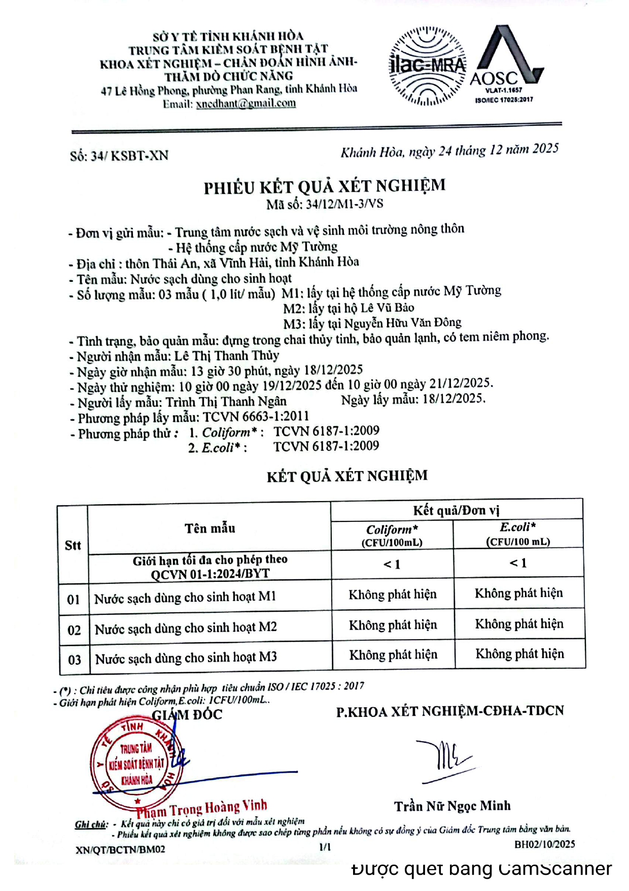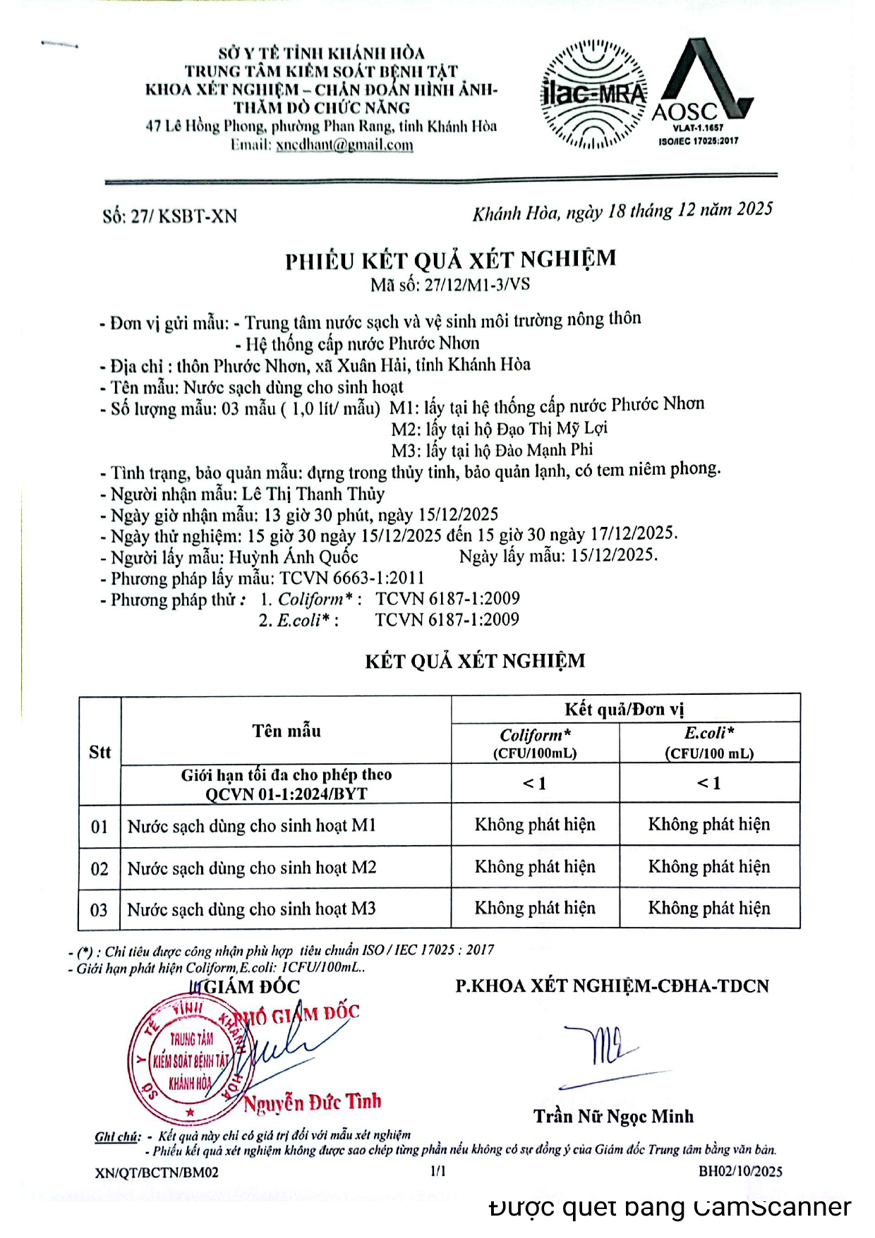 V/v trả lời kết quả kiểm tra, giám sát ngoại kiểm chất lượng nước sạch sử dụng cho mục đích sinh hoạt năm 2025