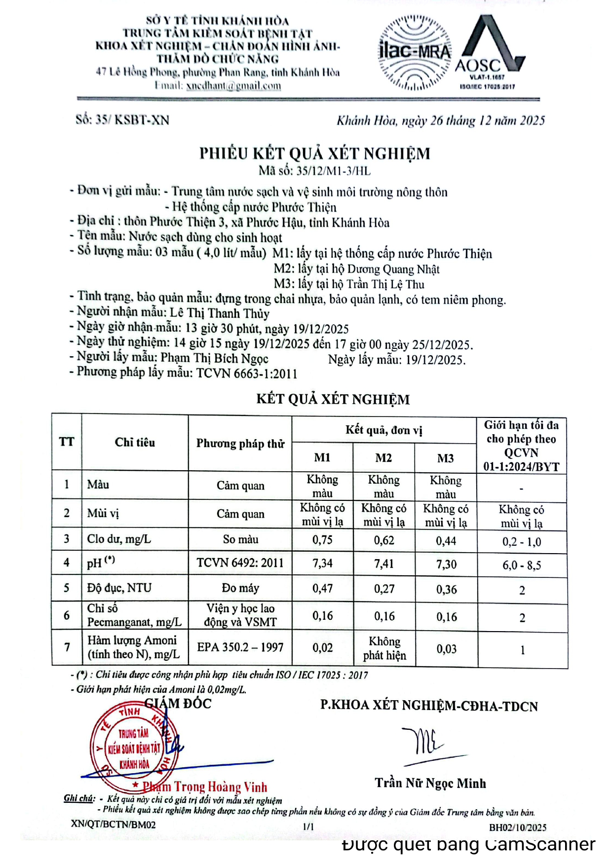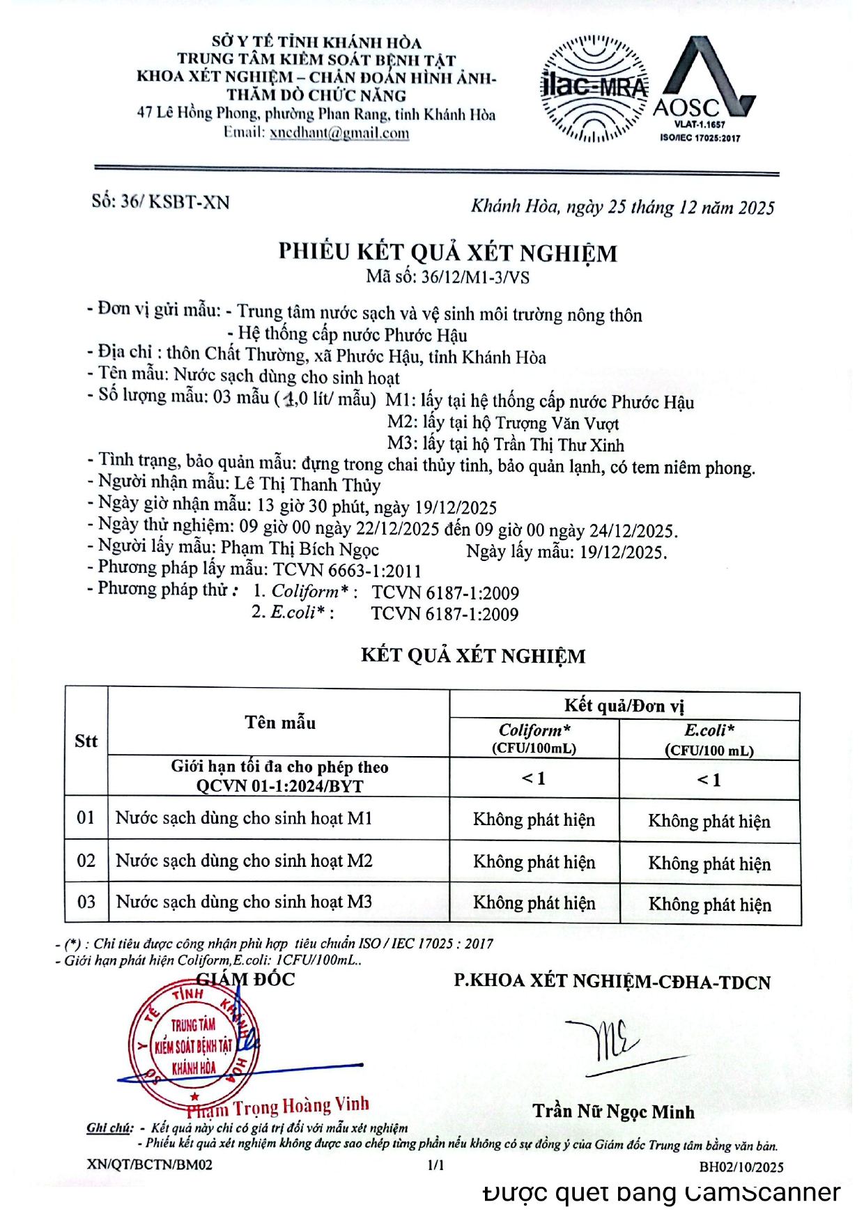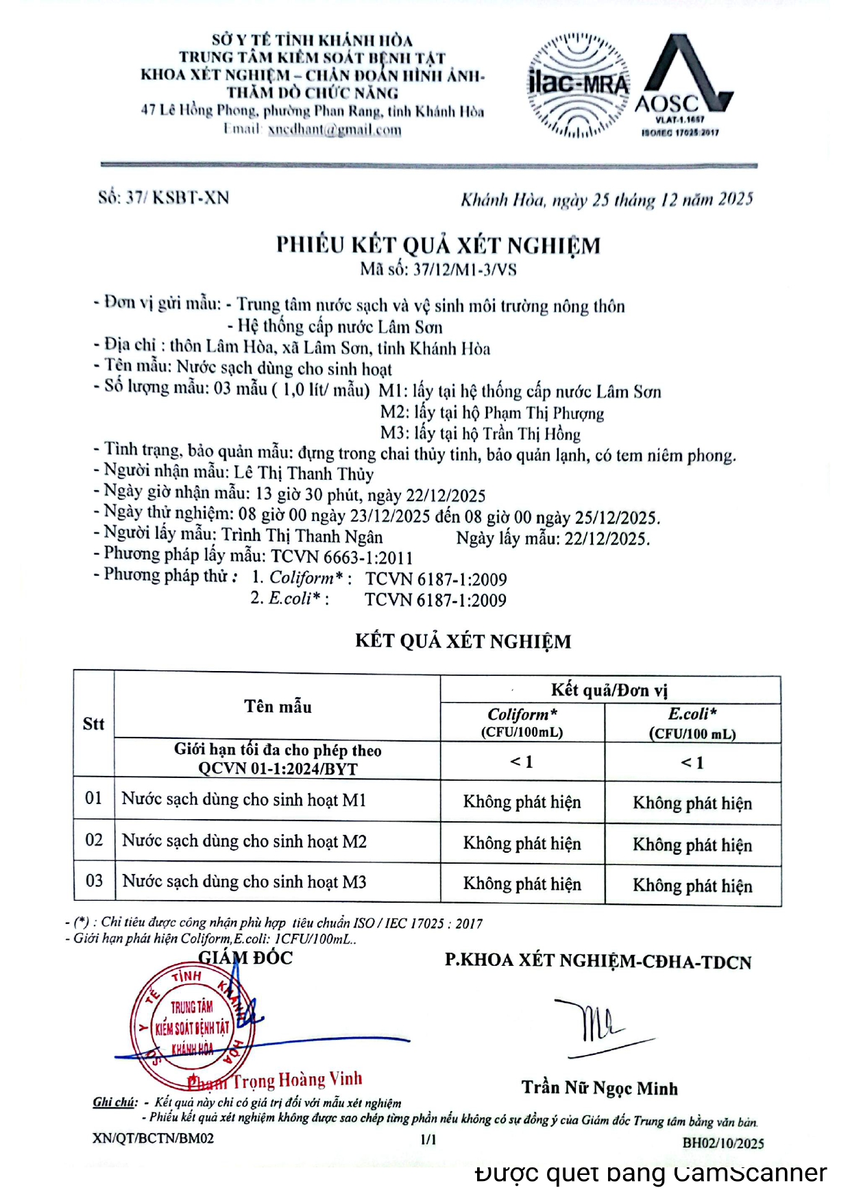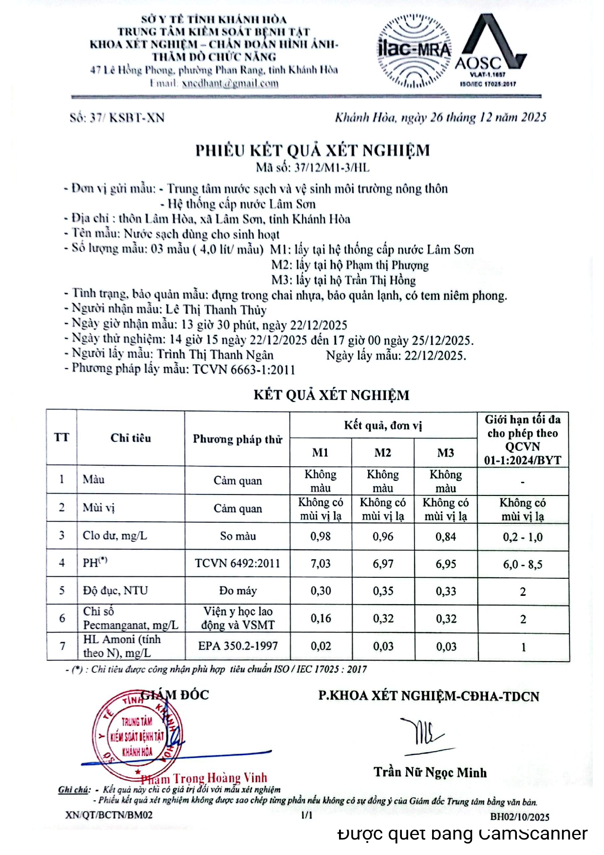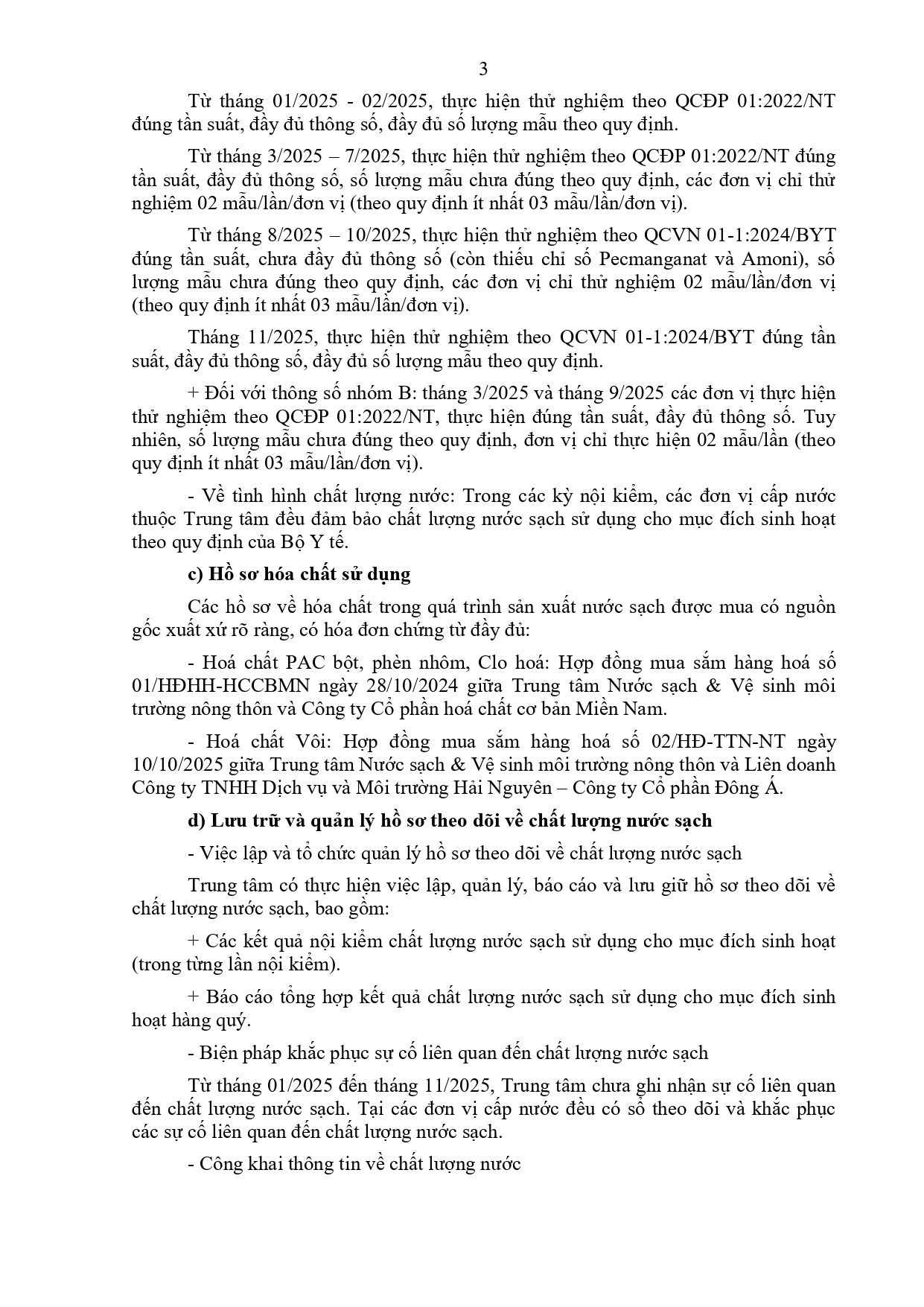 V/v trả lời kết quả kiểm tra, giám sát ngoại kiểm chất lượng nước sạch sử dụng cho mục đích sinh hoạt năm 2025