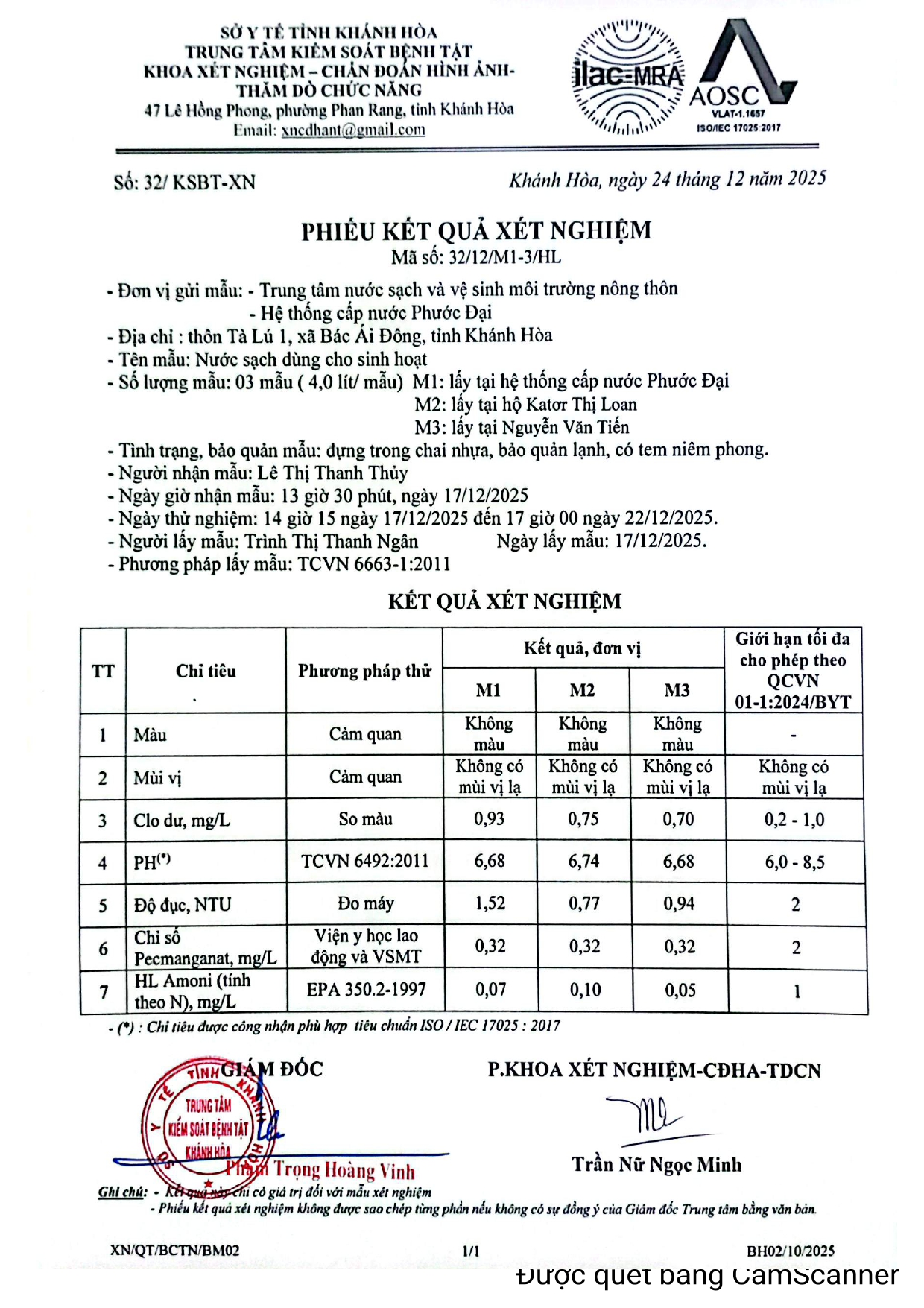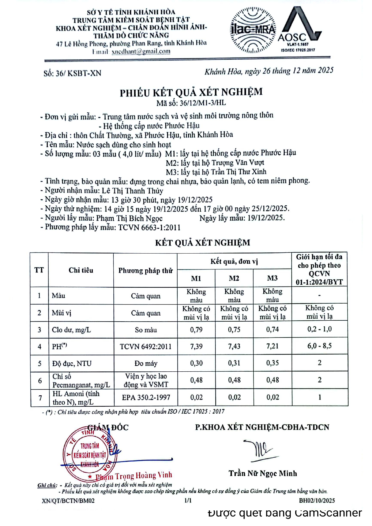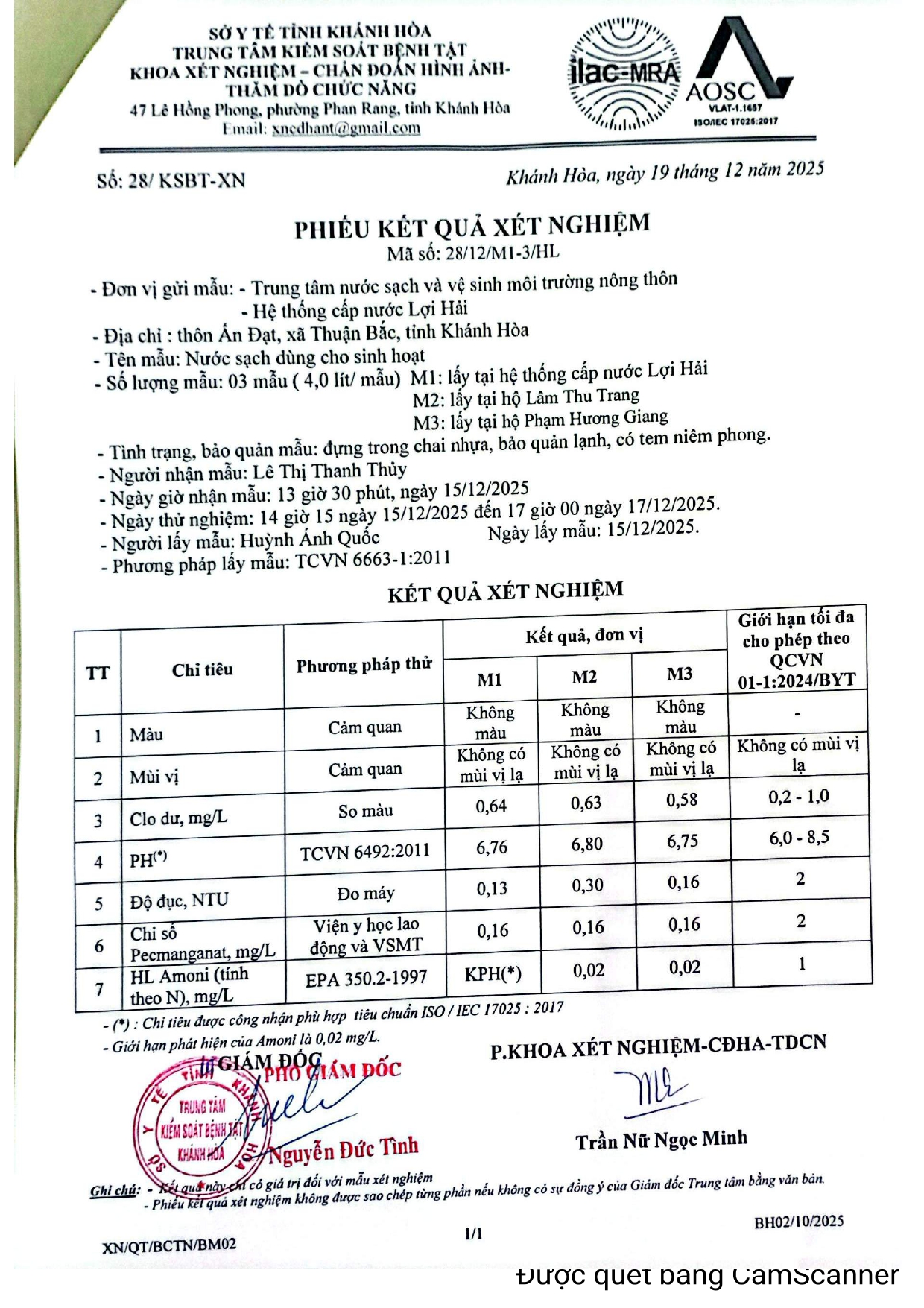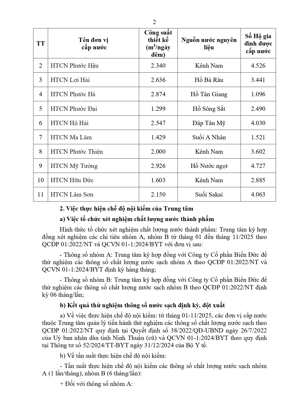 V/v trả lời kết quả kiểm tra, giám sát ngoại kiểm chất lượng nước sạch sử dụng cho mục đích sinh hoạt năm 2025