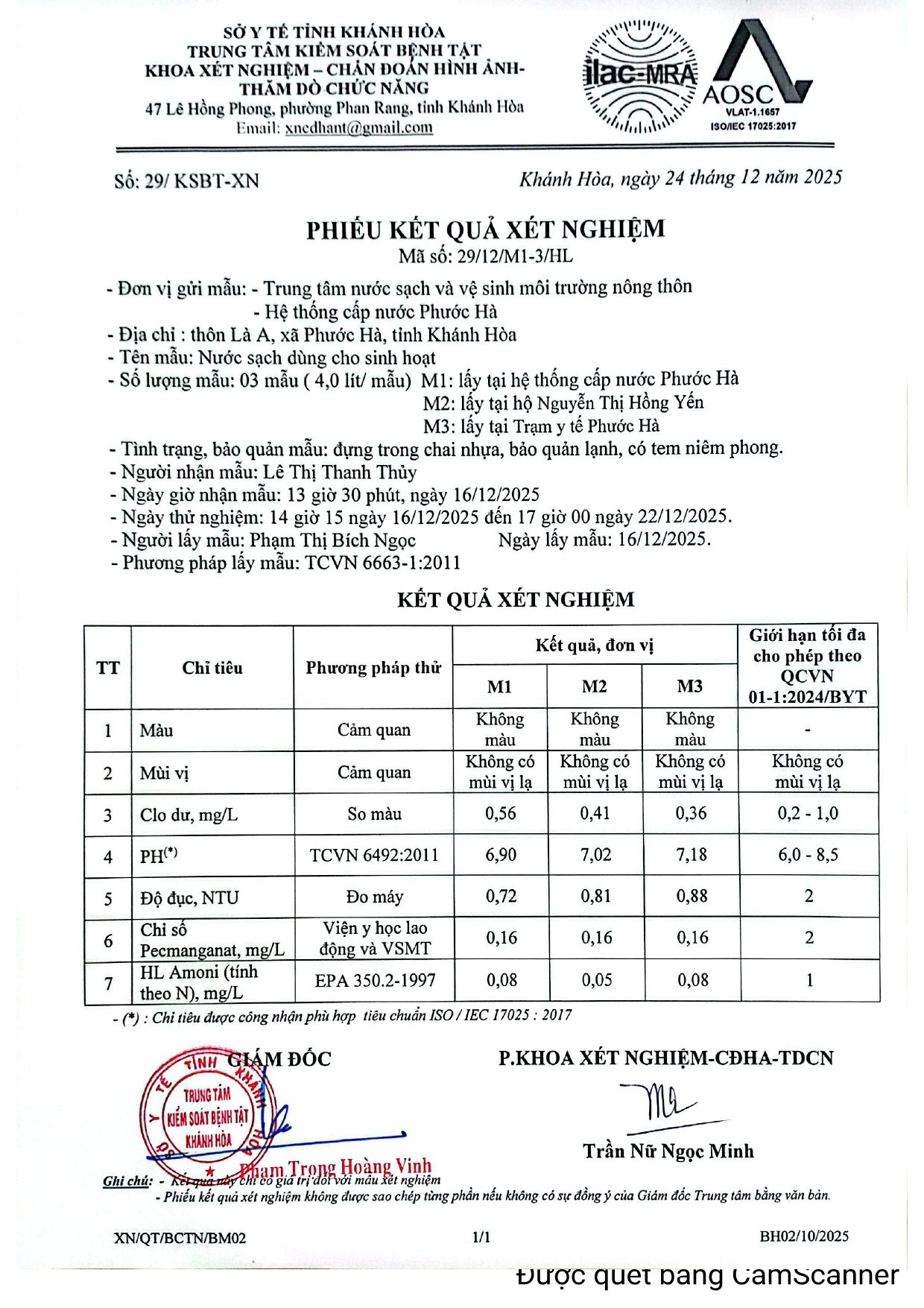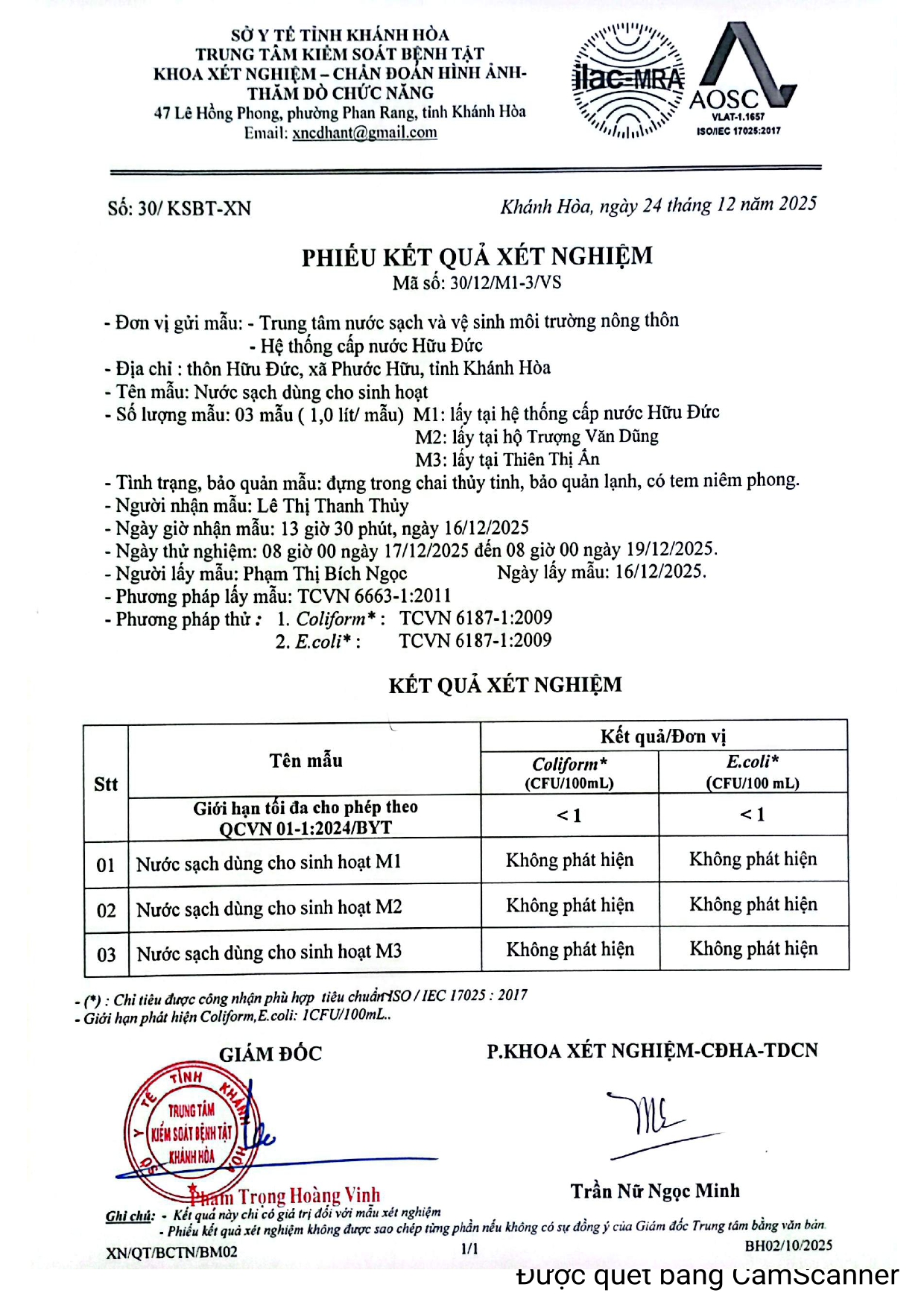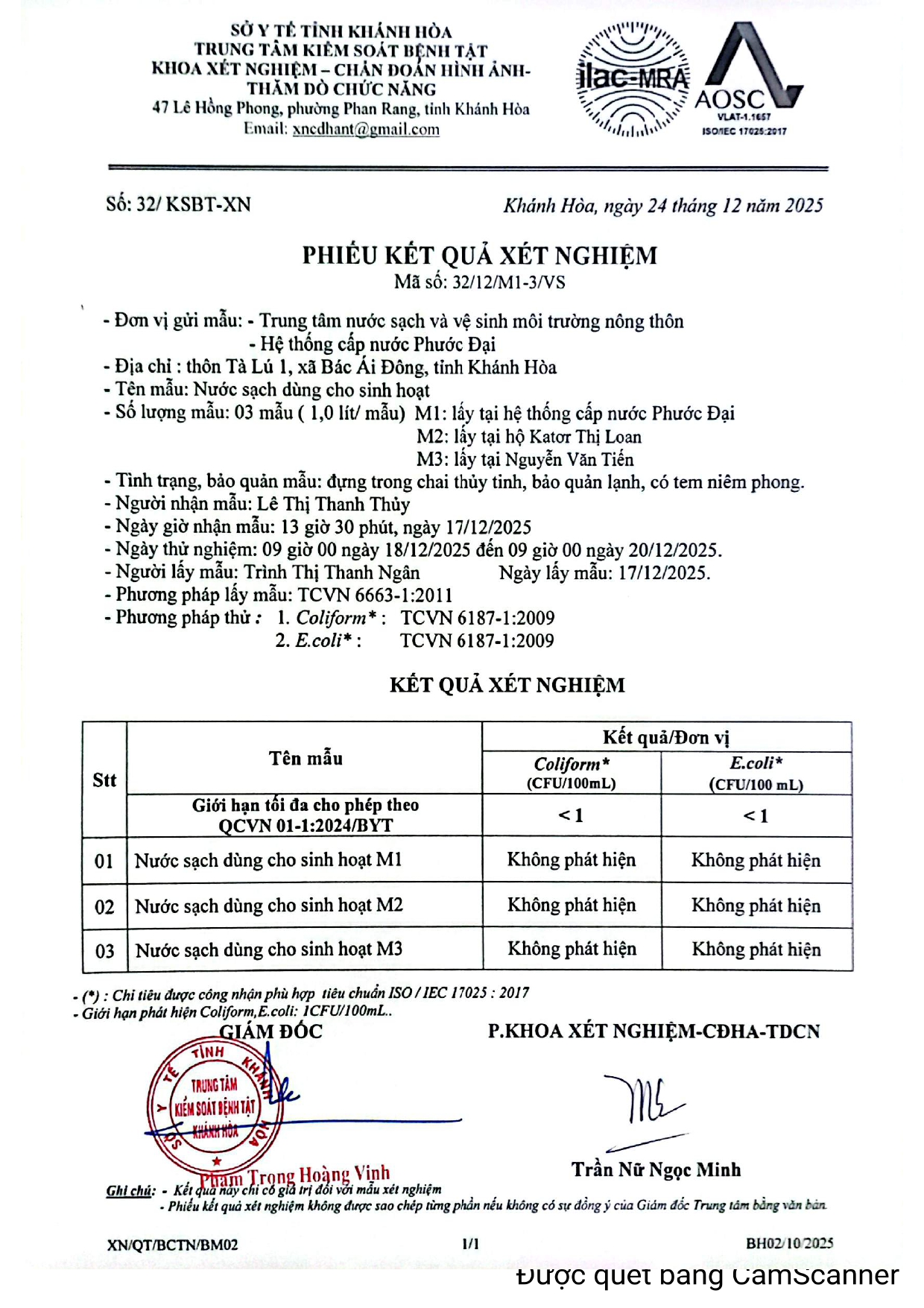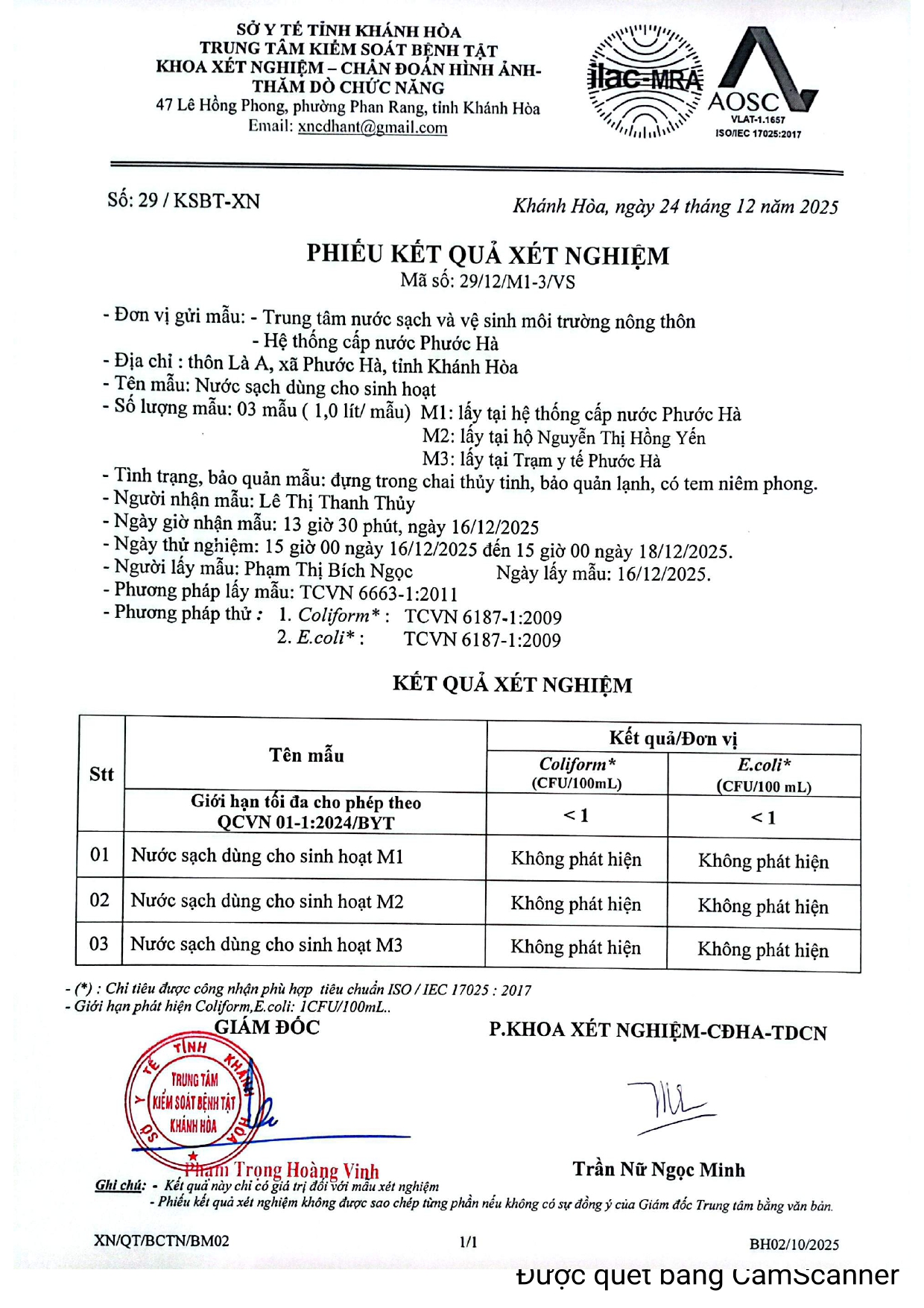 V/v trả lời kết quả kiểm tra, giám sát ngoại kiểm chất lượng nước sạch sử dụng cho mục đích sinh hoạt năm 2025