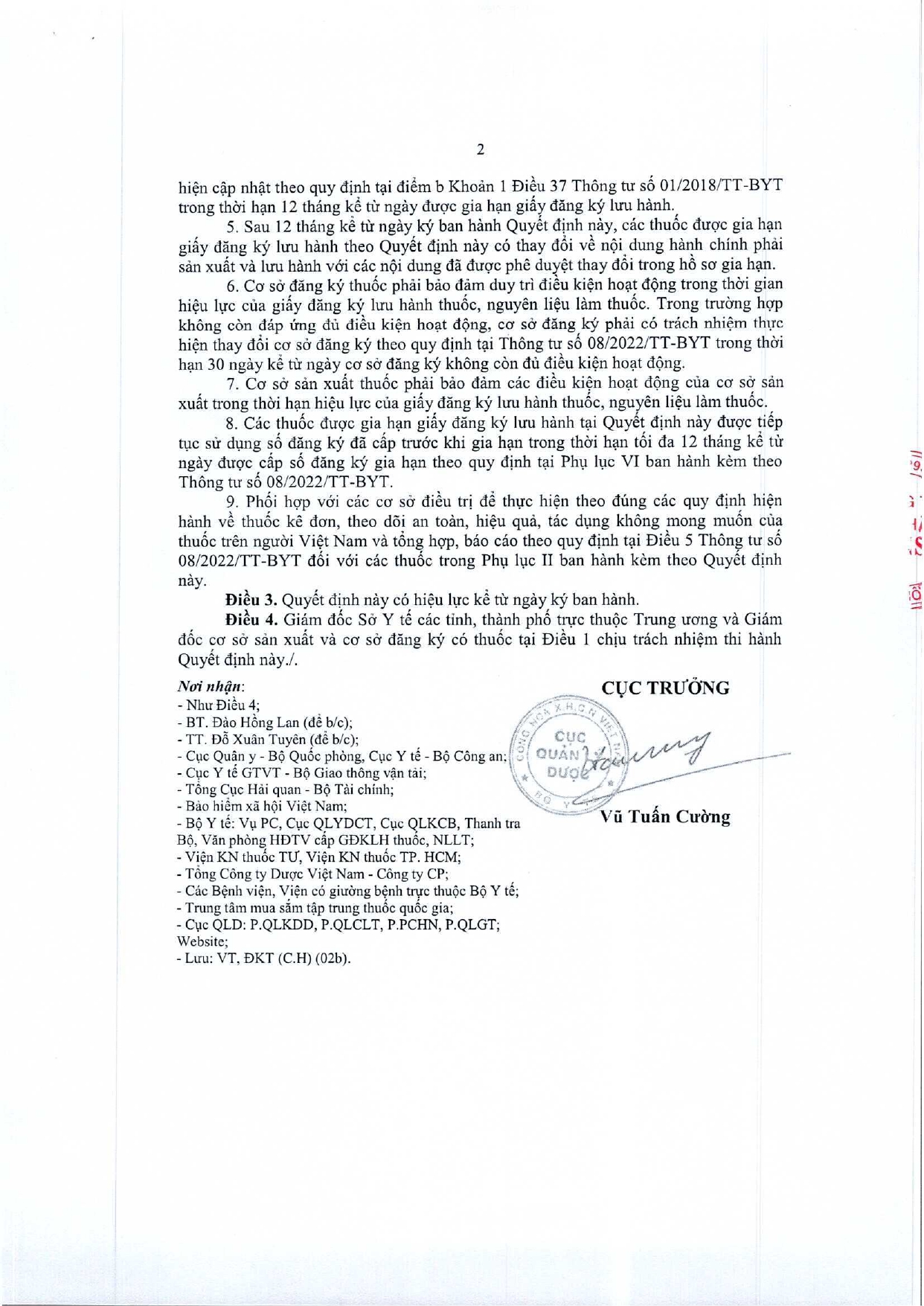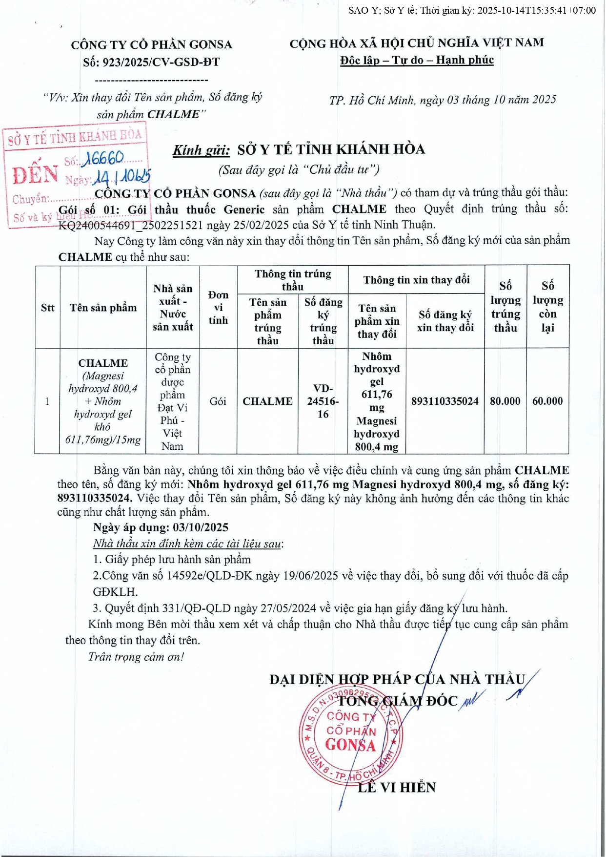 V/v thay đổi số đăng ký thuốc trúng thầu mã hàng G10944.