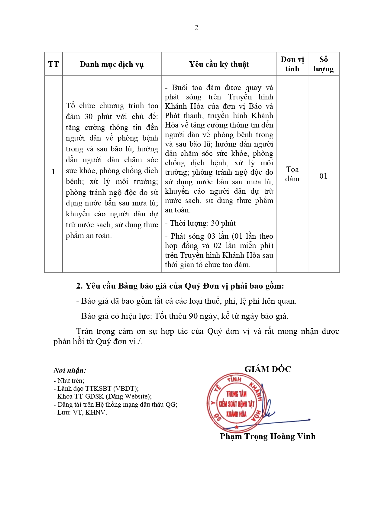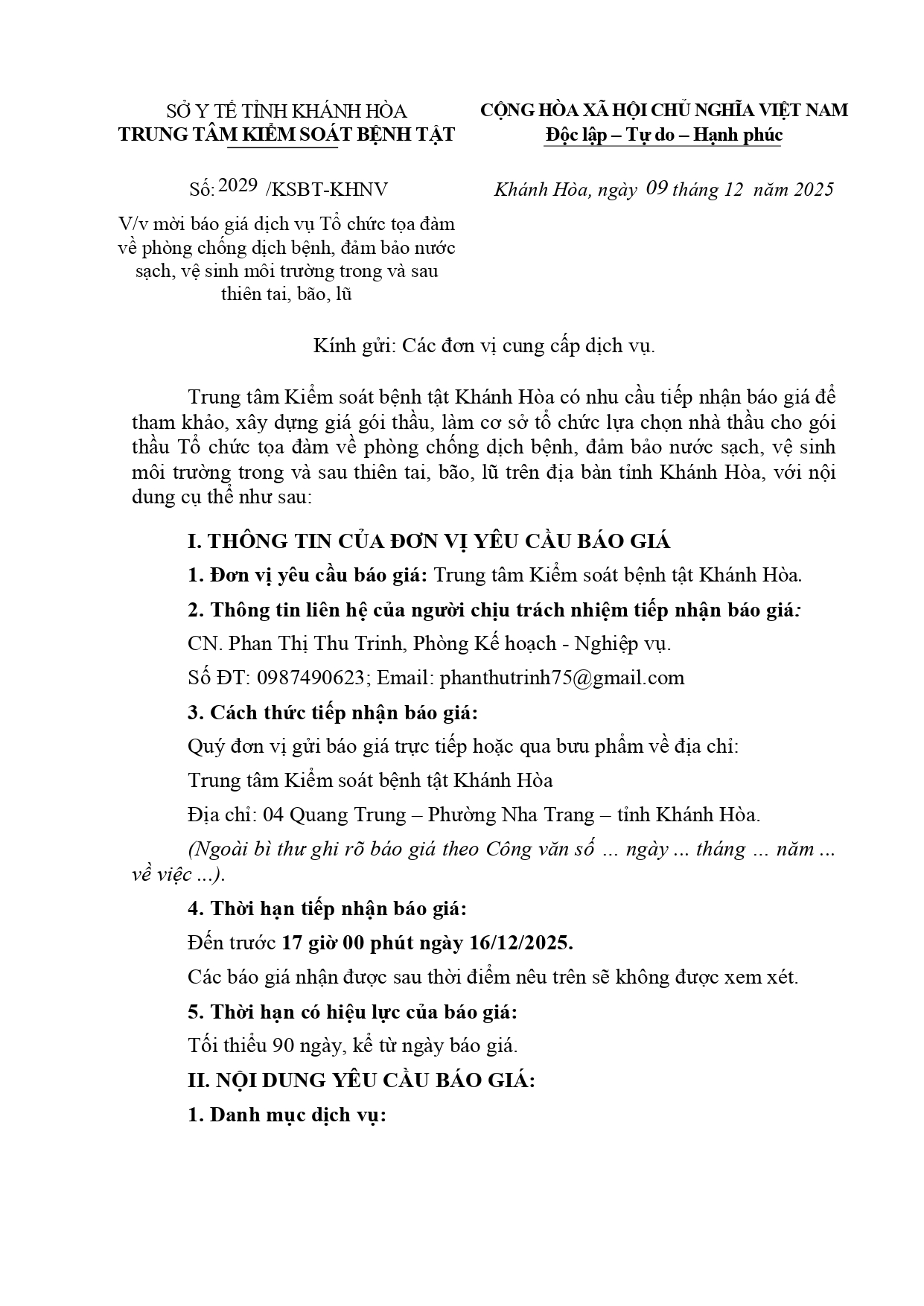 V/v mời chào giá thuê xe vận chuyển viên chức, người lao động đi công tác các huyện, thị xã, thành phố tỉnh Khánh Hòa