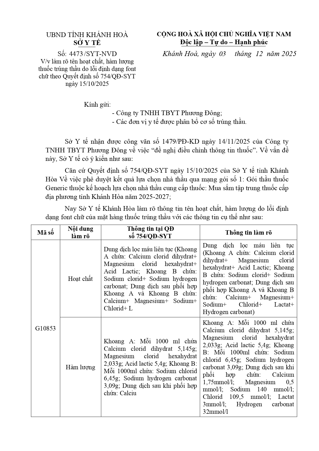 V/v làm rõ tên hoạt chất, hàm lượng thuốc trúng thầu do lỗi định dạng font chữ theo Quyết định số 754/QĐ-SYT ngày 15/10/2025