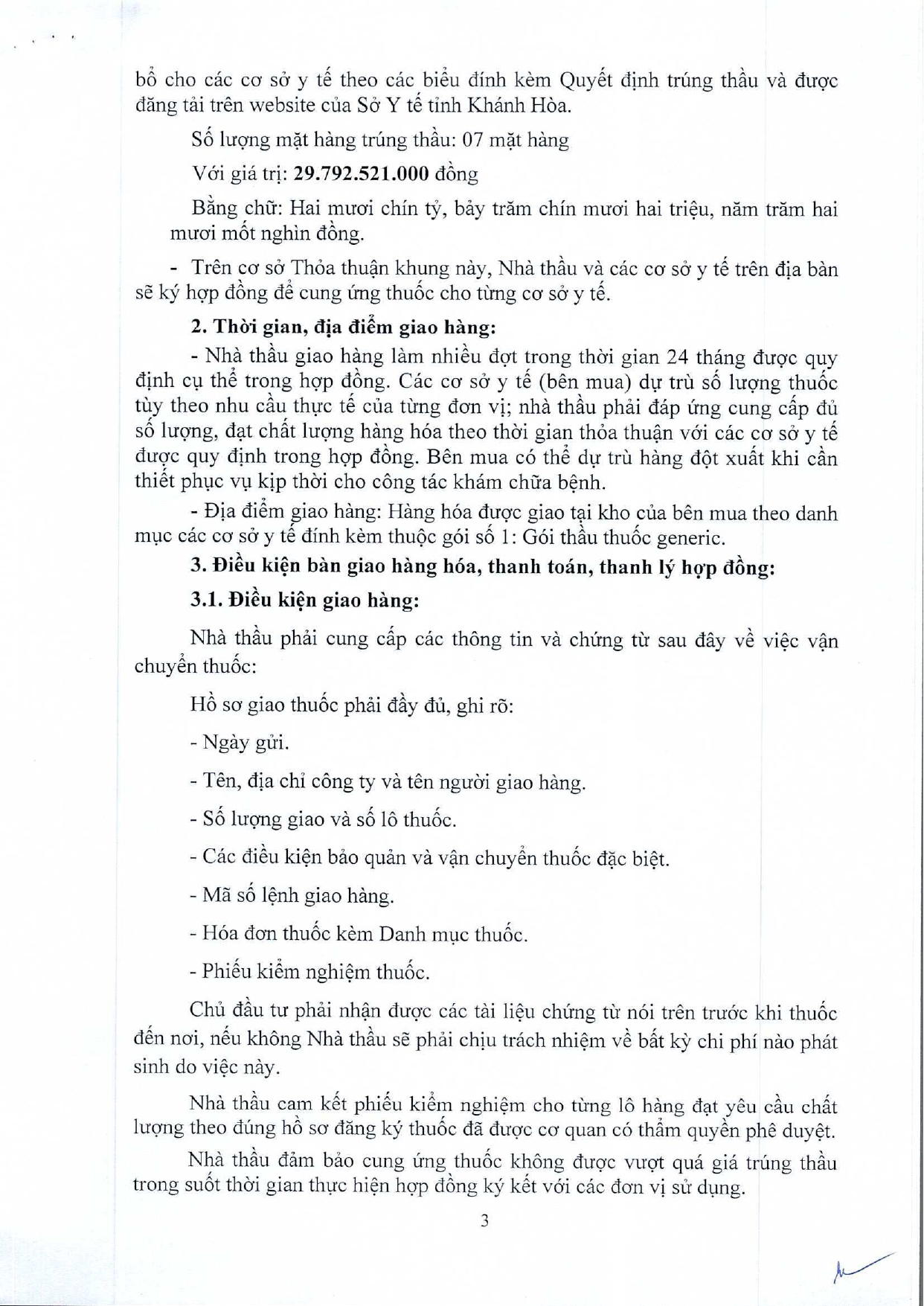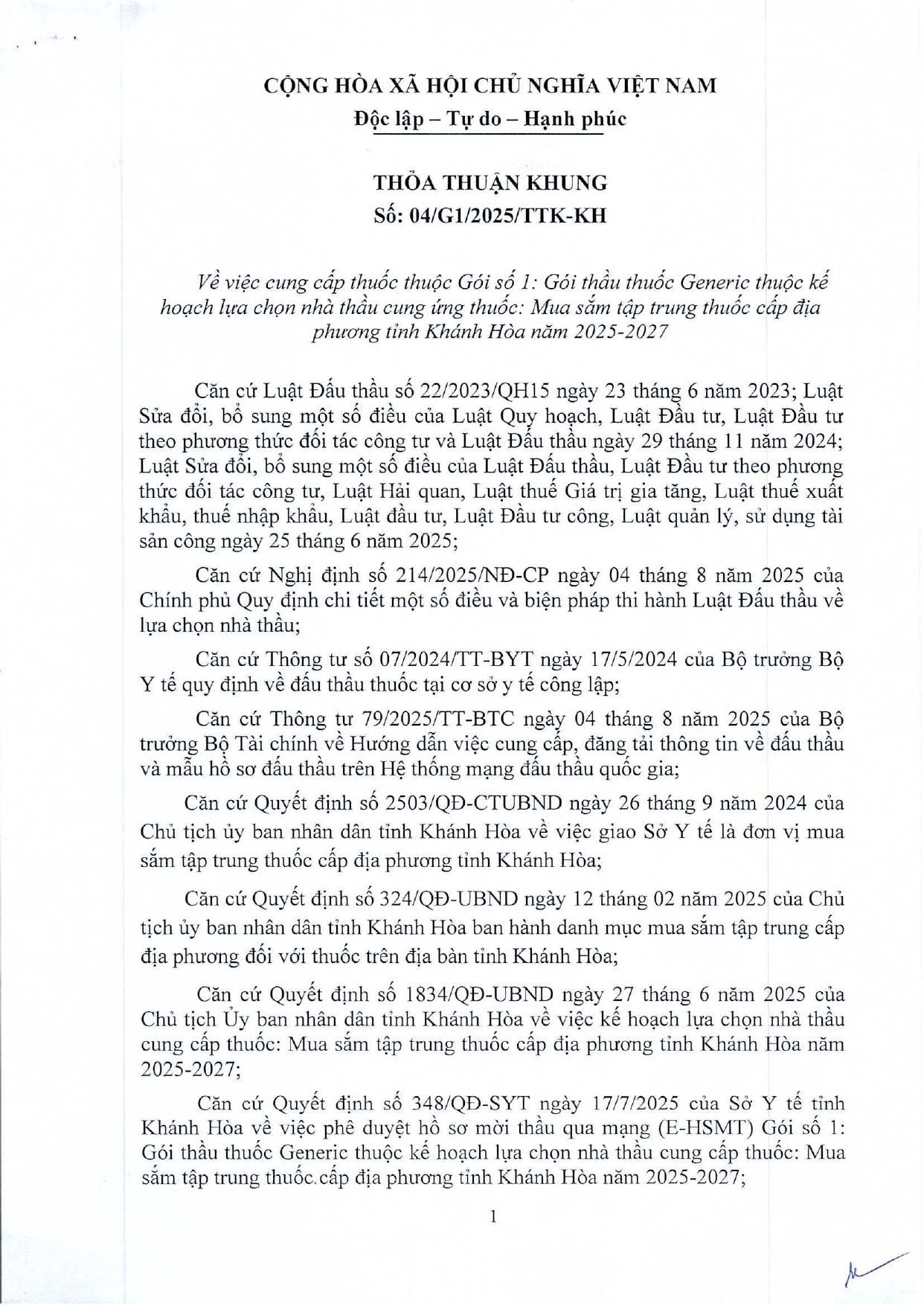 Quyết định Về việc phê duyệt kết quả lựa chọn nhà thầu qua mạng gói số 1: Gói thầu thuốc Generic thuộc kế hoạch lựa chọn nhà thầu cung cấp thuốc: Mua sắm tập trung thuốc cấp địa phương tỉnh Khánh Hòa năm 2025-2027