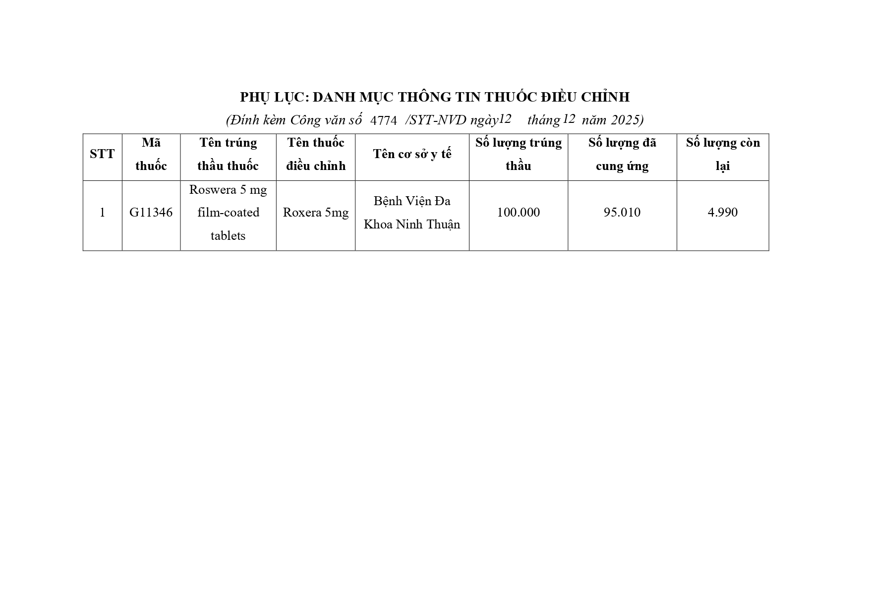 Quyết định Về việc điều chỉnh một số nội dung của Quyết định số 754/QĐ-SYT ngày 15/10/2025 của Sở Y tế về việc phê duyệt kết quả lựa chọn nhà thầu qua mạng gói số 1: Gói thầu thuốc Generic thuộc kế hoạch lựa chọn nhà thầu cung cấp thuốc: Mua sắm tập trung thuốc cấp địa phương tỉnh Khánh Hòa năm 2025-2027