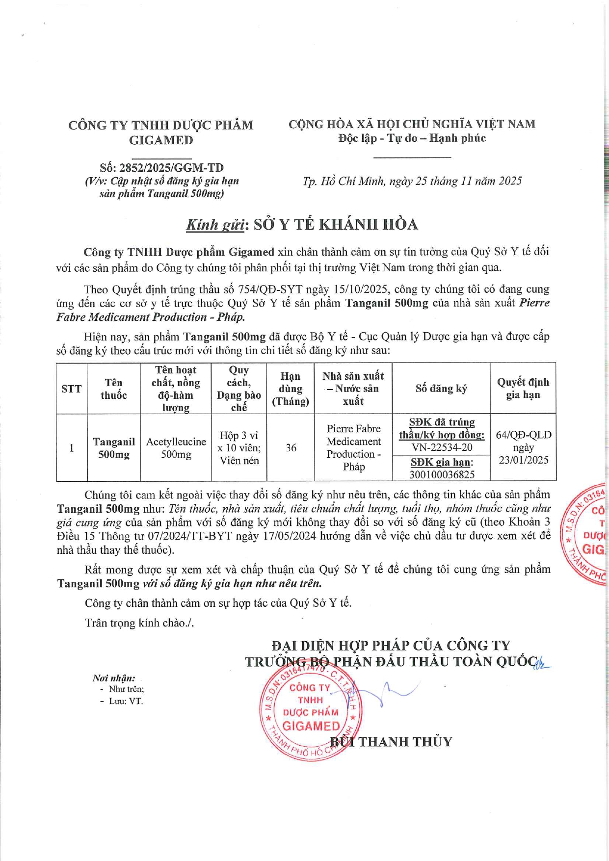 V/v thay đổi số đăng ký của mặt hàng trúng thầu