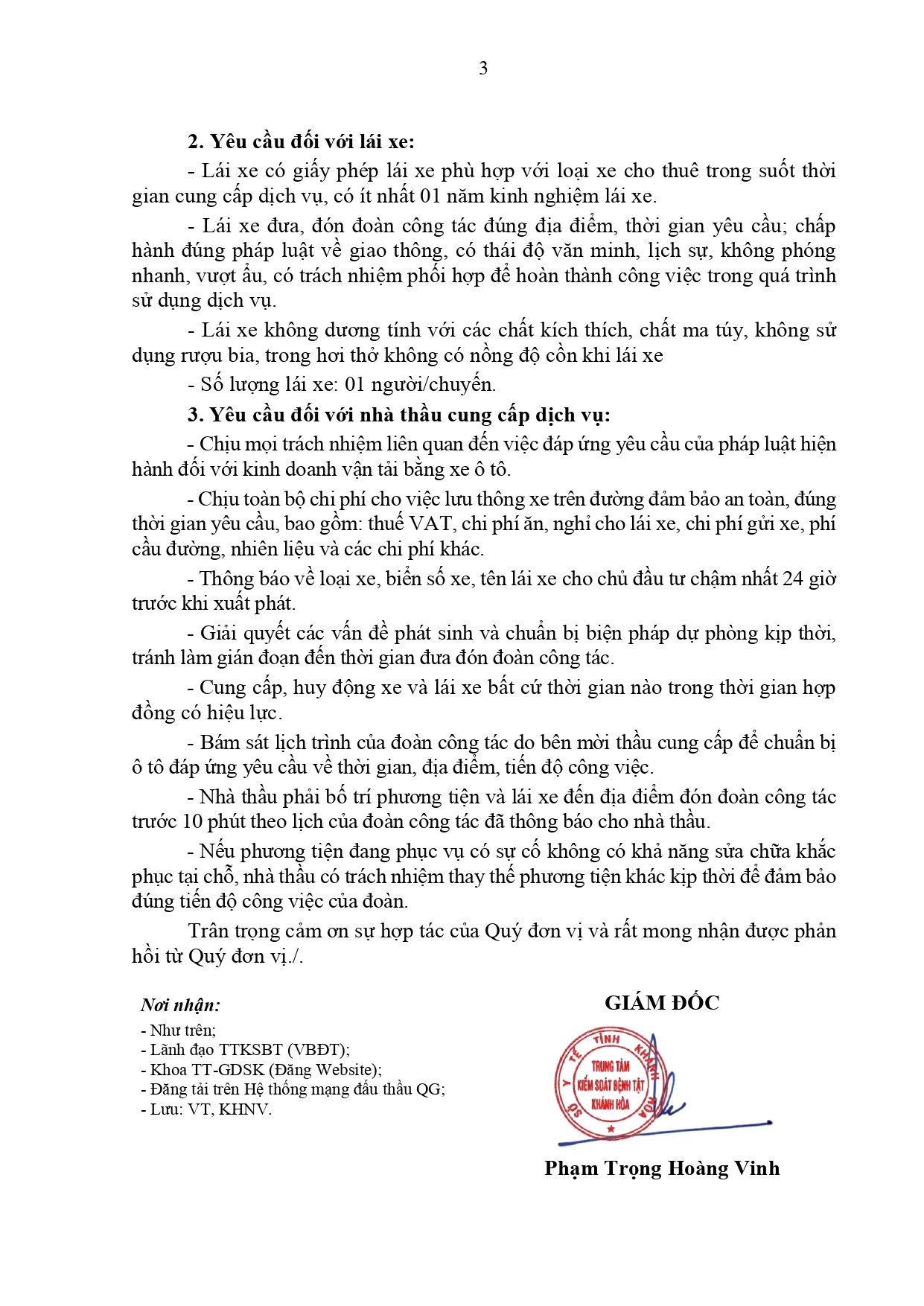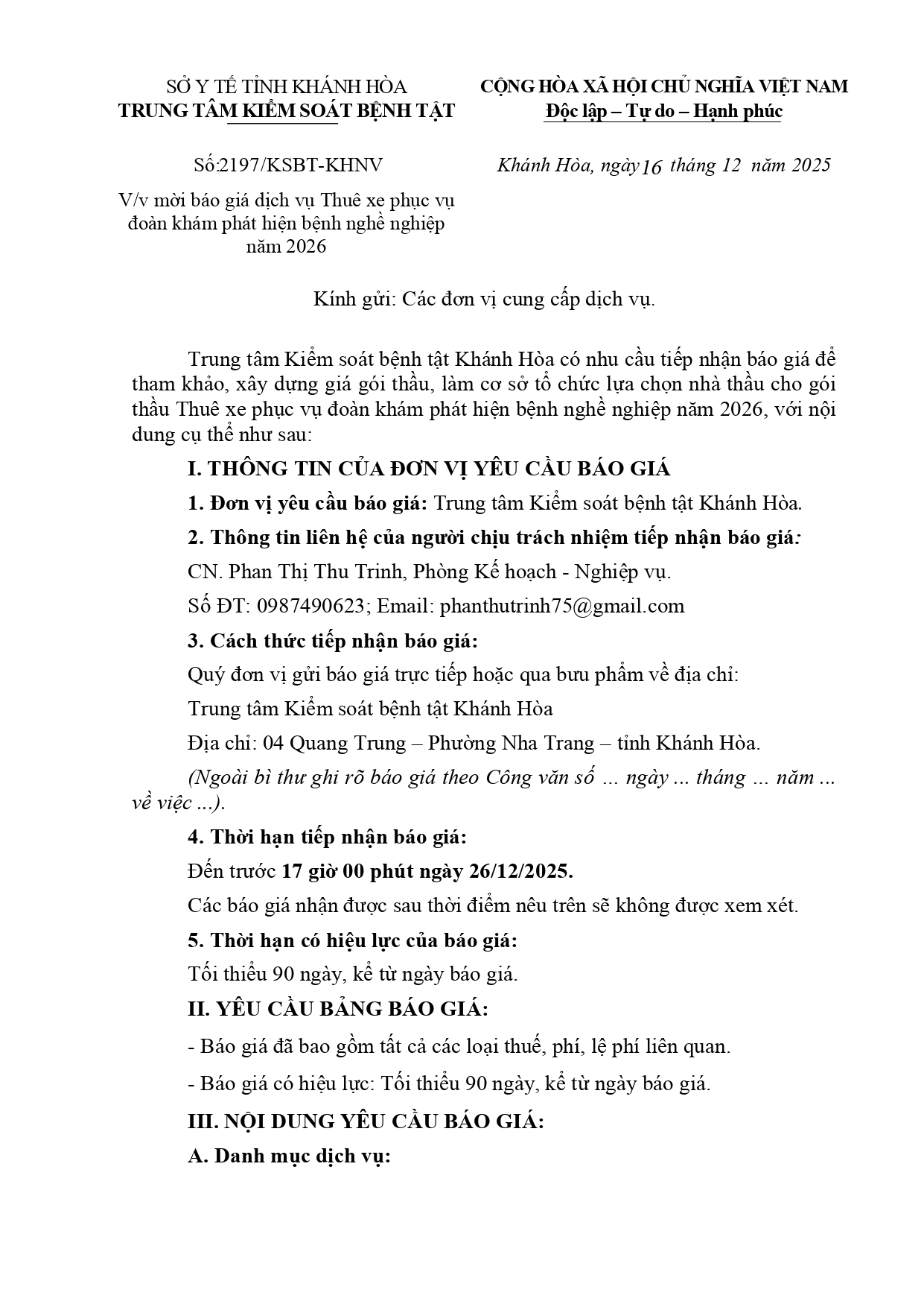 V/v mời chào giá thuê xe vận chuyển viên chức, người lao động đi công tác các huyện, thị xã, thành phố tỉnh Khánh Hòa