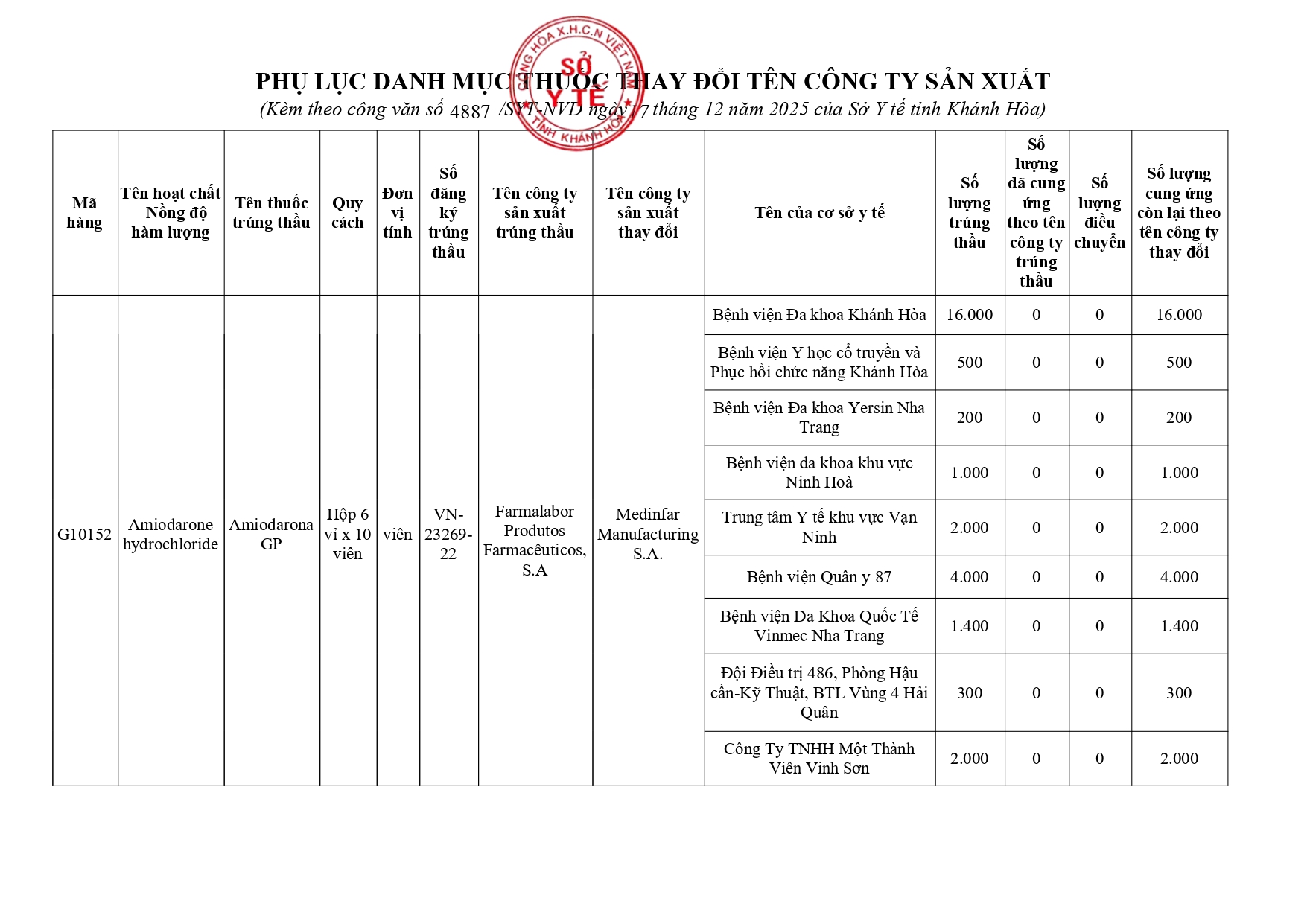 Quyết định Về việc điều chỉnh một số nội dung của Quyết định số 754/QĐ-SYT ngày 15/10/2025 của Sở Y tế về việc phê duyệt kết quả lựa chọn nhà thầu qua mạng gói số 1: Gói thầu thuốc Generic thuộc kế hoạch lựa chọn nhà thầu cung cấp thuốc: Mua sắm tập trung thuốc cấp địa phương tỉnh Khánh Hòa năm 2025-2027