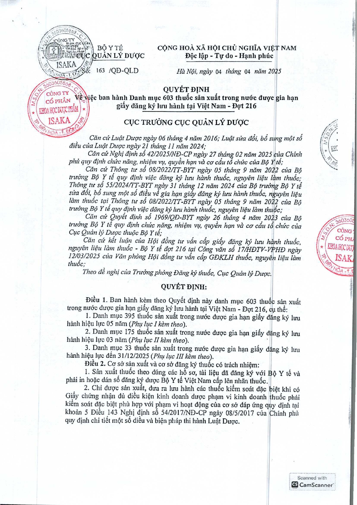 Quyết định Về việc phê duyệt kết quả lựa chọn nhà thầu qua mạng gói số 1: Gói thầu thuốc Generic thuộc kế hoạch lựa chọn nhà thầu cung cấp thuốc: Mua sắm tập trung thuốc cấp địa phương tỉnh Khánh Hòa năm 2025-2027