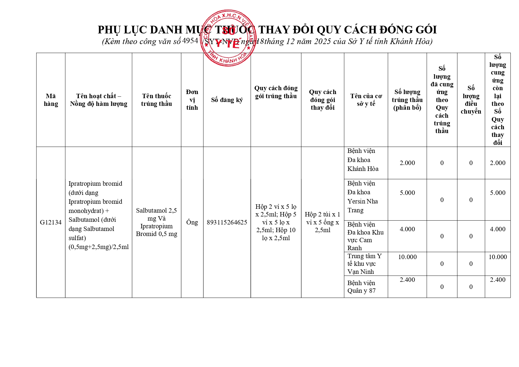 Quyết định Về việc điều chỉnh một số nội dung của Quyết định số 754/QĐ-SYT ngày 15/10/2025 của Sở Y tế về việc phê duyệt kết quả lựa chọn nhà thầu qua mạng gói số 1: Gói thầu thuốc Generic thuộc kế hoạch lựa chọn nhà thầu cung cấp thuốc: Mua sắm tập trung thuốc cấp địa phương tỉnh Khánh Hòa năm 2025-2027