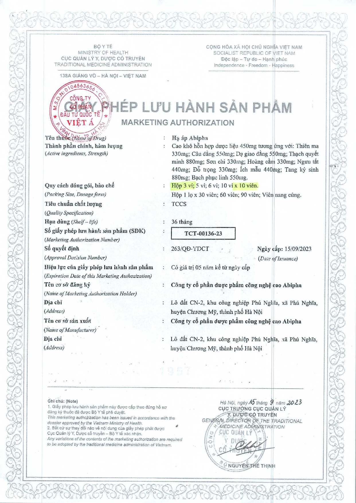 Quyết định Về việc thu hồi số công bố tiêu chuẩn áp dụng của thiết bị y tế thuộc loại A, B