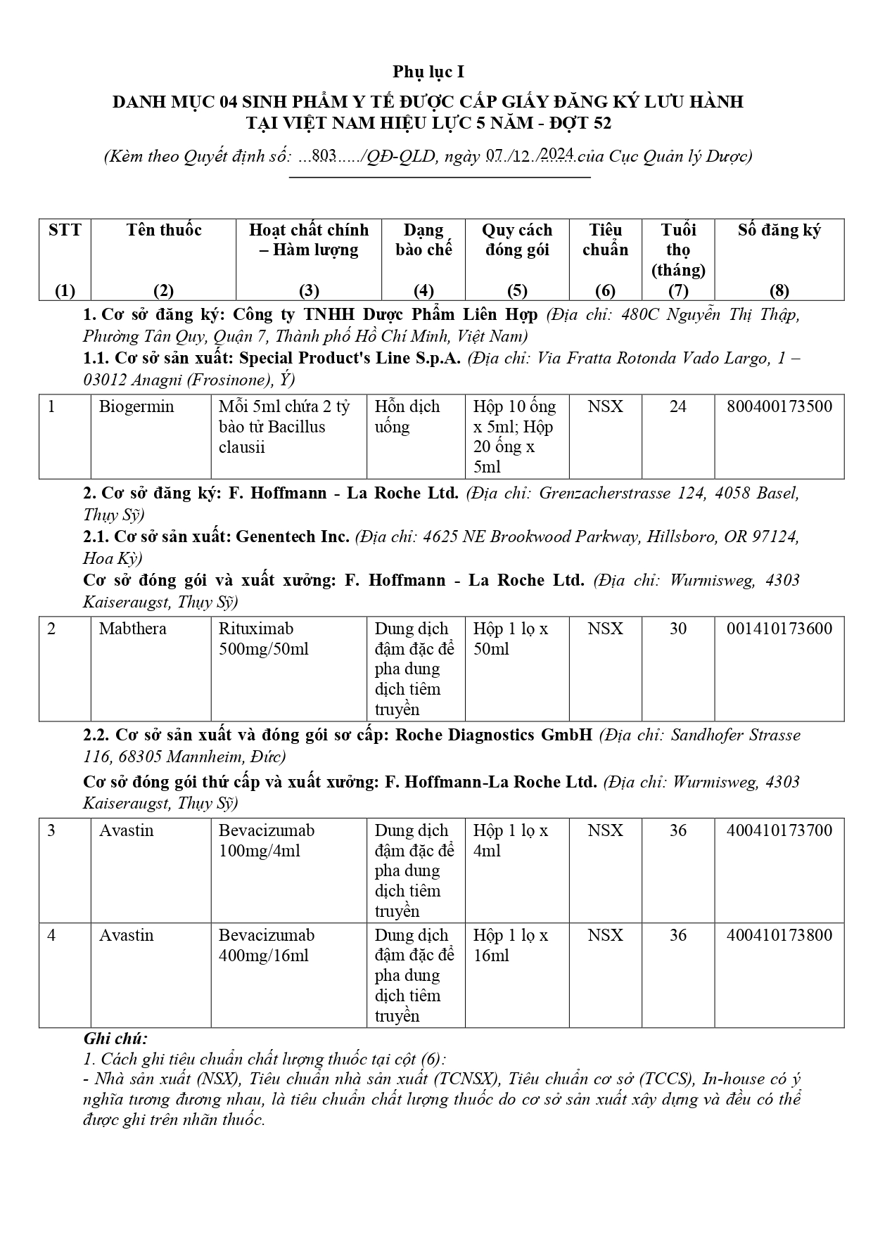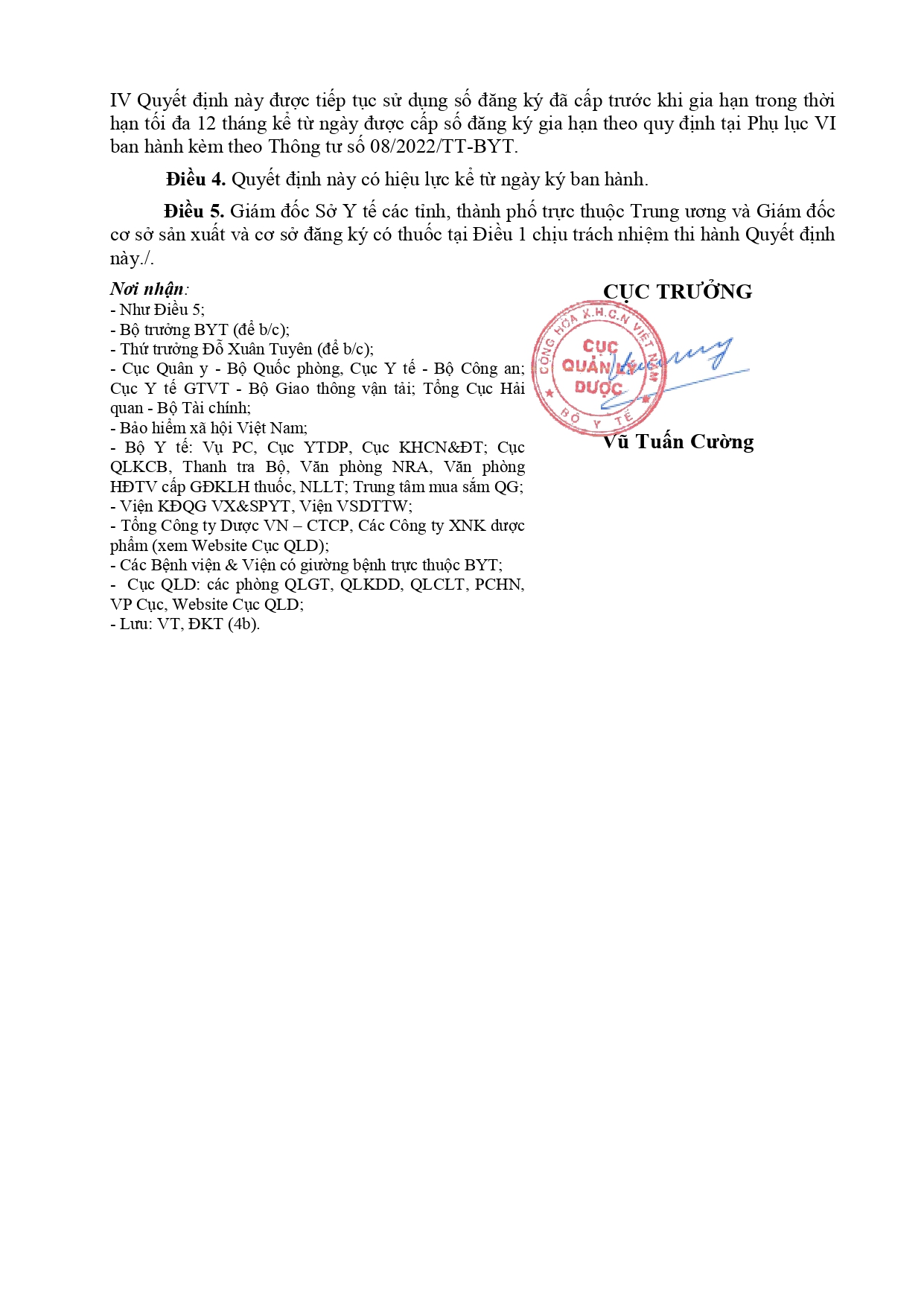 Quyết định Về việc thu hồi số công bố tiêu chuẩn áp dụng của thiết bị y tế thuộc loại A, B