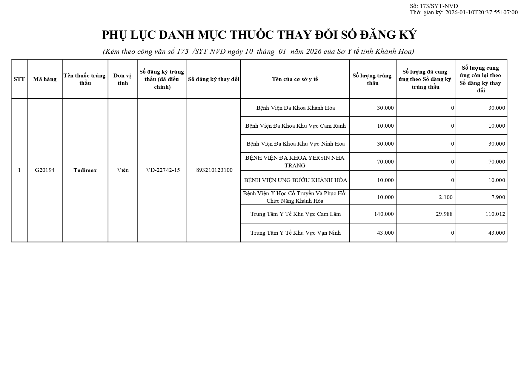 Quyết định Về việc điều chỉnh một số nội dung của Quyết định số 754/QĐ-SYT ngày 15/10/2025 của Sở Y tế về việc phê duyệt kết quả lựa chọn nhà thầu qua mạng gói số 1: Gói thầu thuốc Generic thuộc kế hoạch lựa chọn nhà thầu cung cấp thuốc: Mua sắm tập trung thuốc cấp địa phương tỉnh Khánh Hòa năm 2025-2027 (lần 2)