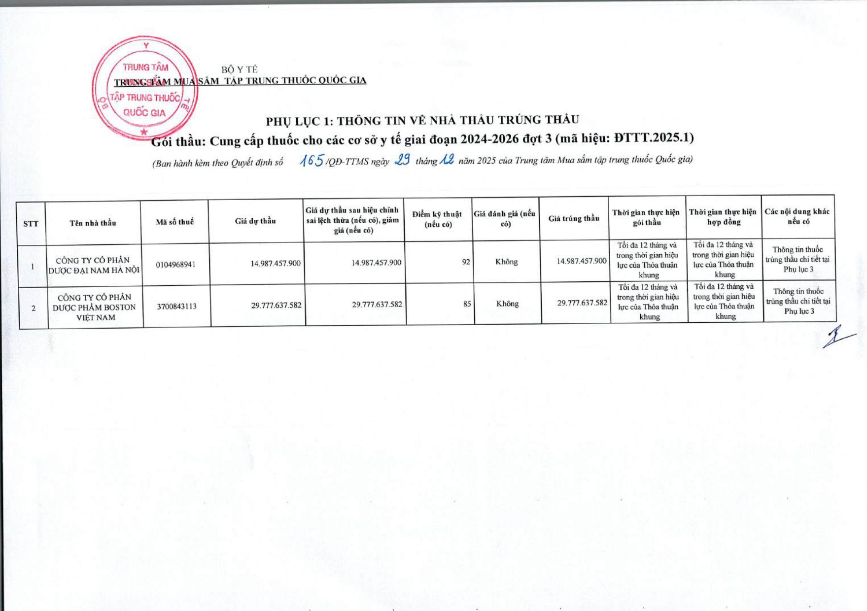 Quyết định Về việc điều chỉnh một số nội dung của Quyết định số 754/QĐ-SYT ngày 15/10/2025 của Sở Y tế về việc phê duyệt kết quả lựa chọn nhà thầu qua mạng gói số 1: Gói thầu thuốc Generic thuộc kế hoạch lựa chọn nhà thầu cung cấp thuốc: Mua sắm tập trung thuốc cấp địa phương tỉnh Khánh Hòa năm 2025-2027 (lần 2)