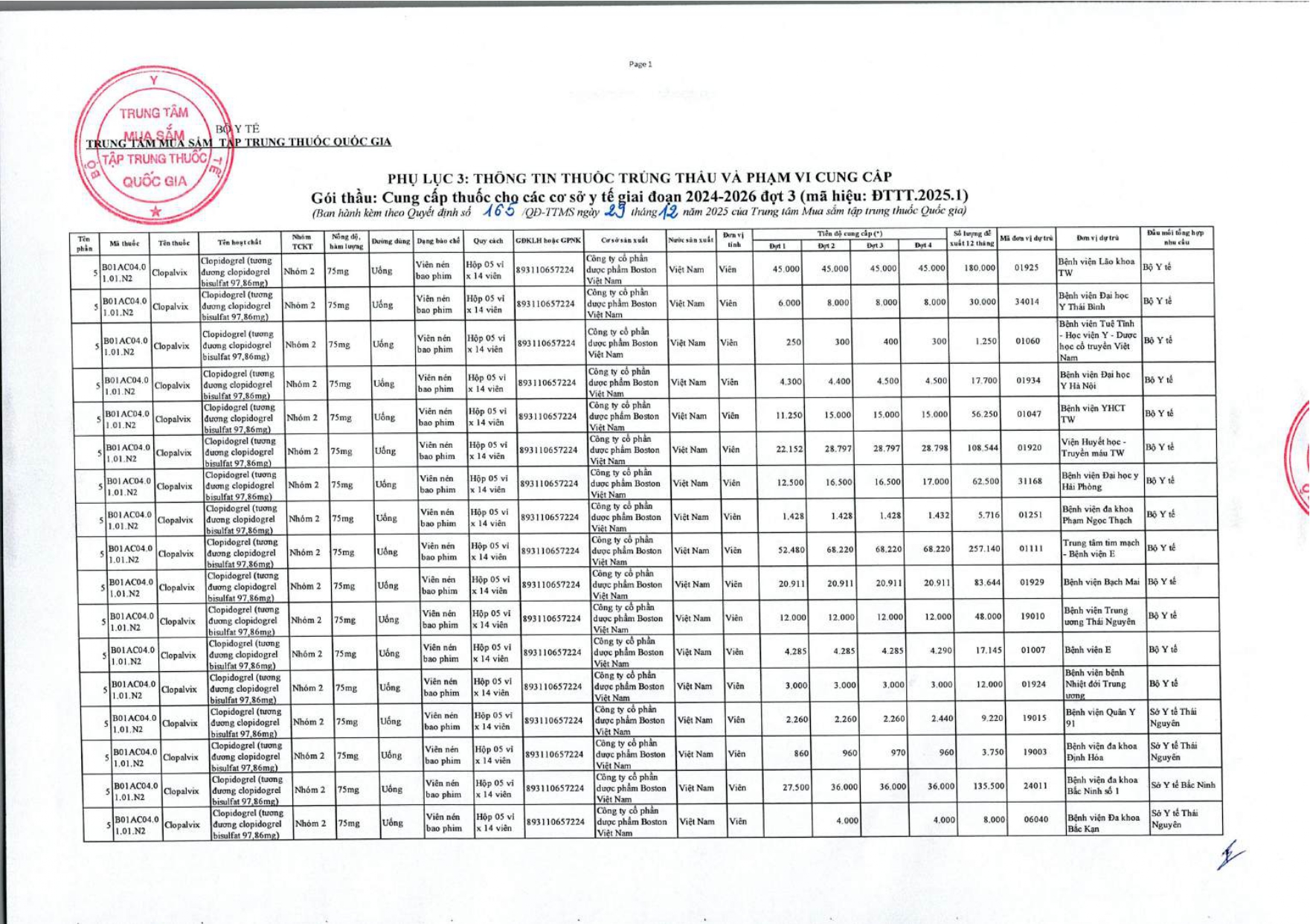 Quyết định Về việc phê duyệt kết quả lựa chọn nhà thầu qua mạng gói số 1: Gói thầu thuốc Generic thuộc kế hoạch lựa chọn nhà thầu cung cấp thuốc: Mua sắm tập trung thuốc cấp địa phương tỉnh Khánh Hòa năm 2025-2027
