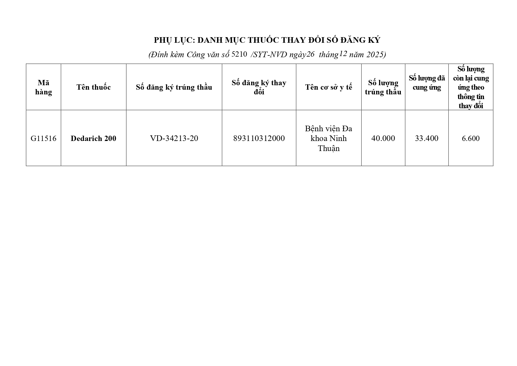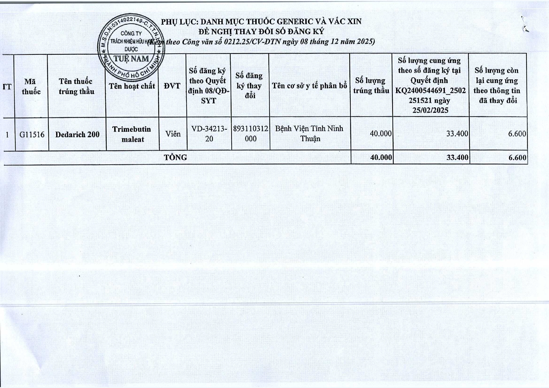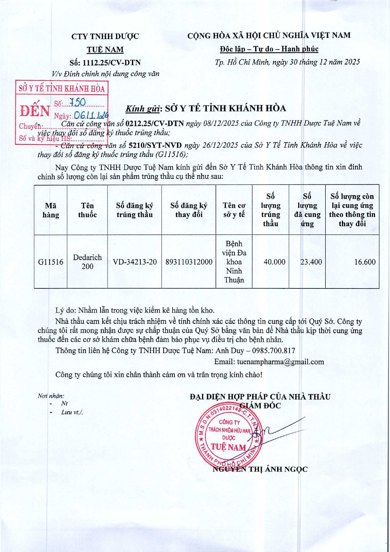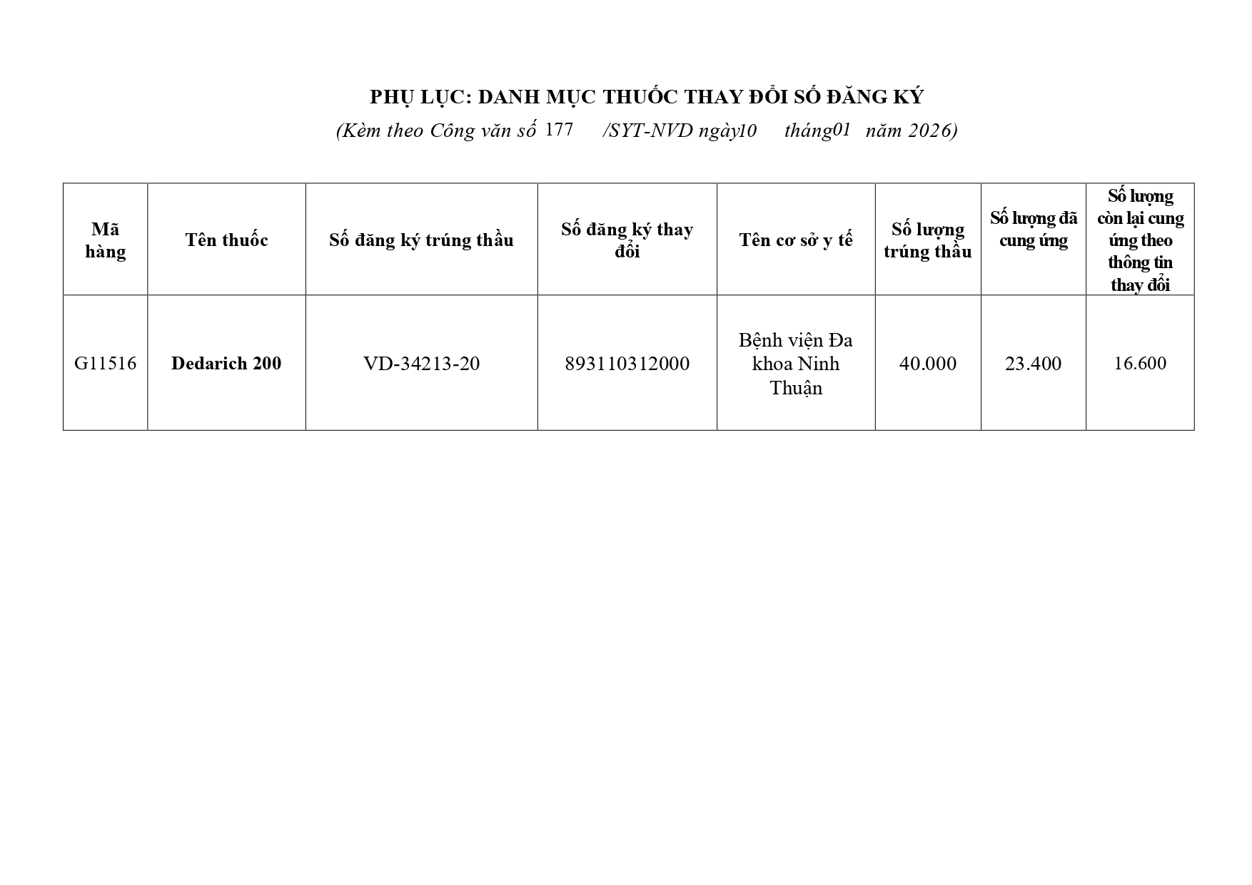 V/v thay đổi số đăng ký thuốc trung thầu (G11516)