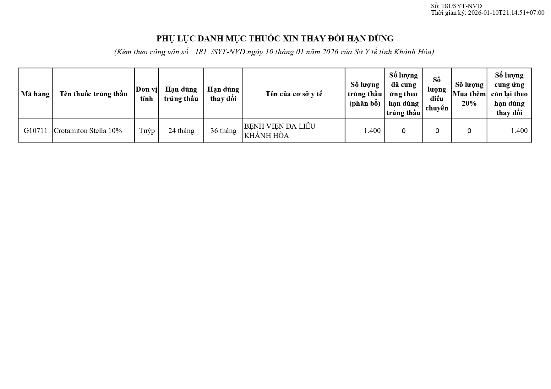Quyết định Về việc điều chỉnh một số nội dung của Quyết định số 754/QĐ-SYT ngày 15/10/2025 của Sở Y tế về việc phê duyệt kết quả lựa chọn nhà thầu qua mạng gói số 1: Gói thầu thuốc Generic thuộc kế hoạch lựa chọn nhà thầu cung cấp thuốc: Mua sắm tập trung thuốc cấp địa phương tỉnh Khánh Hòa năm 2025-2027 (lần 2)