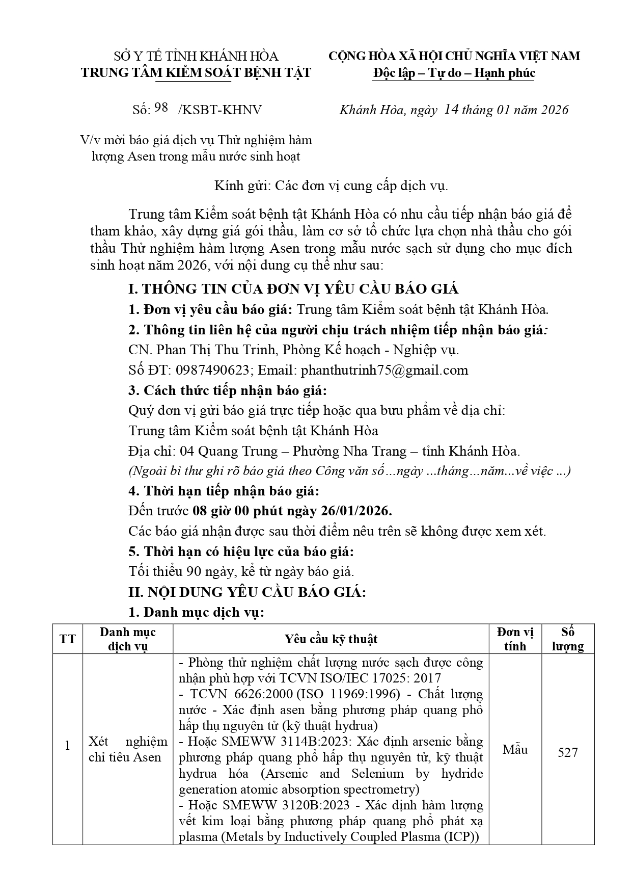 V/v mời chào giá thuê xe vận chuyển viên chức, người lao động đi công tác các huyện, thị xã, thành phố tỉnh Khánh Hòa