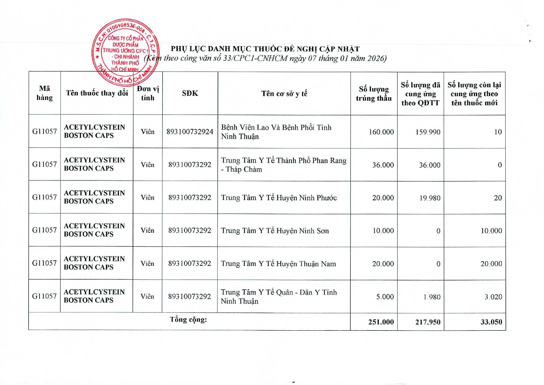 V/v thay đổi tên thuốc trúng thầu mã hàng G11057.