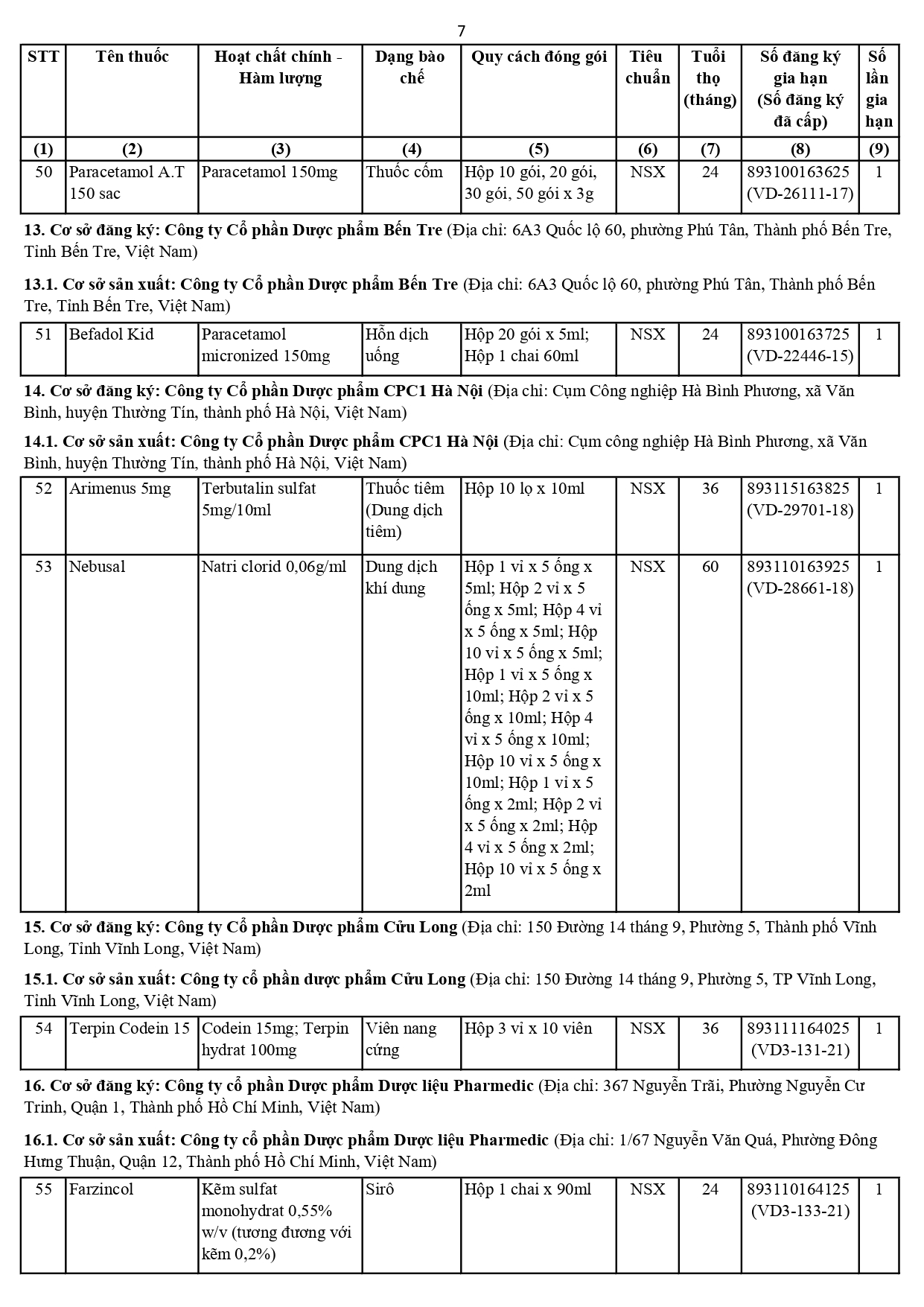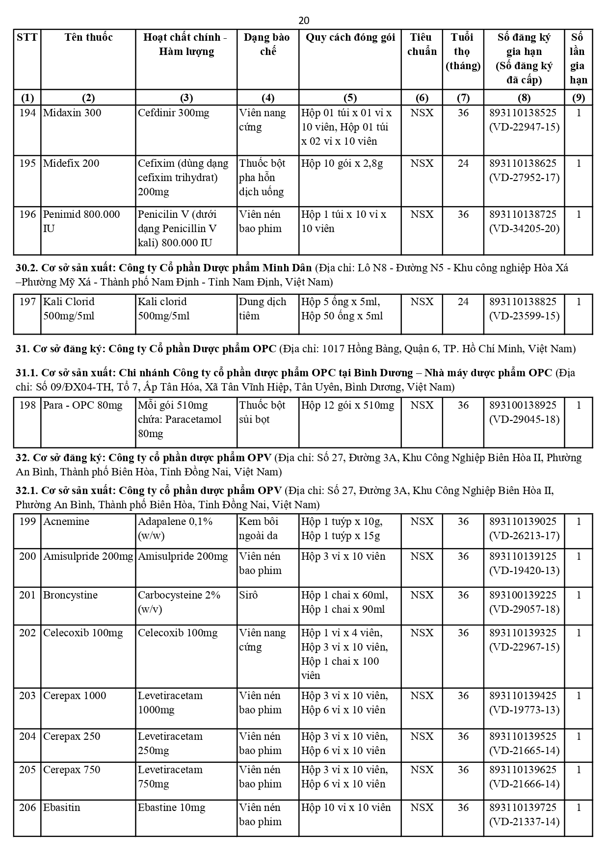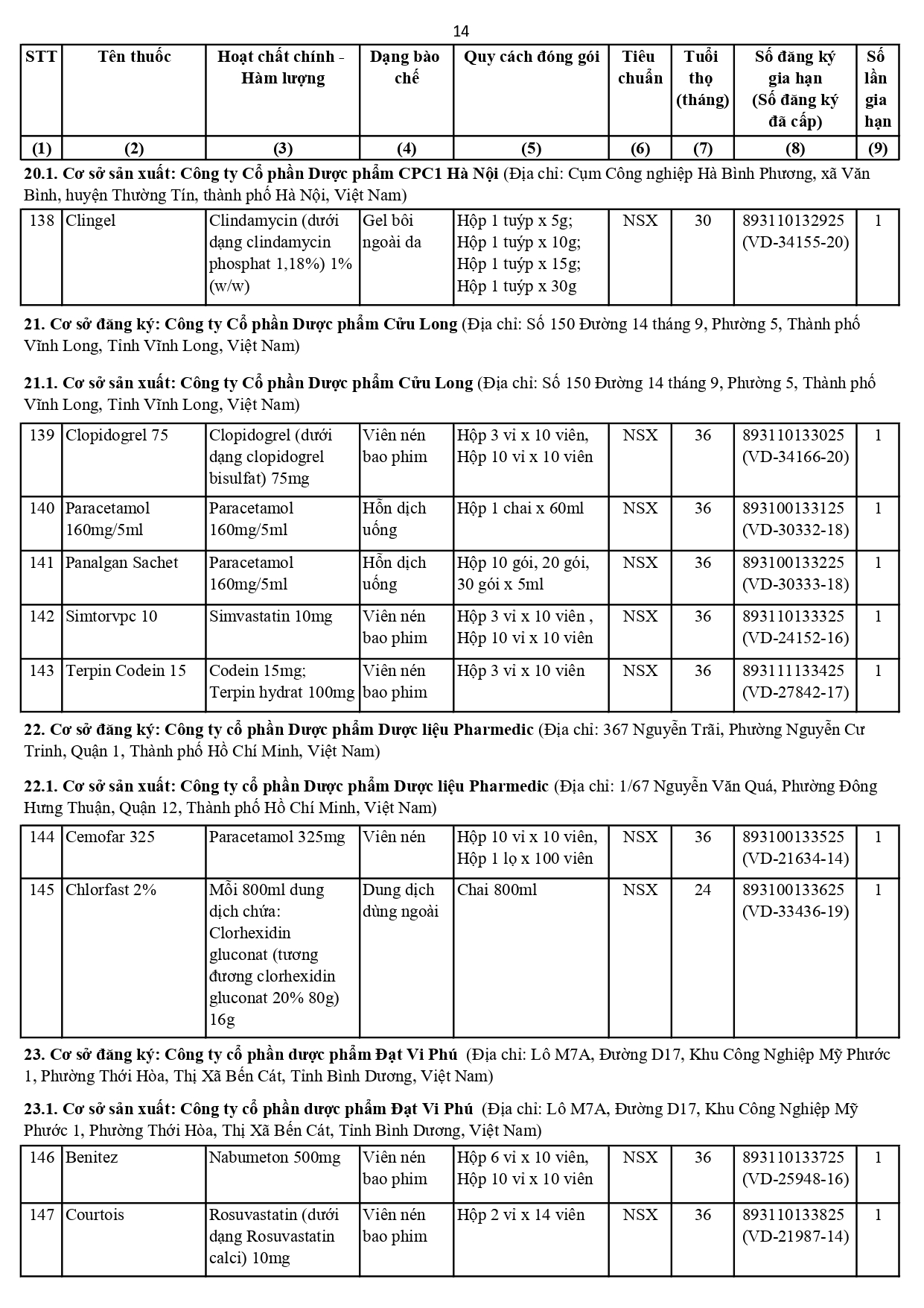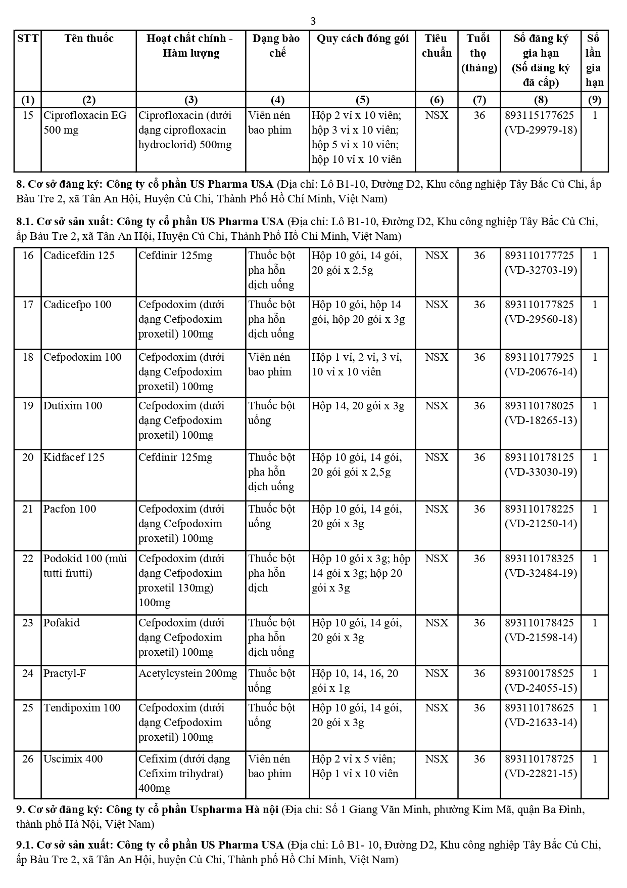 V/v thay đổi số đăng ký thuốc trúng thầu mã hàng G10427
