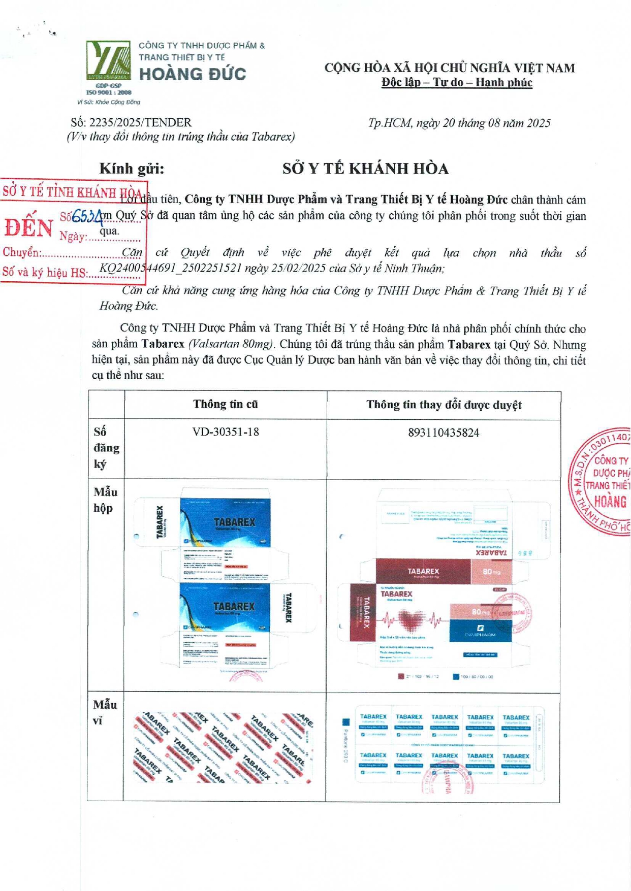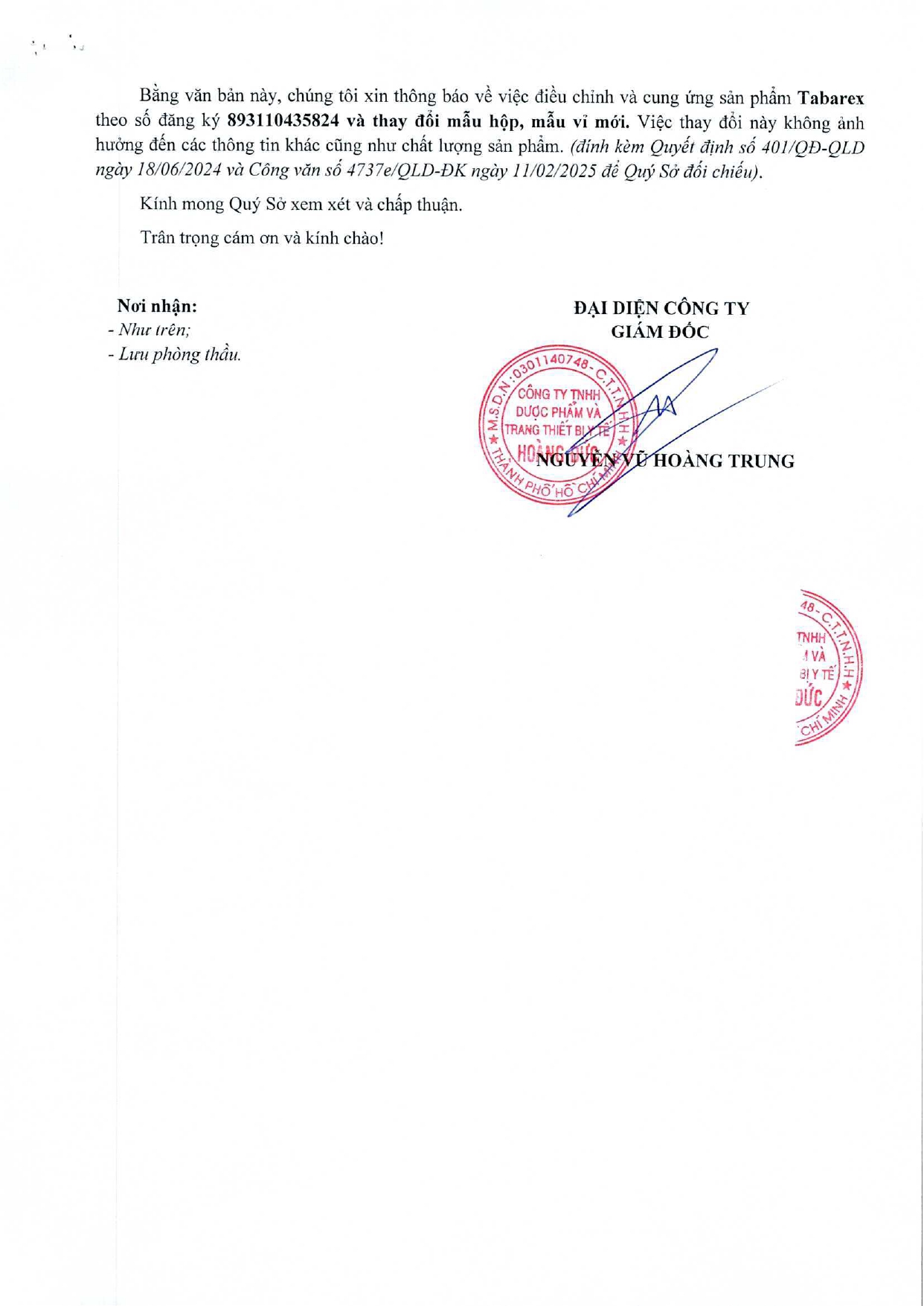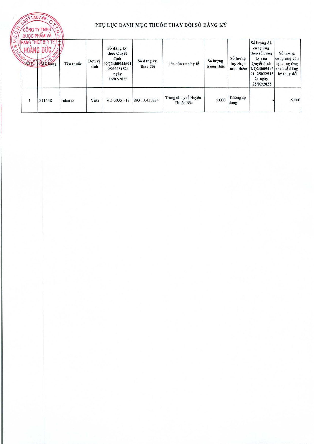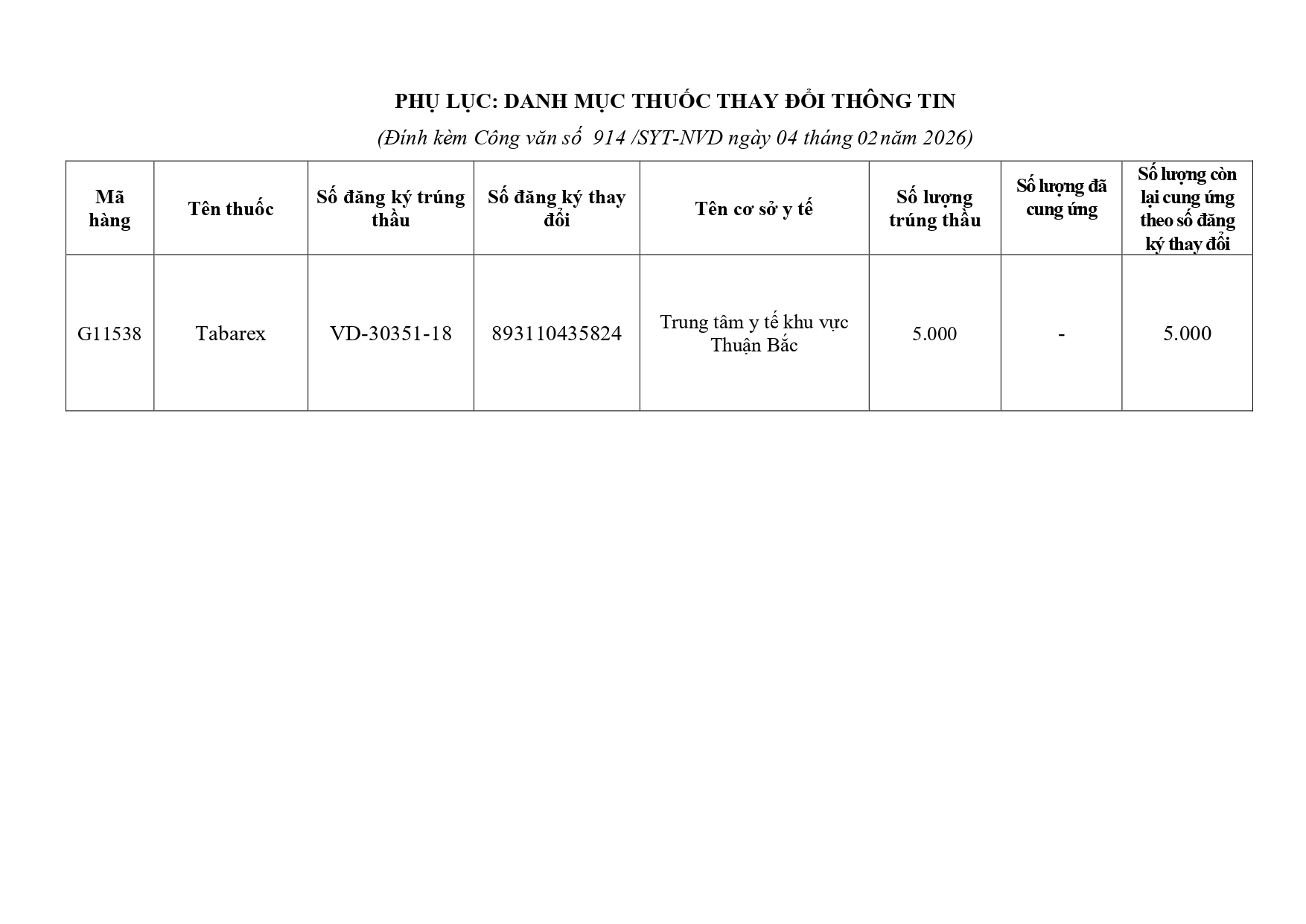 V/v thay đổi thông tin thuốc trúng thầu G11538.