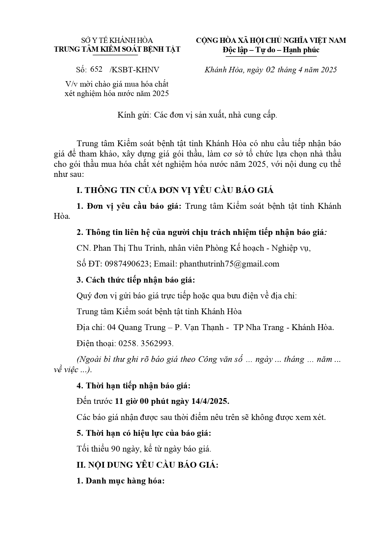 V/v mời chào giá thuê xe vận chuyển viên chức, người lao động đi công tác các huyện, thị xã, thành phố tỉnh Khánh Hòa