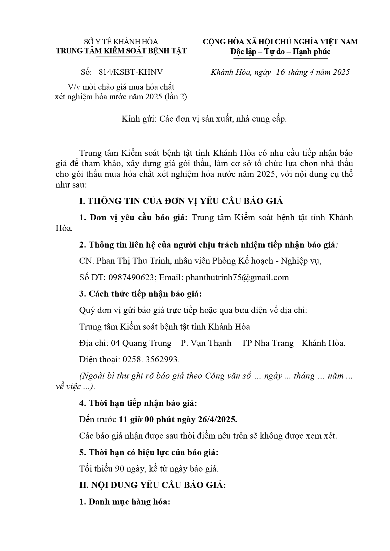 Quyết định Về việc công khai dự toán ngân sách nhà nước quý 2 năm 2025 của Trung tâm Kiểm soát bệnh tật Khánh Hòa