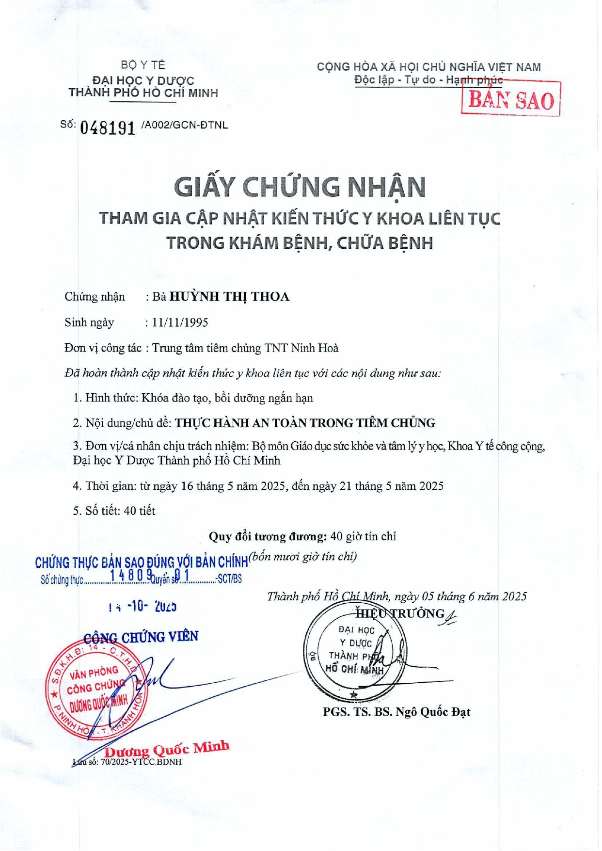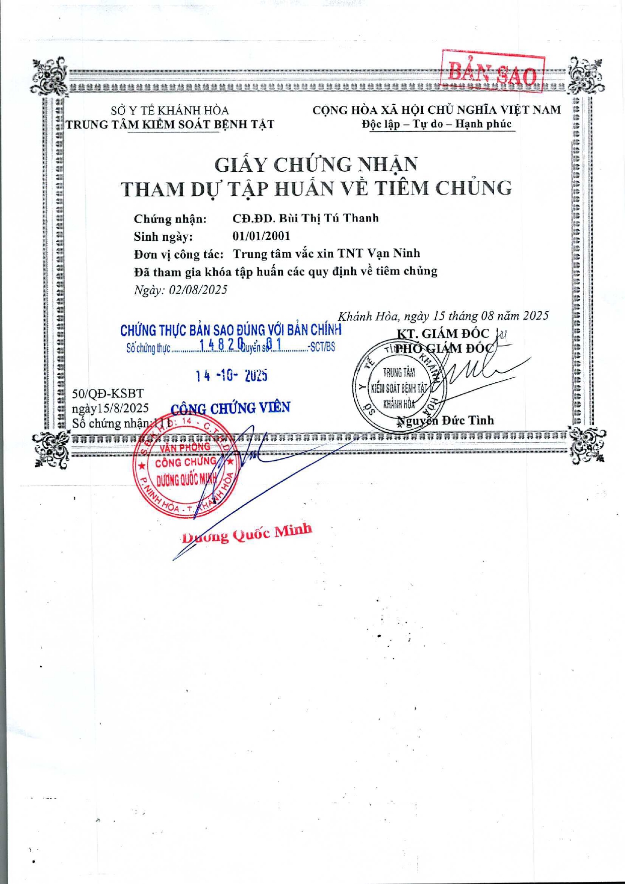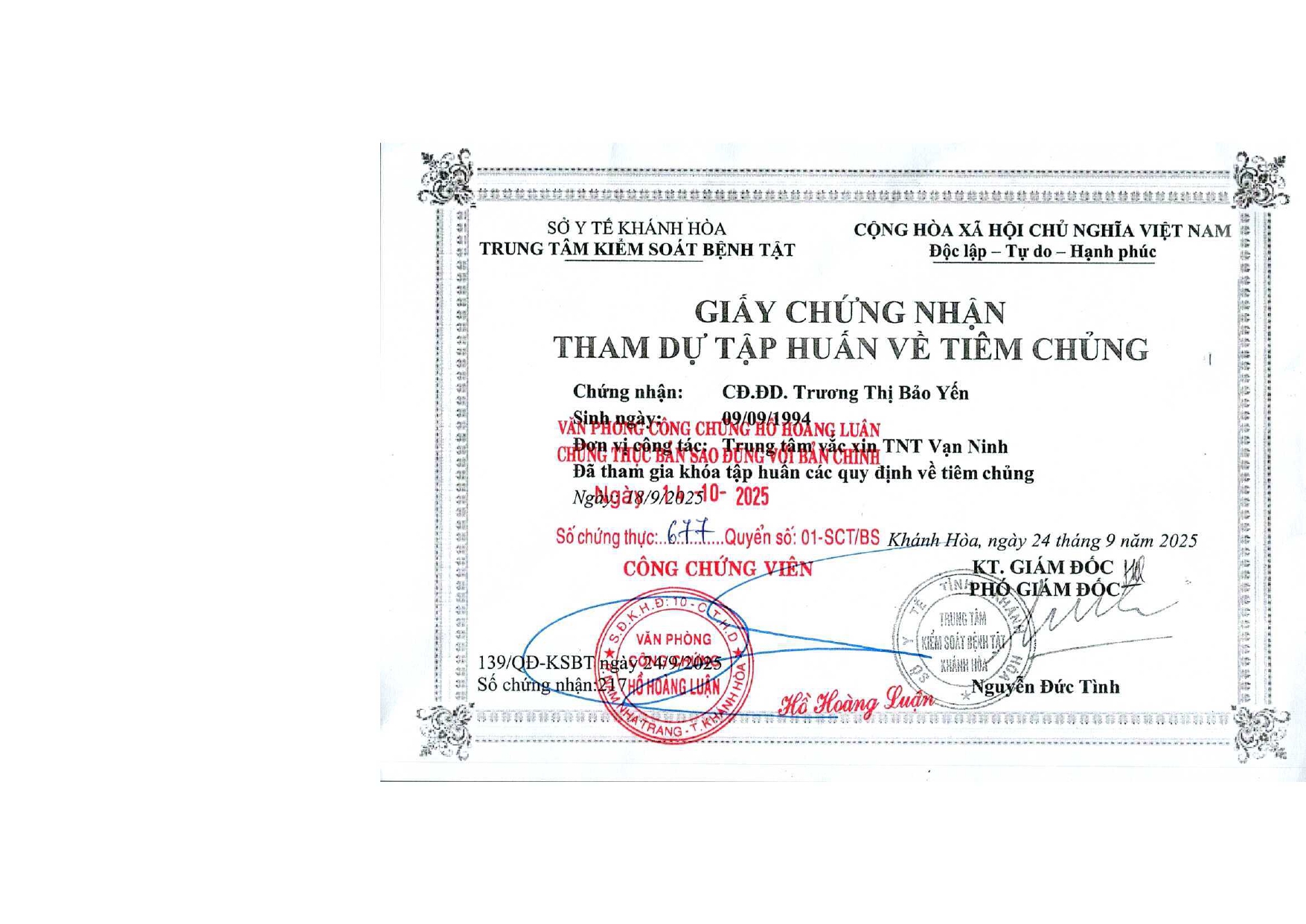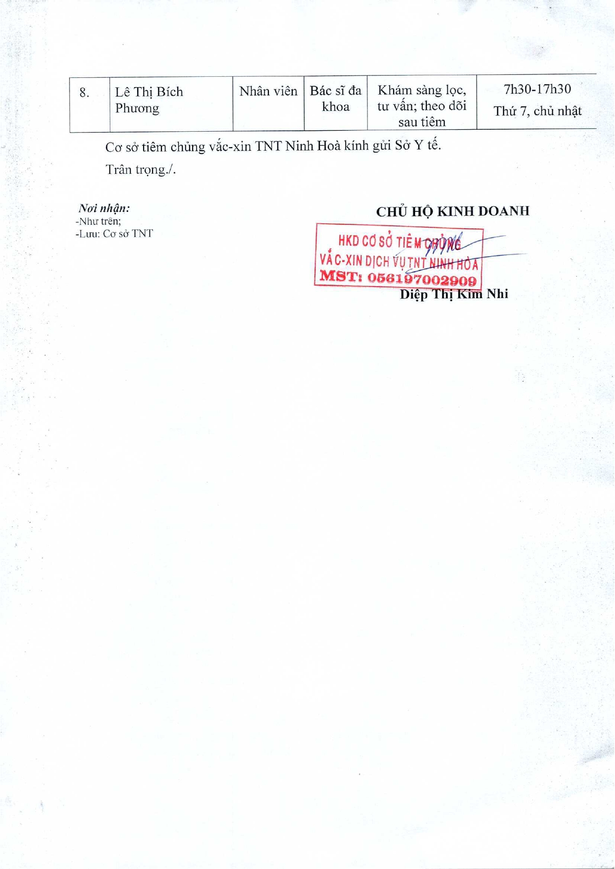Bảng kê khai danh sách nhân sự của Cơ sở Tiêm chủng TNT Ninh Phước