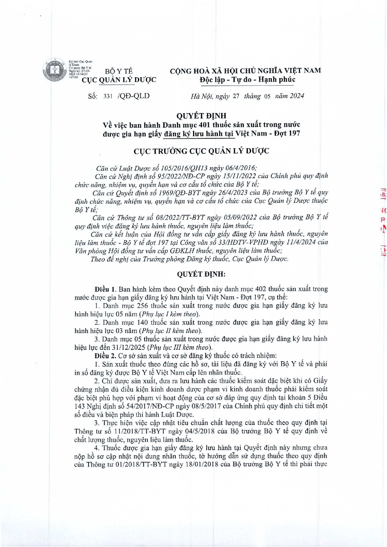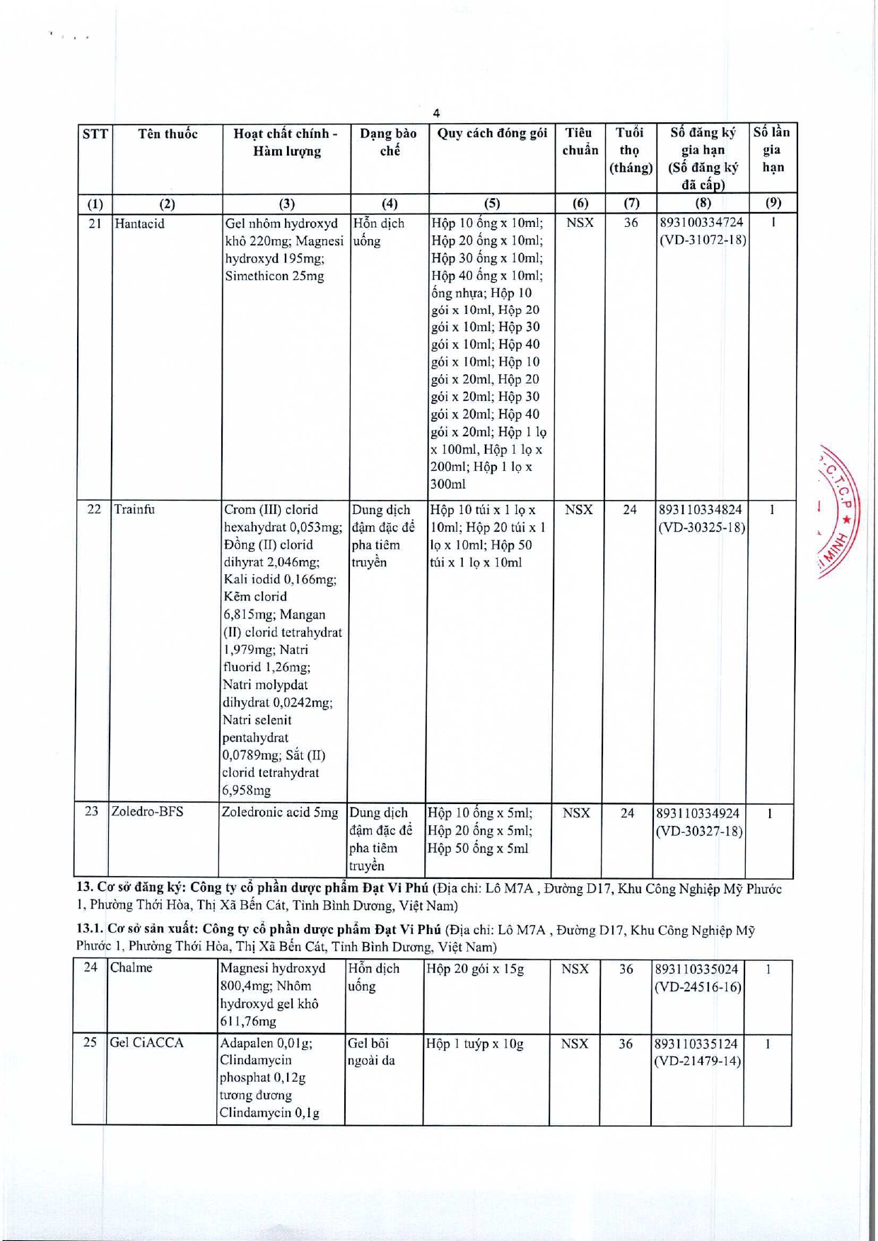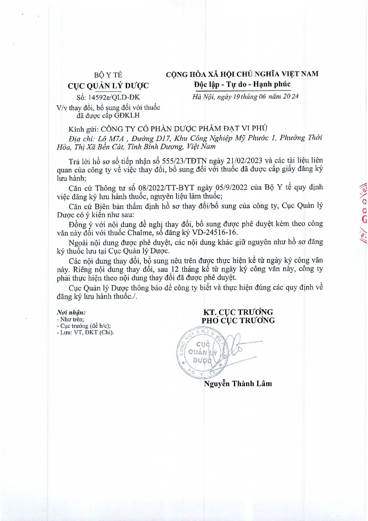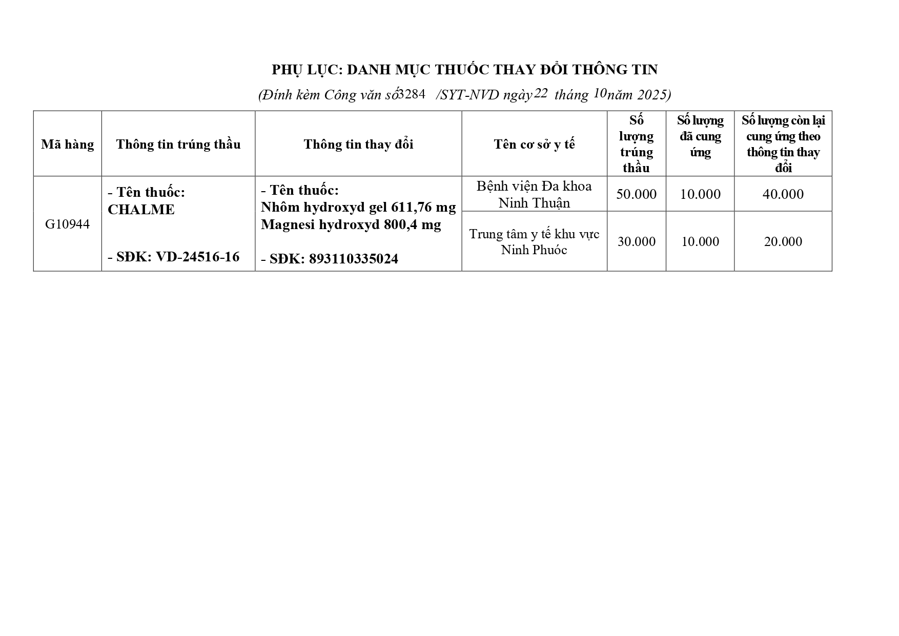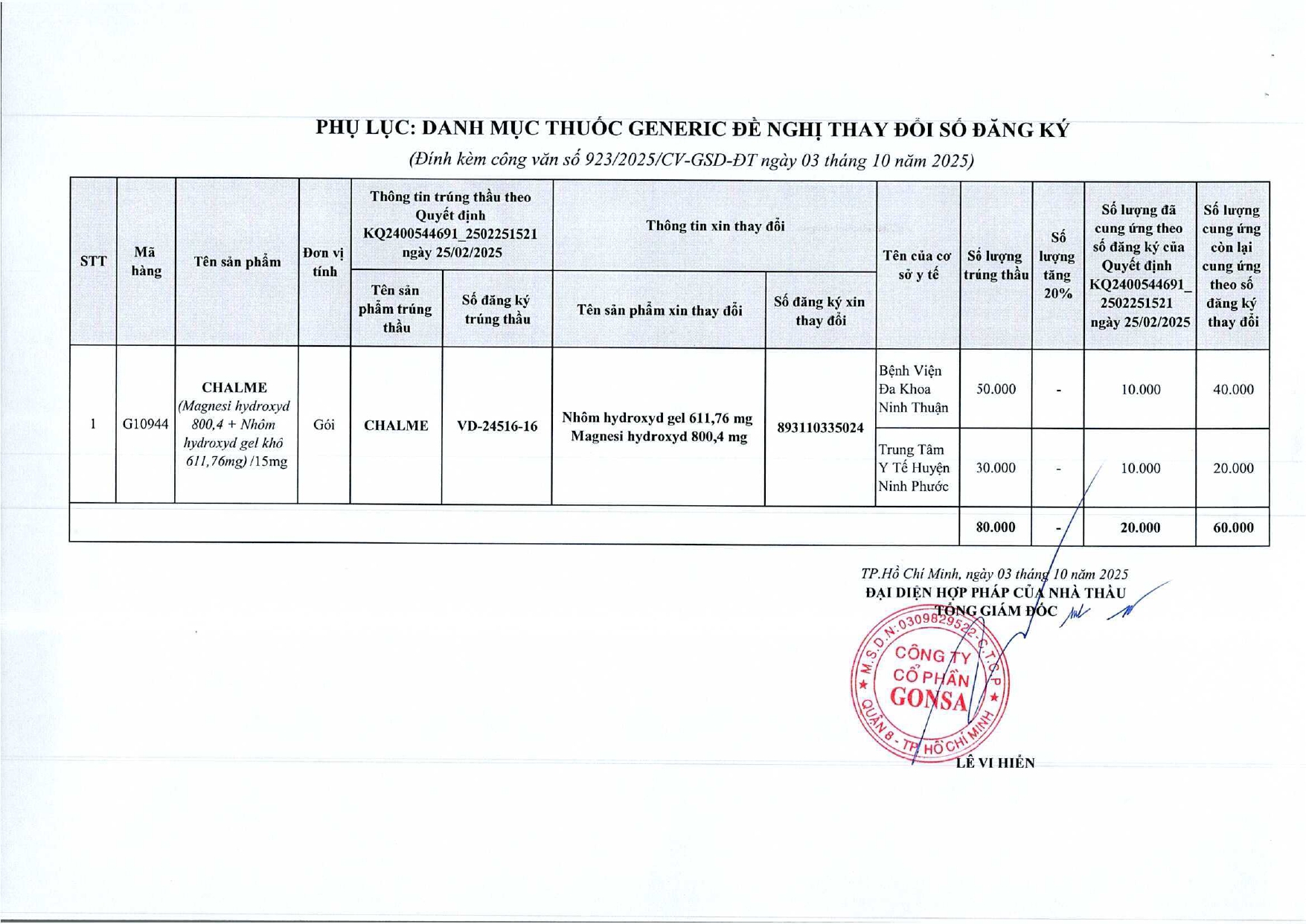 V/v thay đổi số đăng ký thuốc trúng thầu mã hàng G10944.