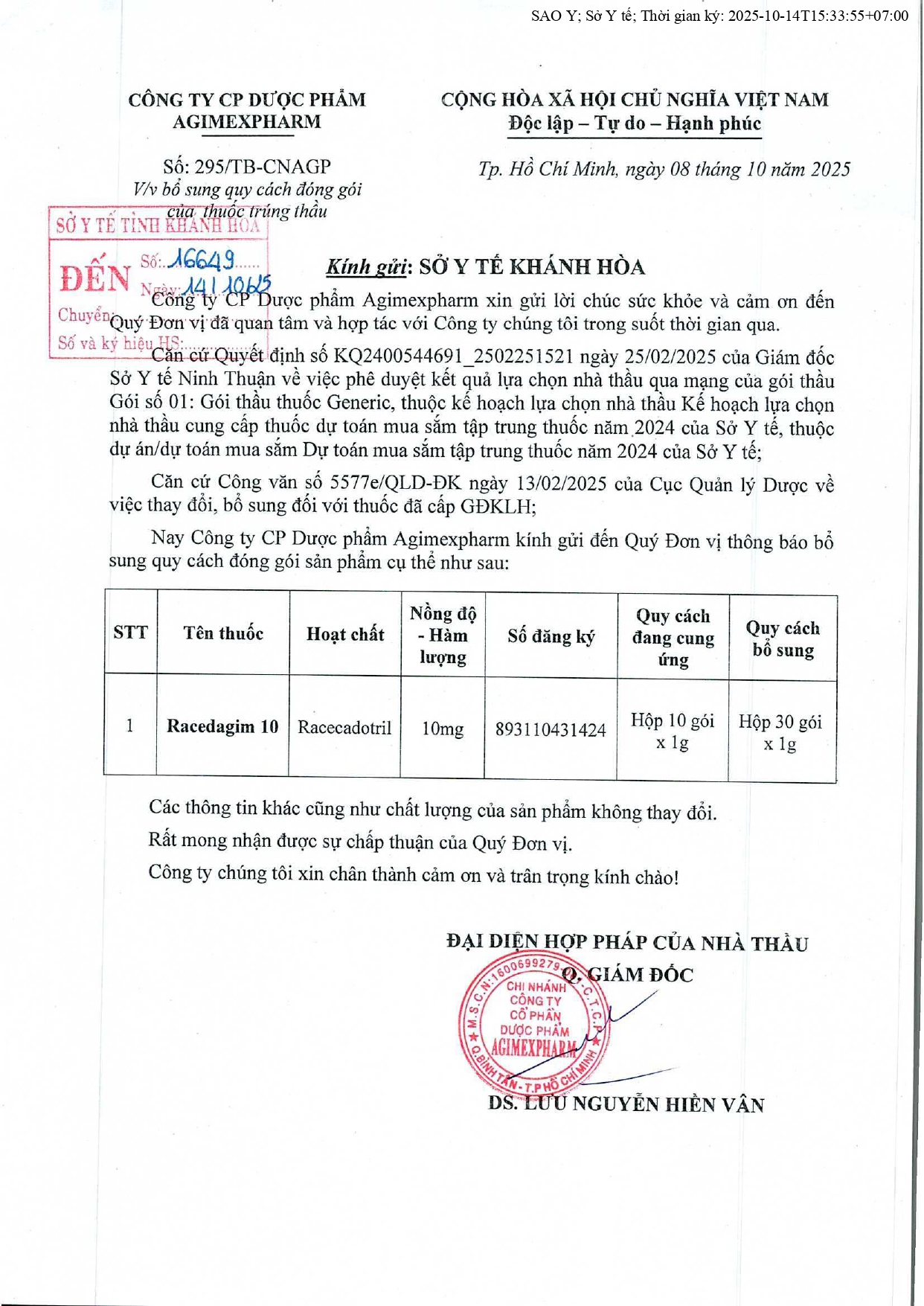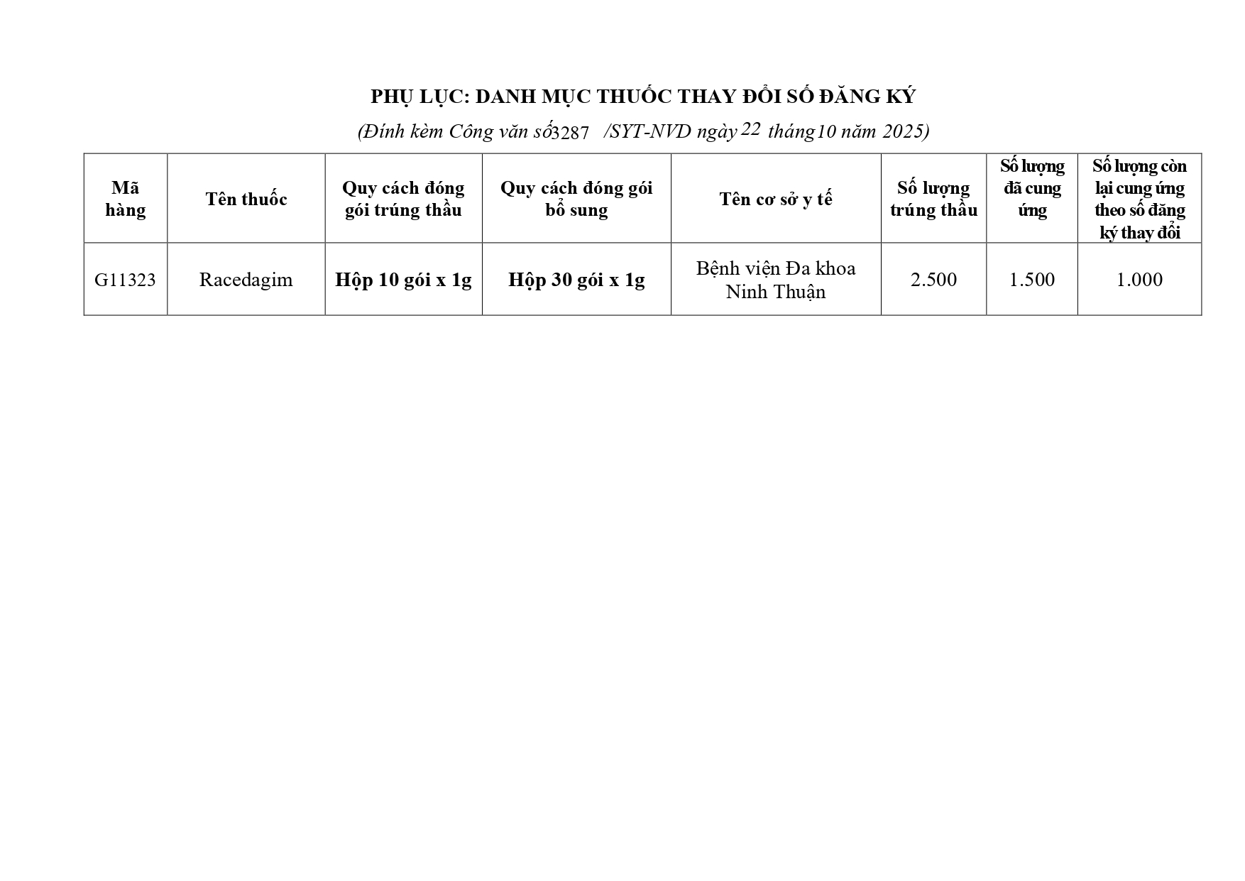 V/v bổ sung quy cách đóng gói thuốc trúng thầu mã hàng G11323