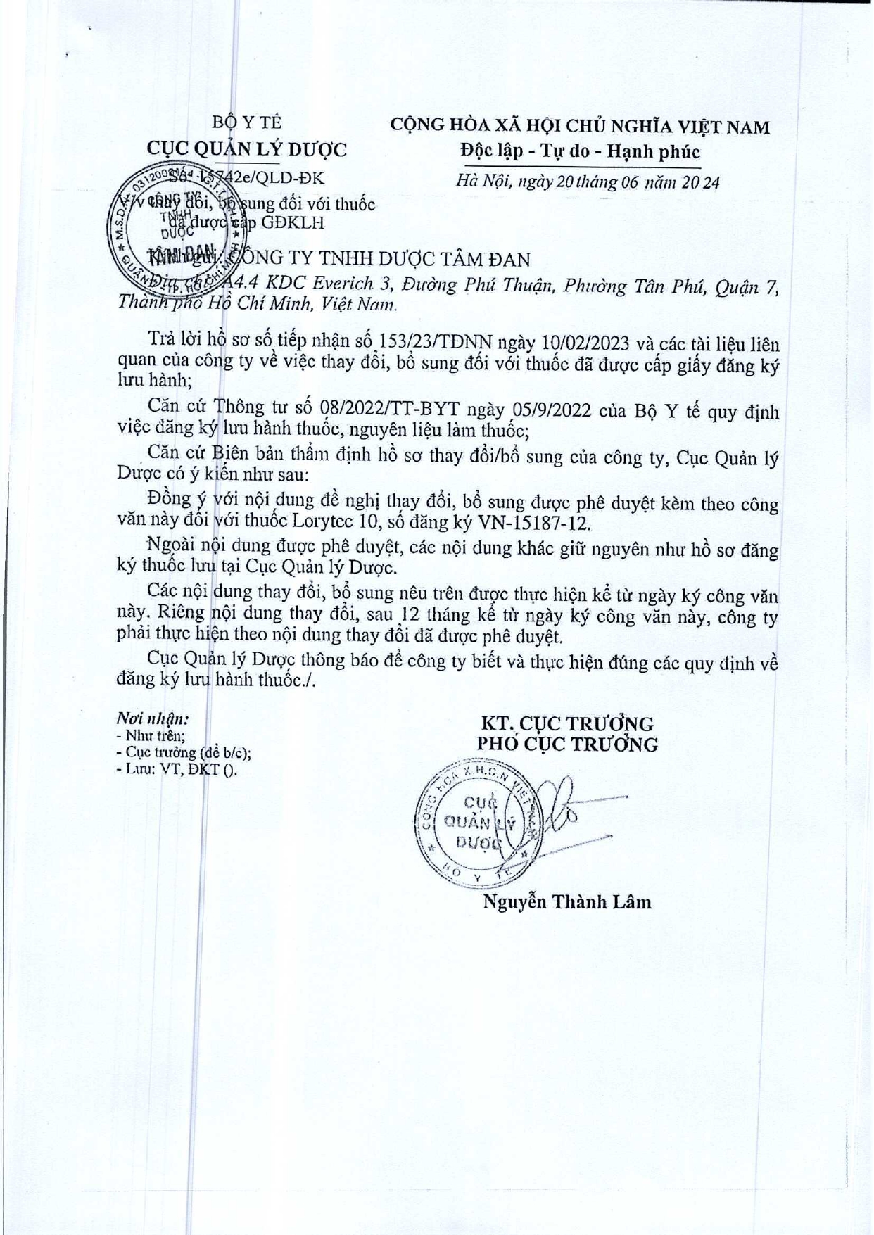V/v THÔNG BÁO ĐÁP ỨNG THỰC HÀNH TỐT BẢO QUẢN THUỐC, NGUYÊN LIỆU LÀM THUỐC (LONG CHÂU 232)